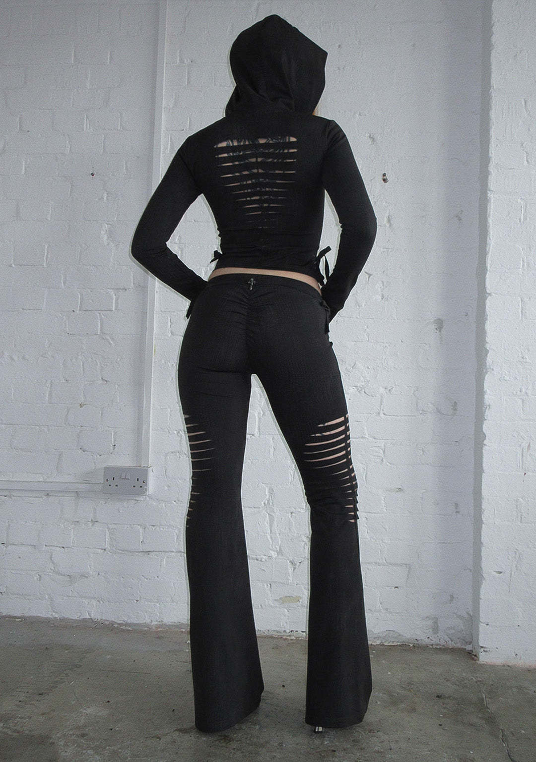 ENVY SNAKESKIN SLASHED SCULPT STRETCH PANTS CHARCOAL