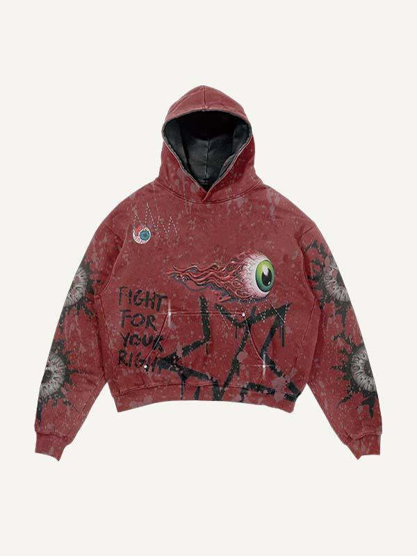 Eyeball&Letter&Graphic Print Slant Pockets Hoodie