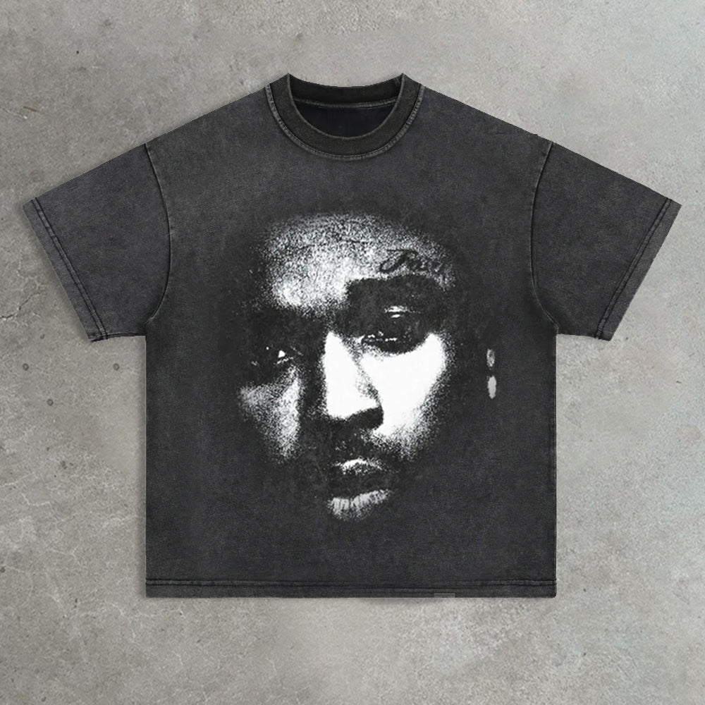 Face printed vintage washed T-shirt