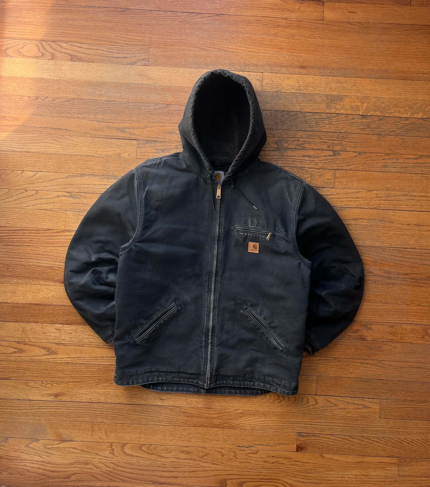 Faded Black Sherpa Lined Jacket - Large