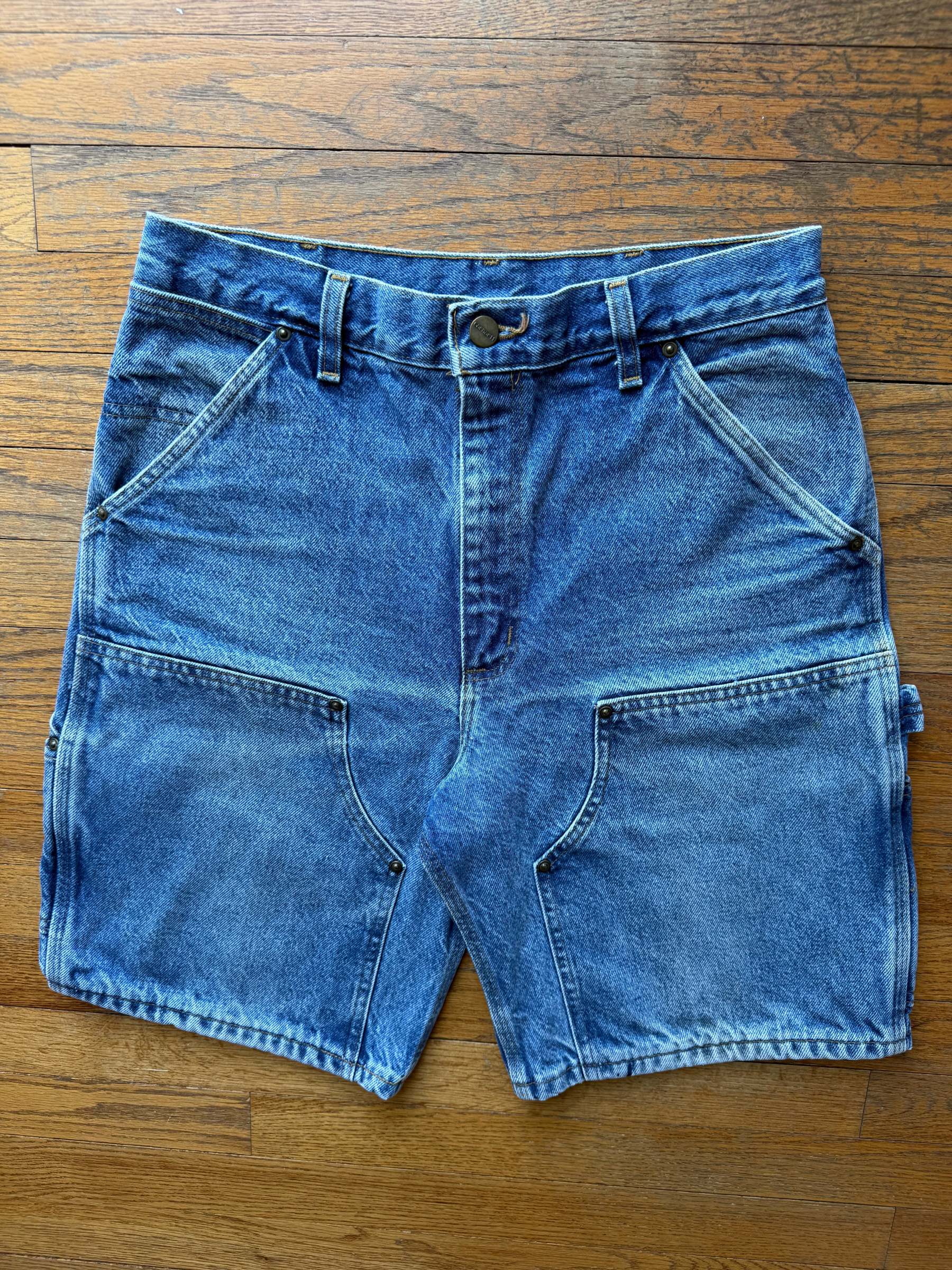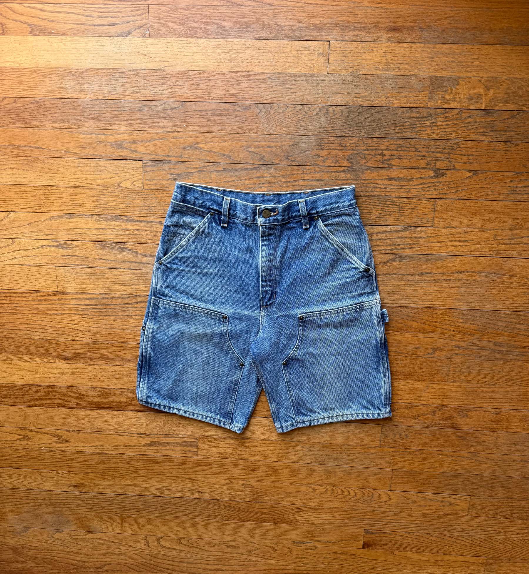 Faded Denim Double Knee Shorts - 30