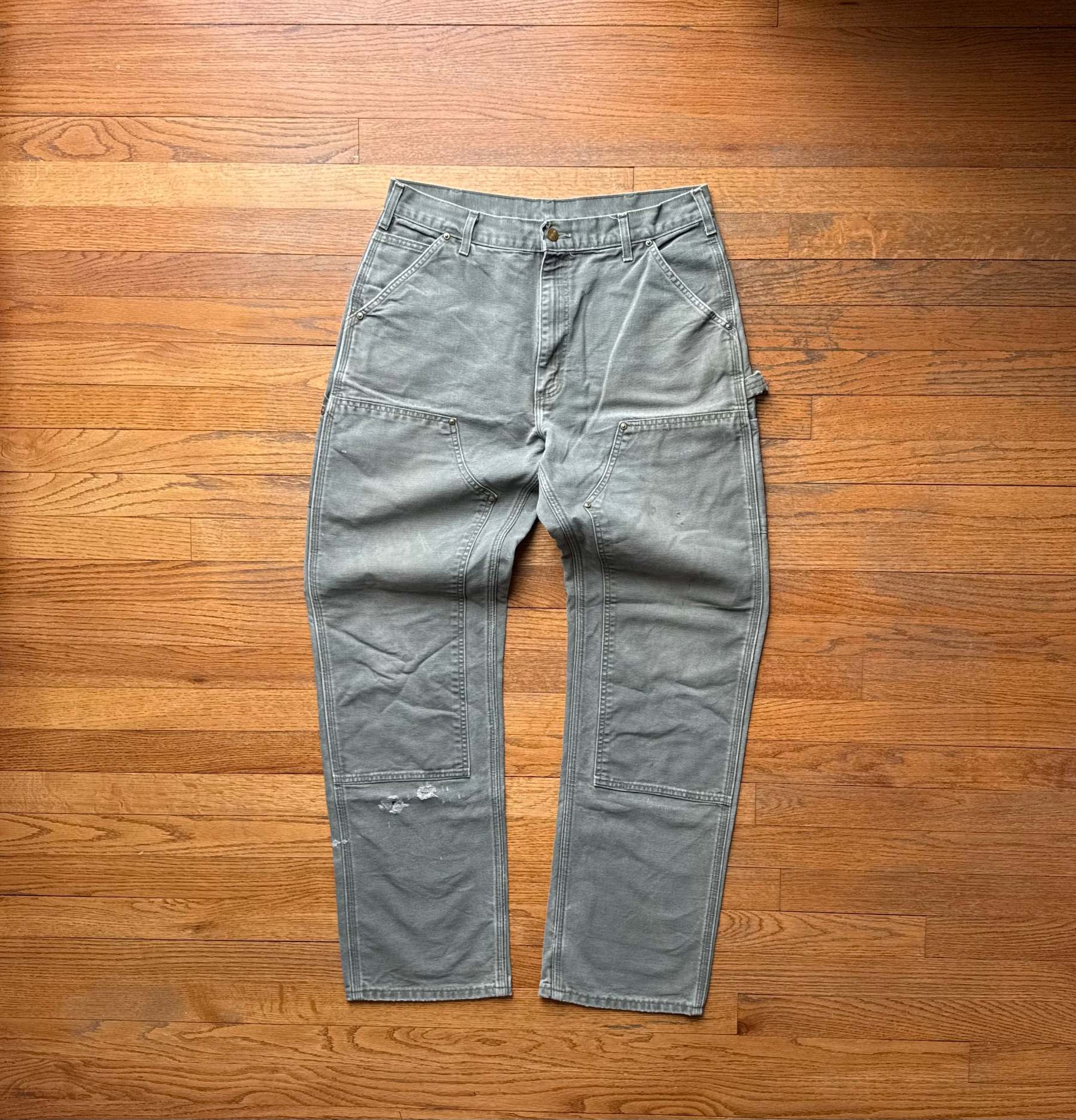 Faded Olive Green Double Knee Pants - 32 x 32