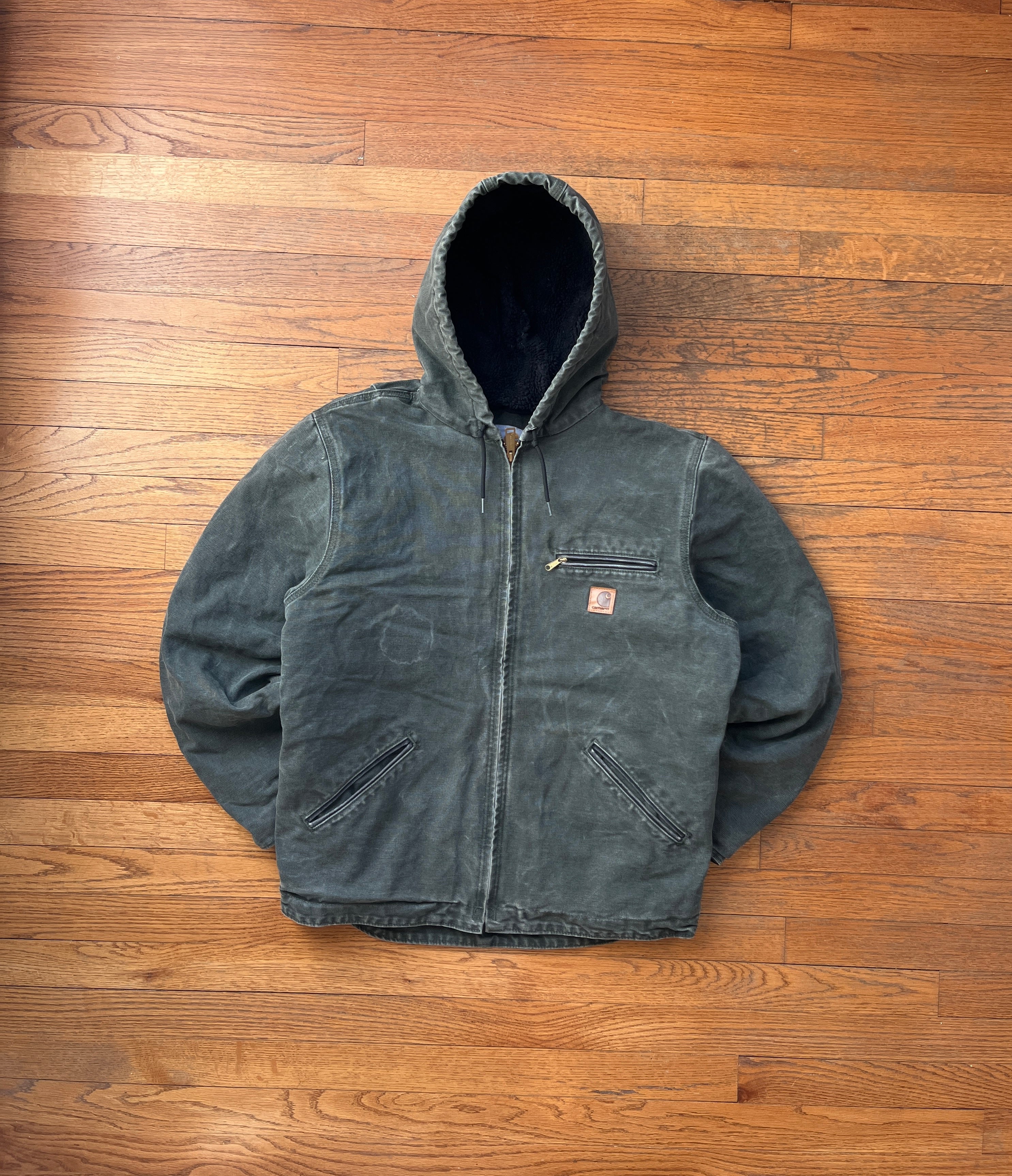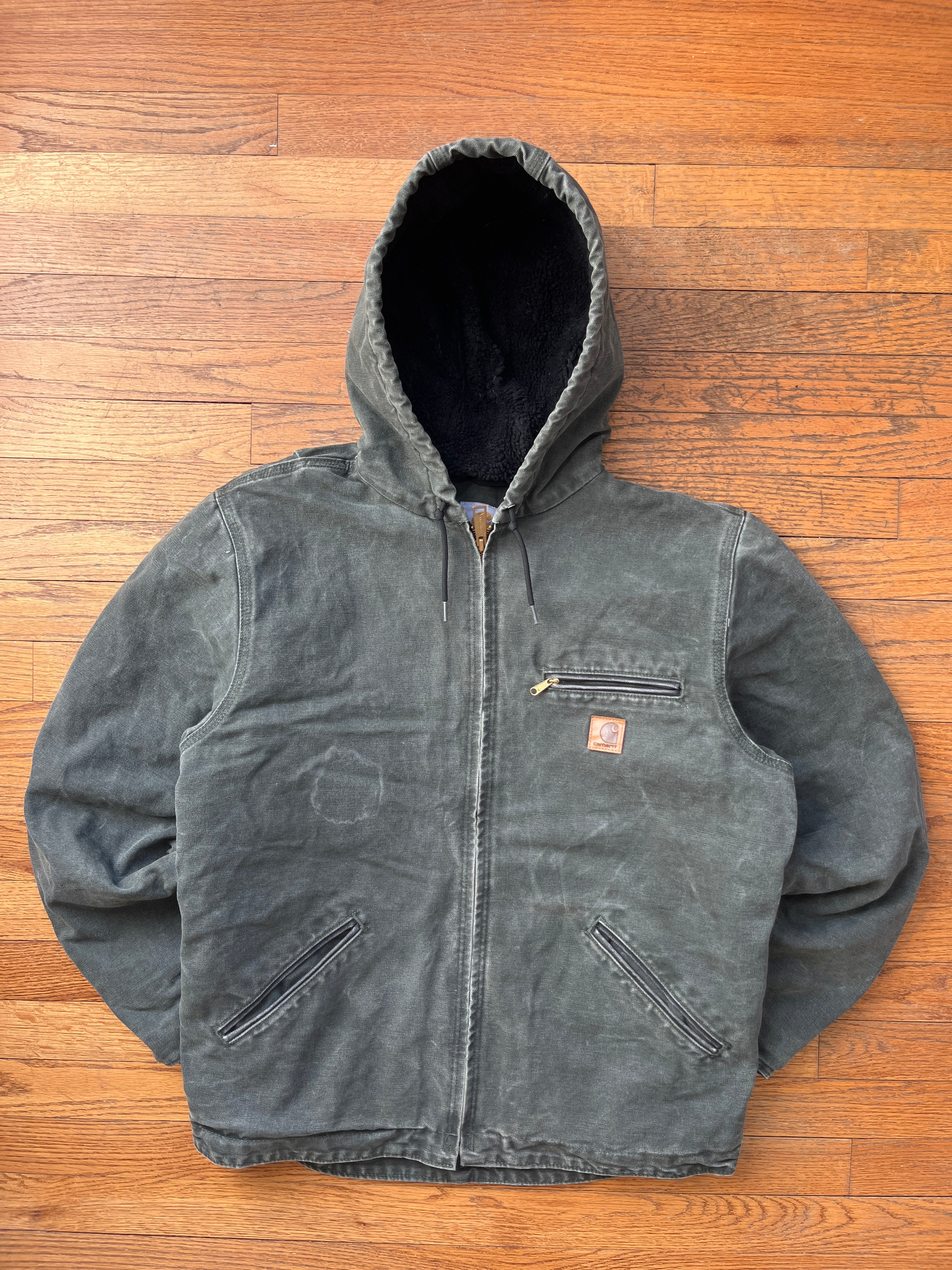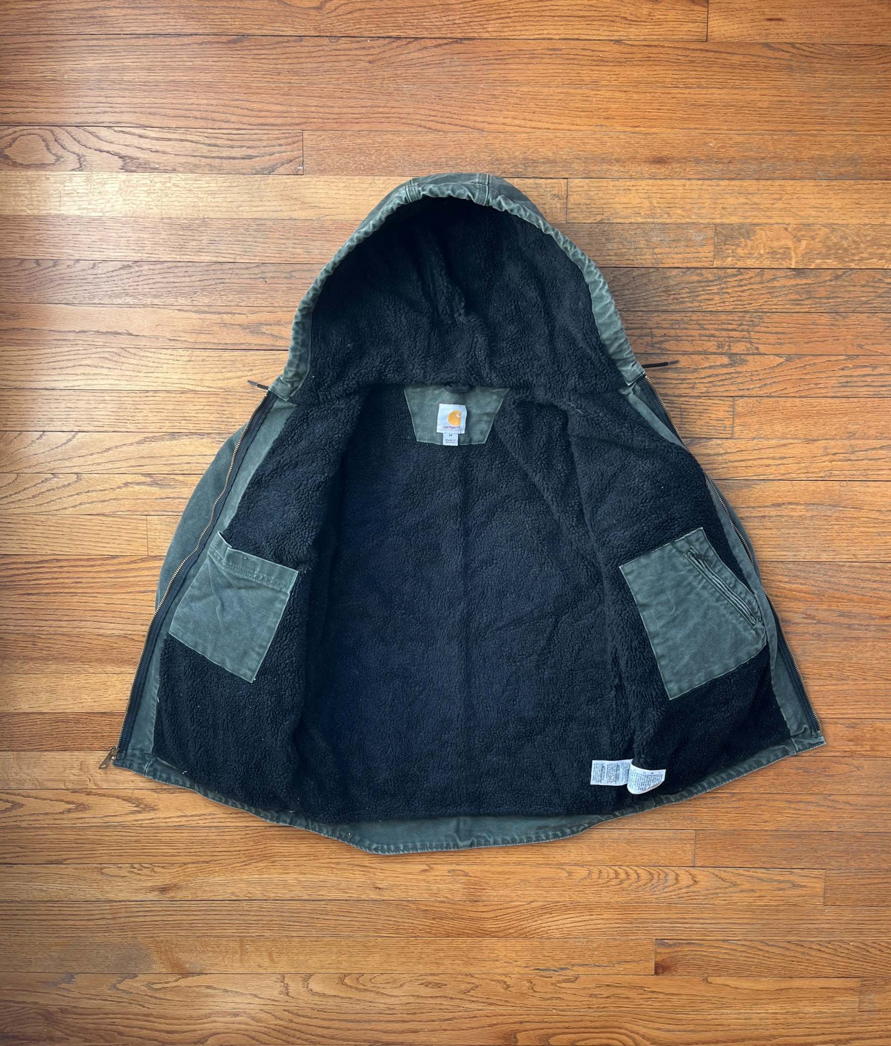 Faded Olive Green Sherpa Lined Jacket - Medium