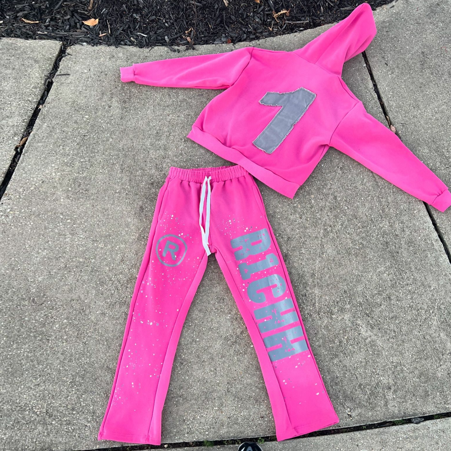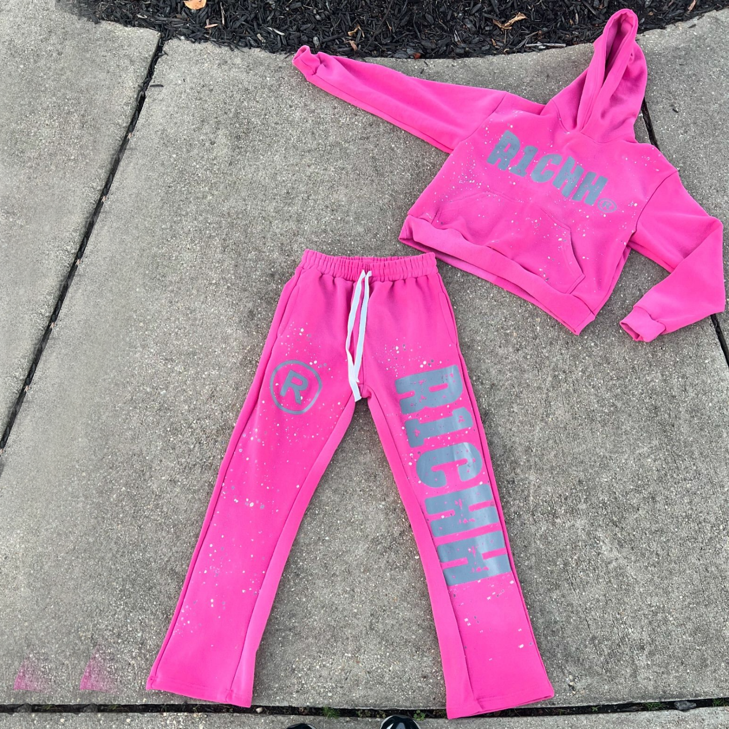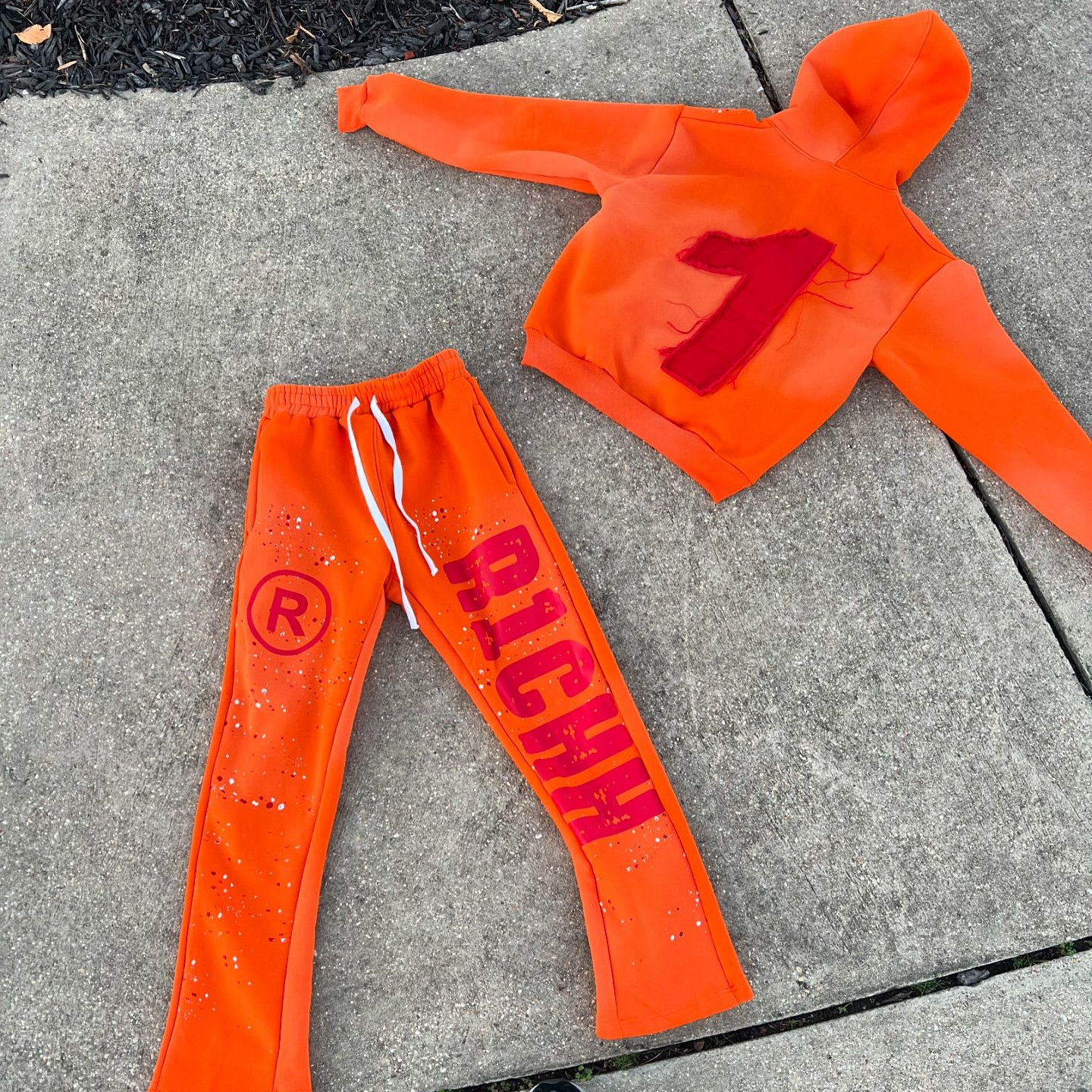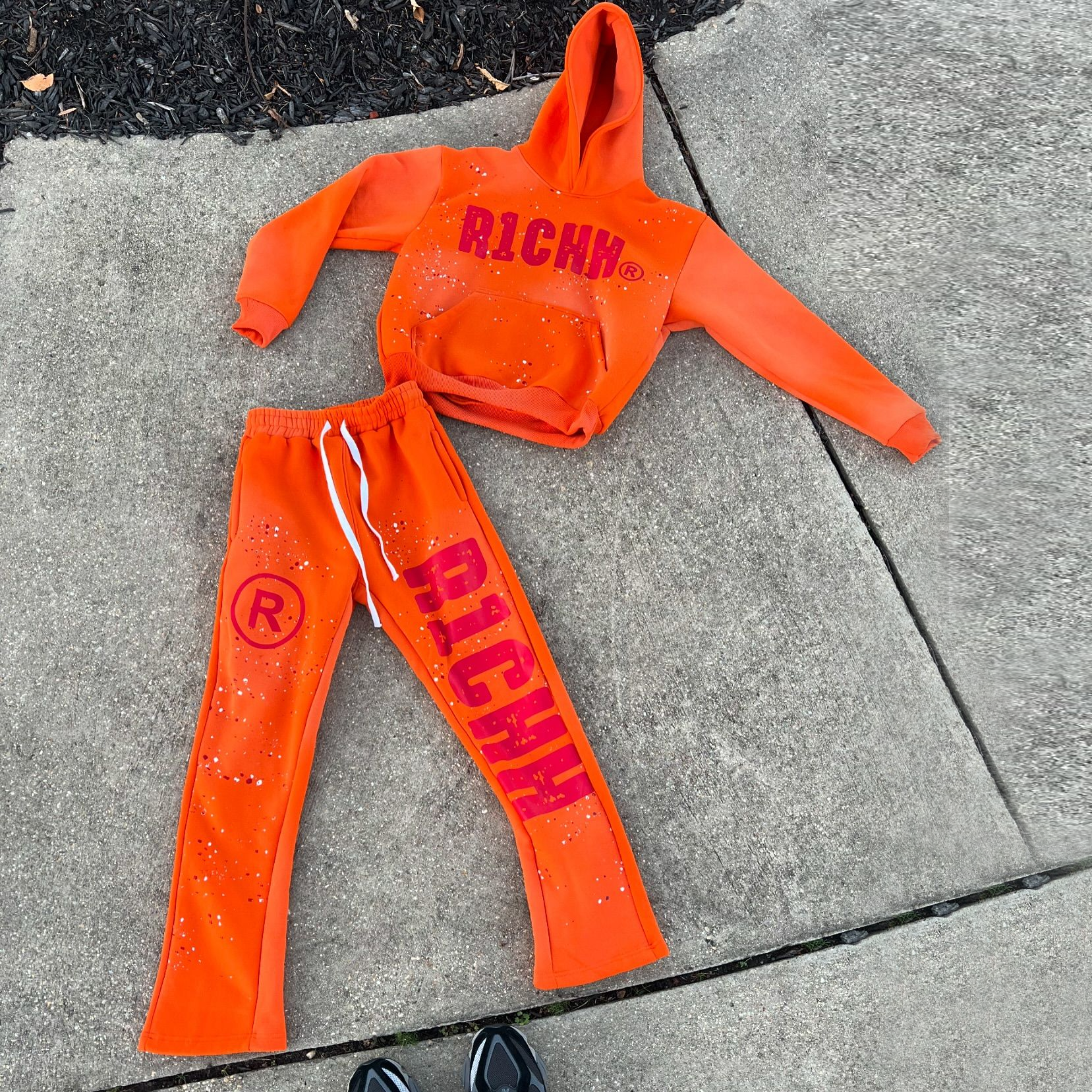 Fashion casual style ink-splashed print hoodie set