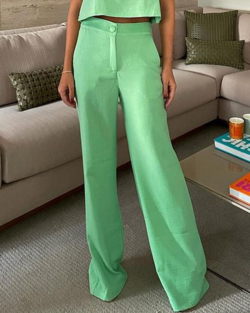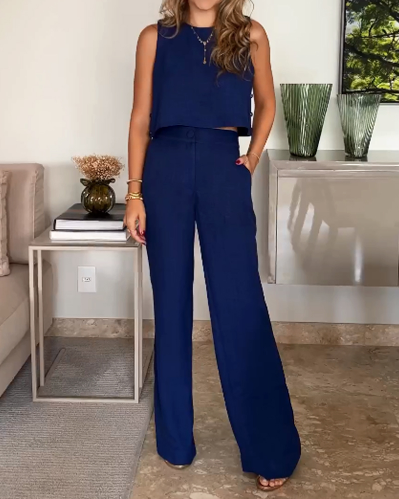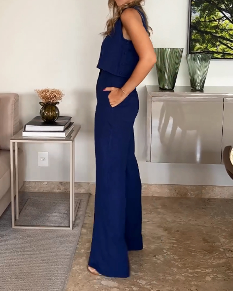 Casual Solid Color Vest & Pants Two-piece Set