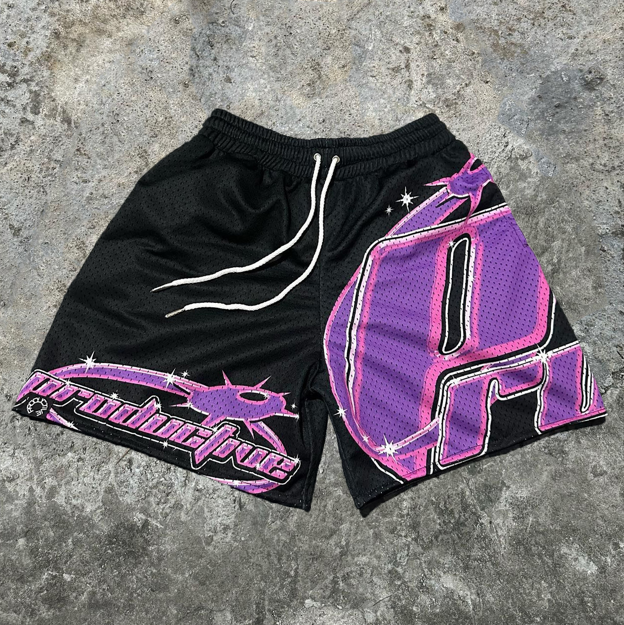 Fashion Productive Letter Print Mesh Pocket Shorts