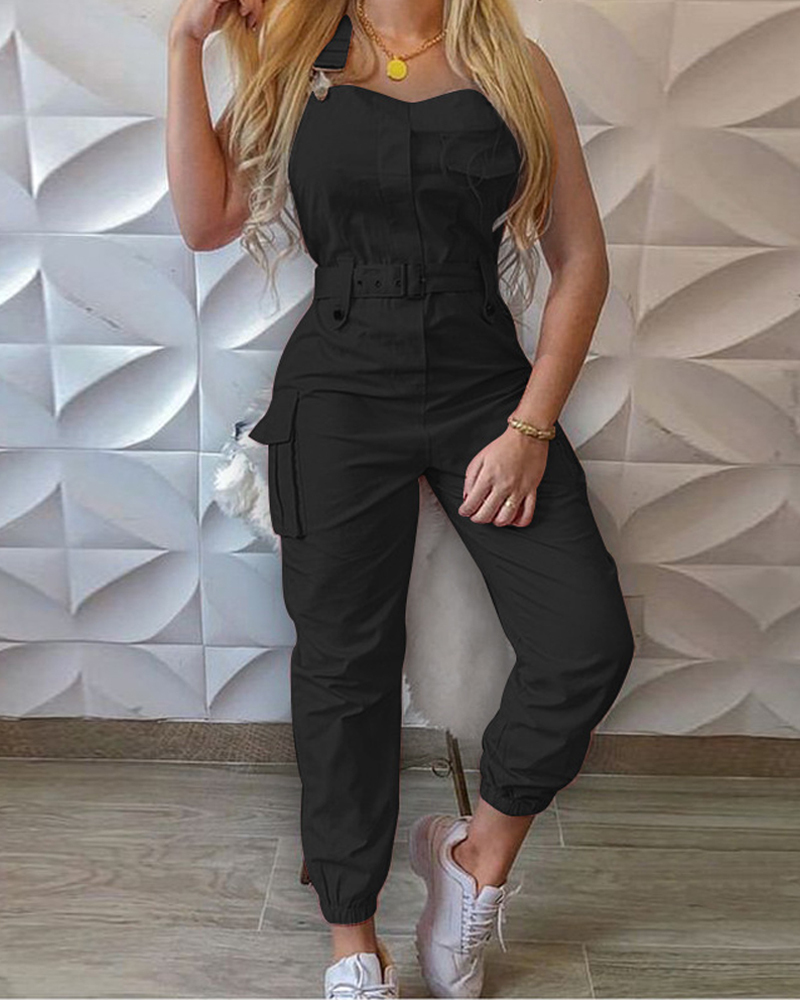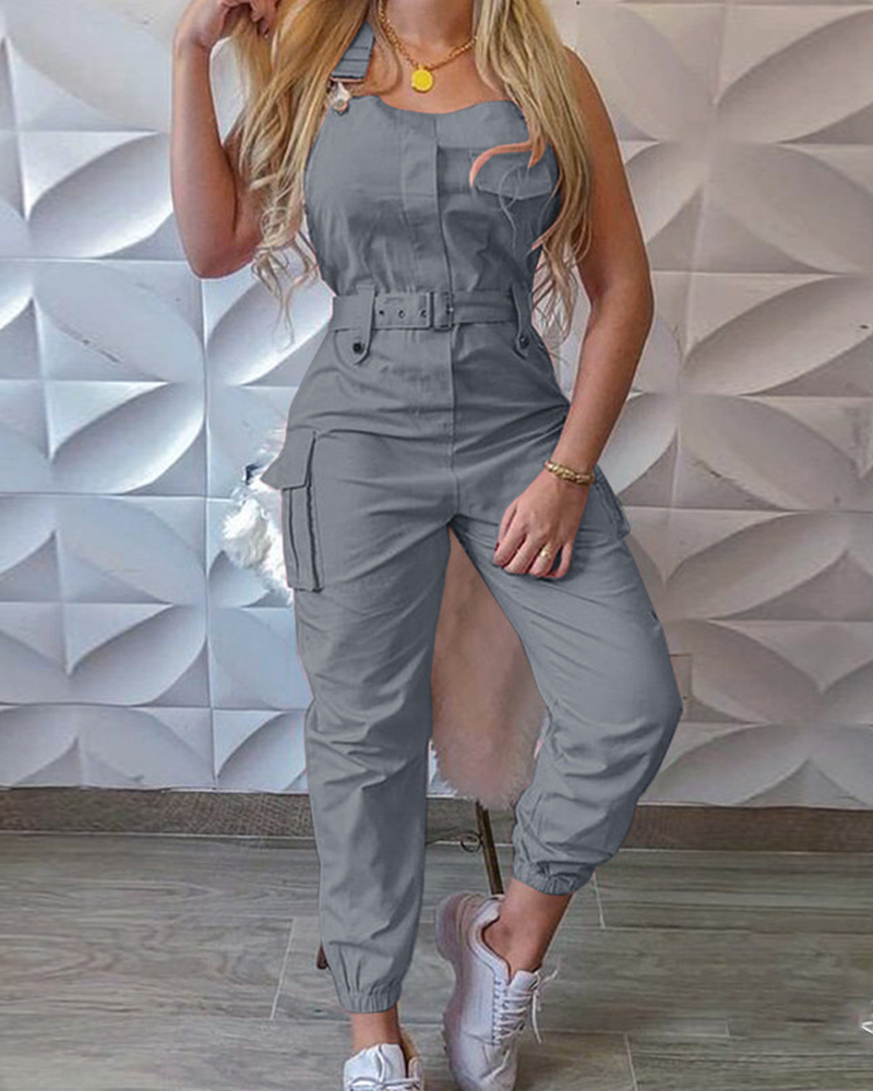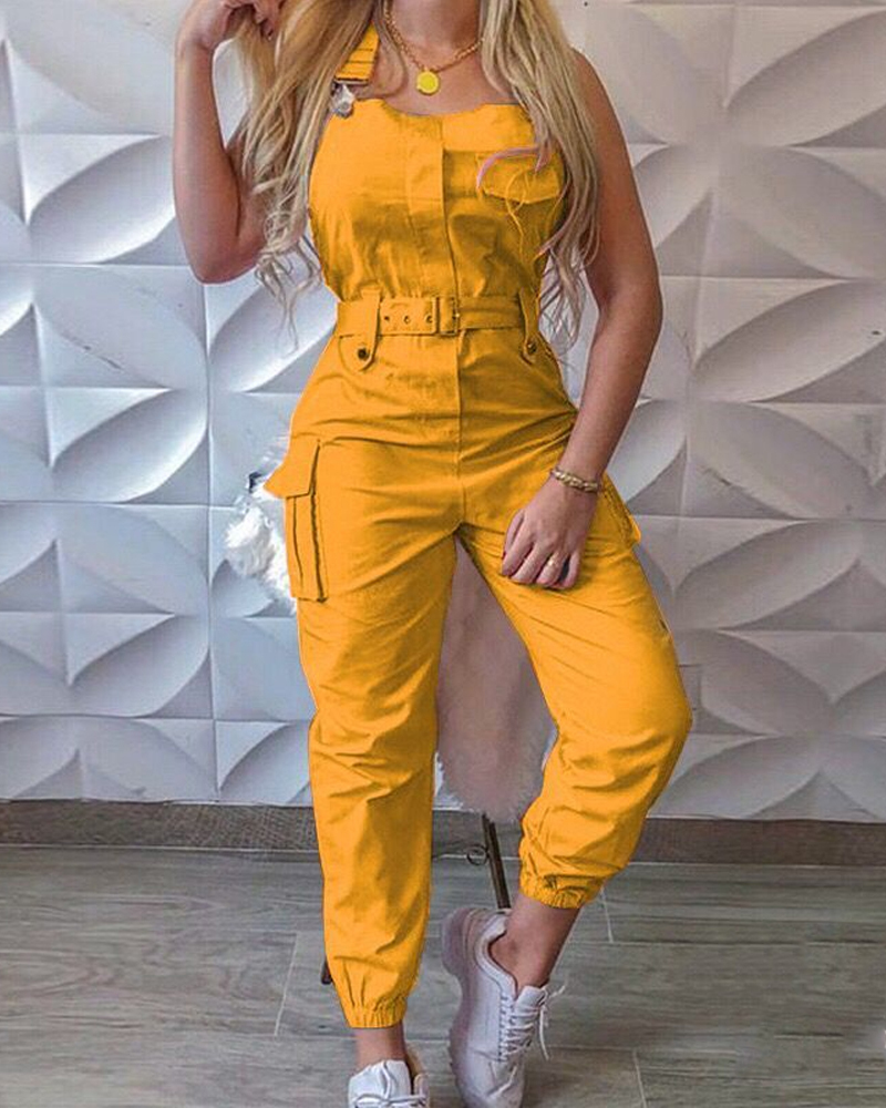 Casual Solid Color Sleeveless Jumpsuit