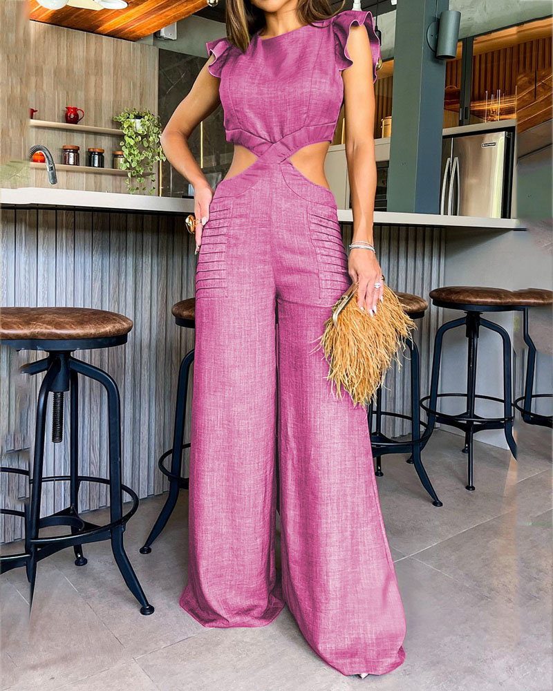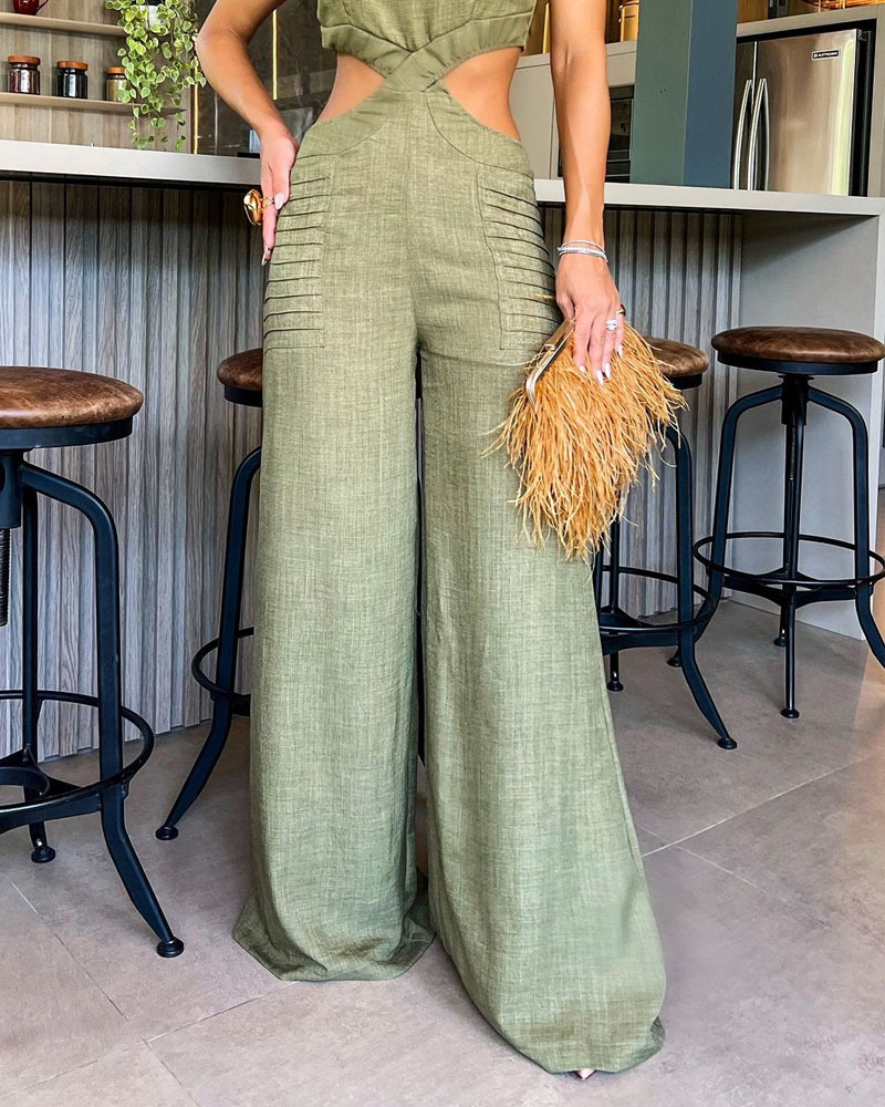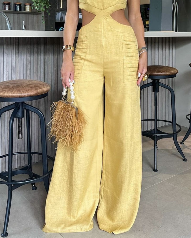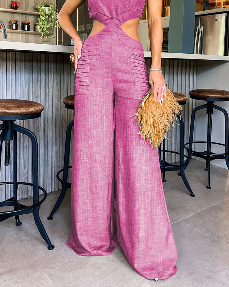 Fashion Solid Color Hollow Jumpsuit