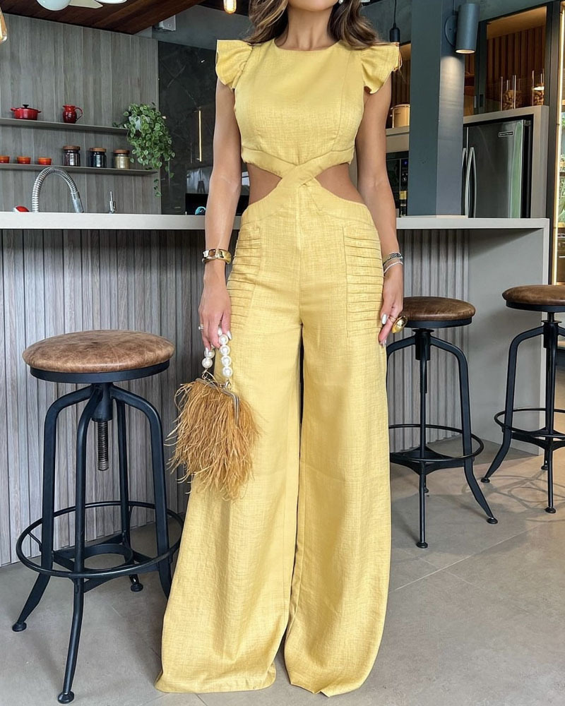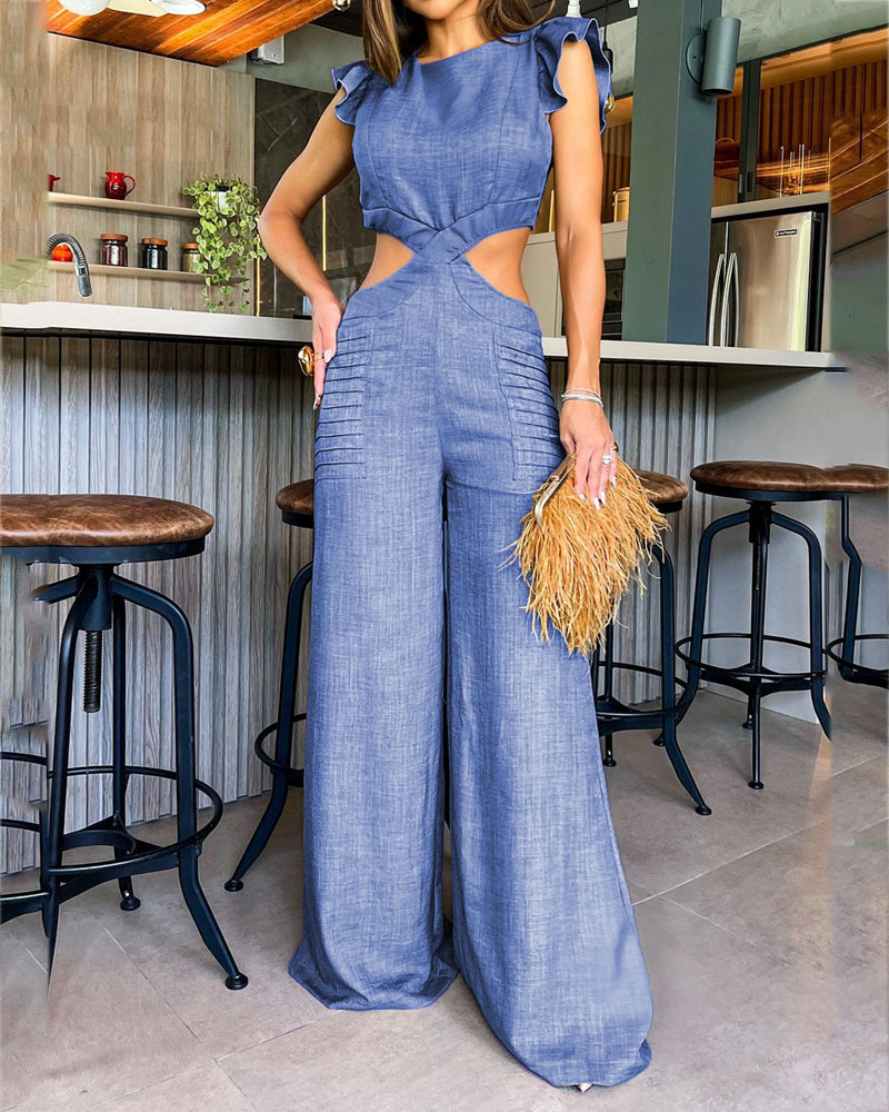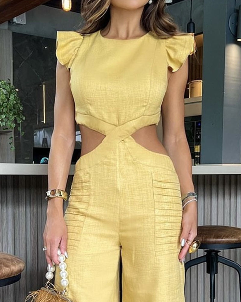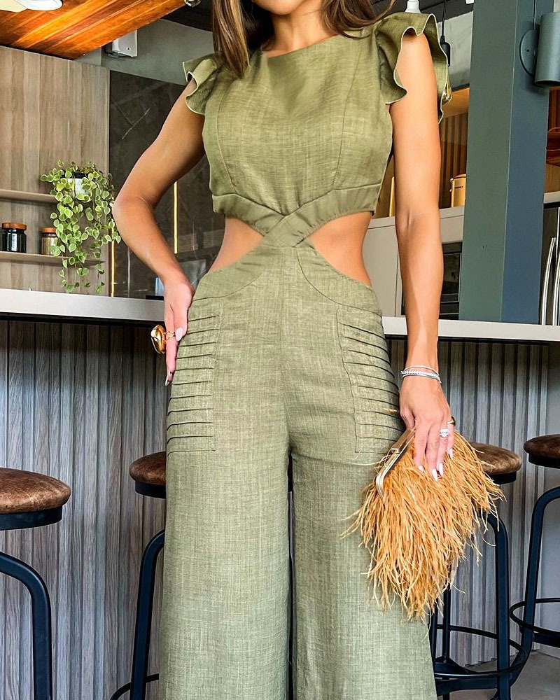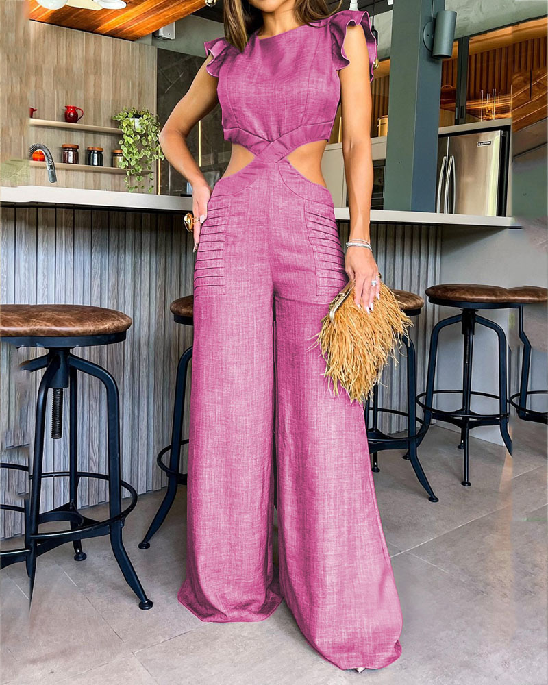 Fashion Solid Color Hollow Jumpsuit