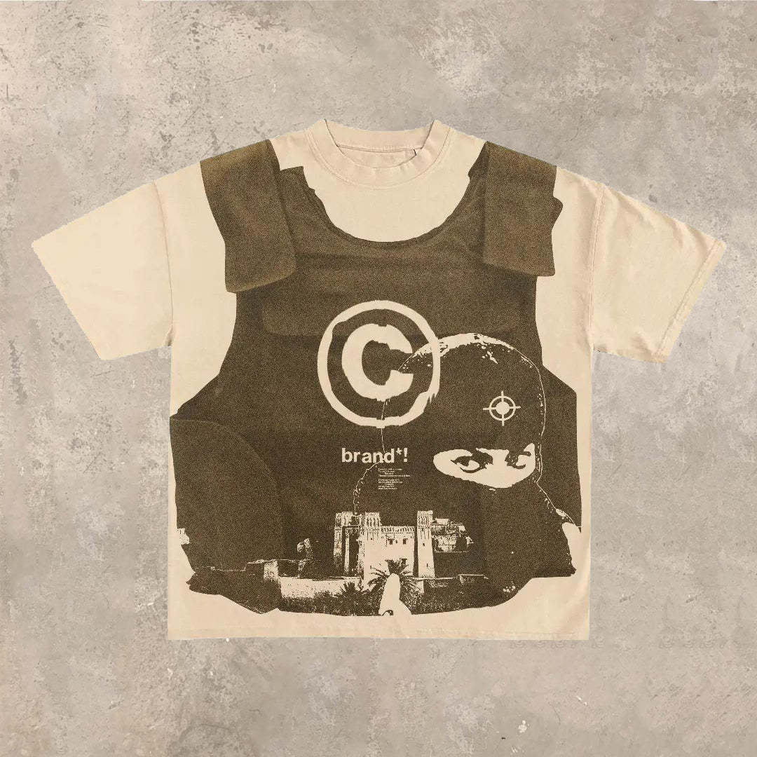 Fashionable personality street style round neck printed short-sleeved T-shirt
