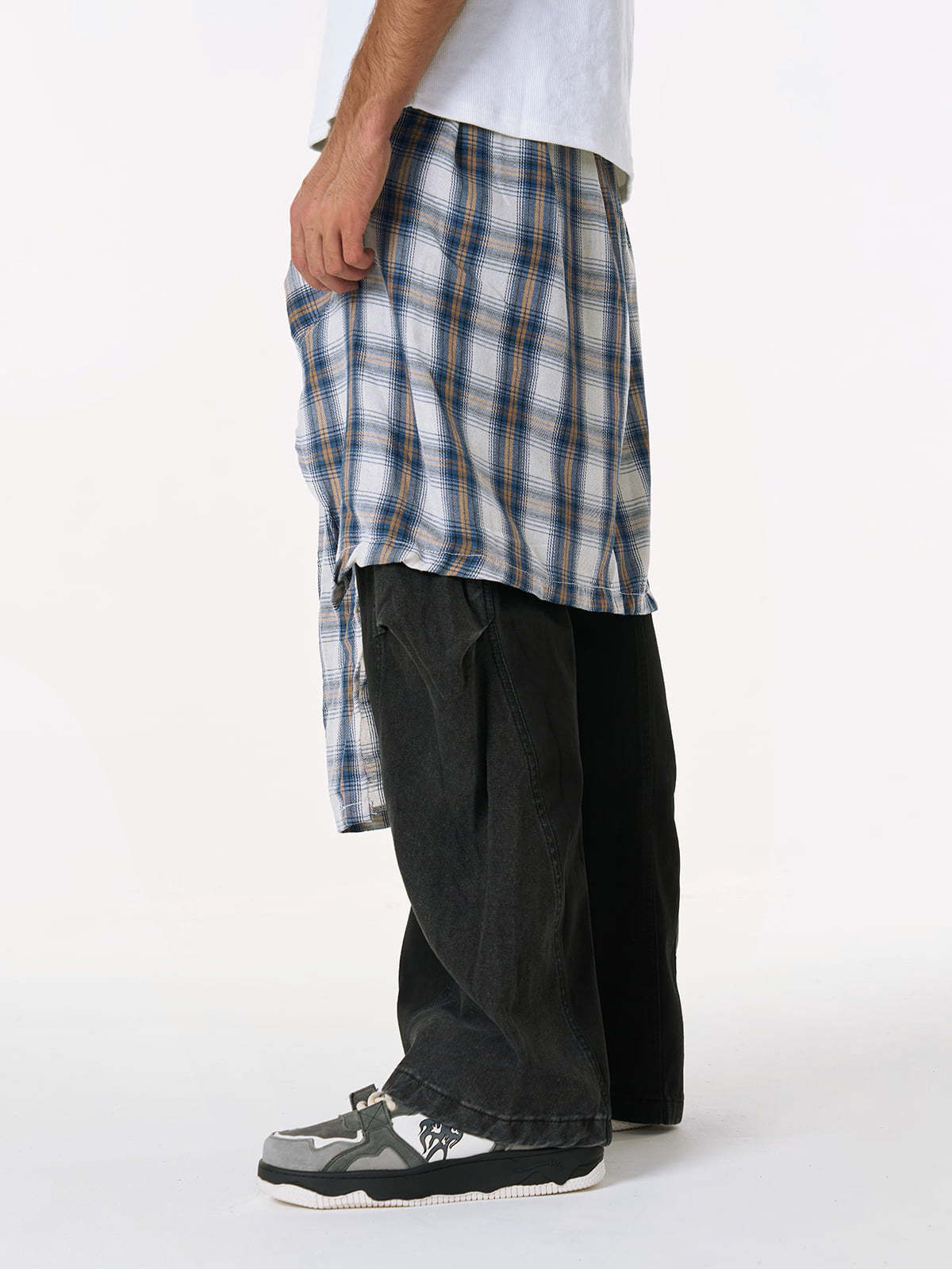 Denim Faux Two-piece Plaid Detachable Scimitar Jeans - 2435