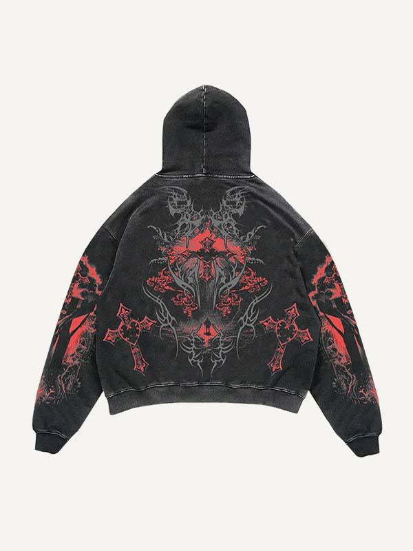 Figure&Cross Graphic Print Slant Pockets Hoodie