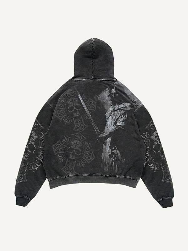 Figure&Cross&Skull&Sword Print Slant Pockets Hoodie