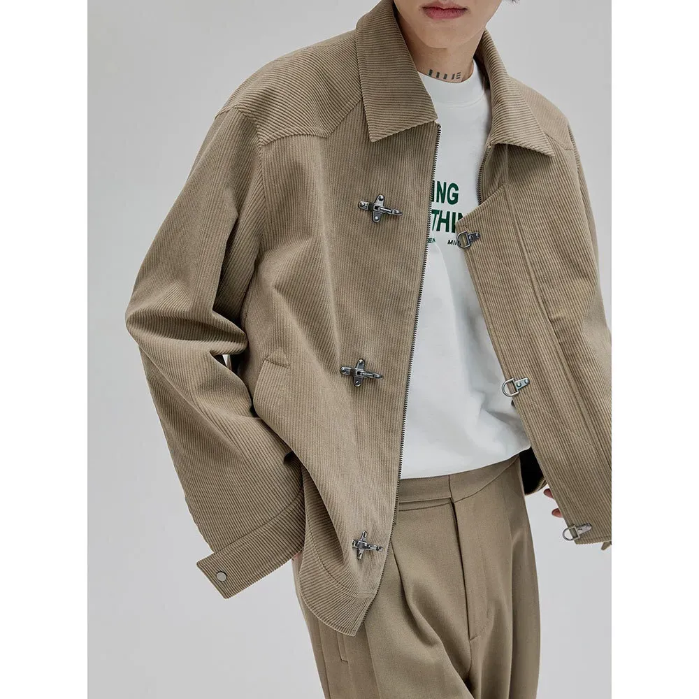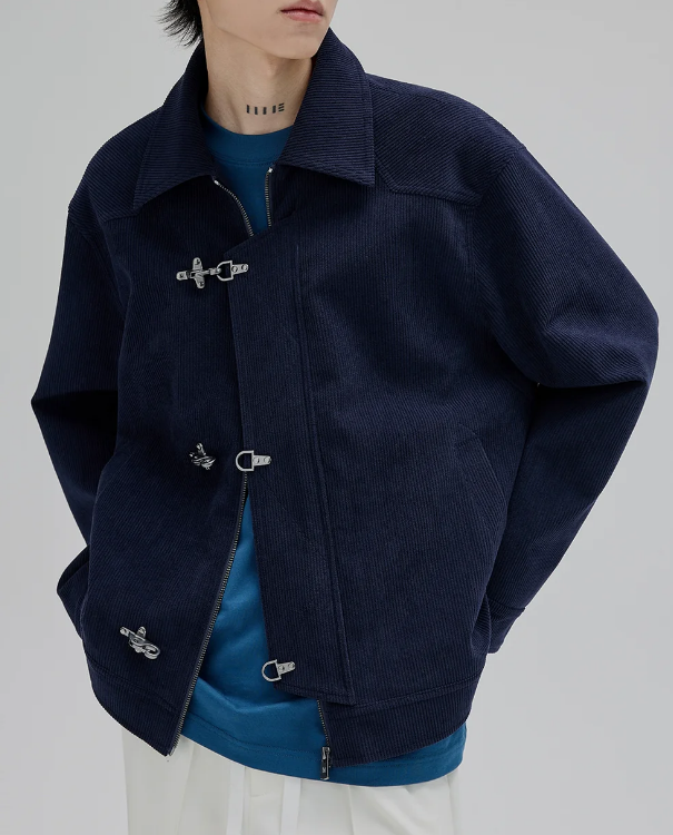 FIREMAN CLASP-BUCKLE CORDUROY COLLARED JACKET