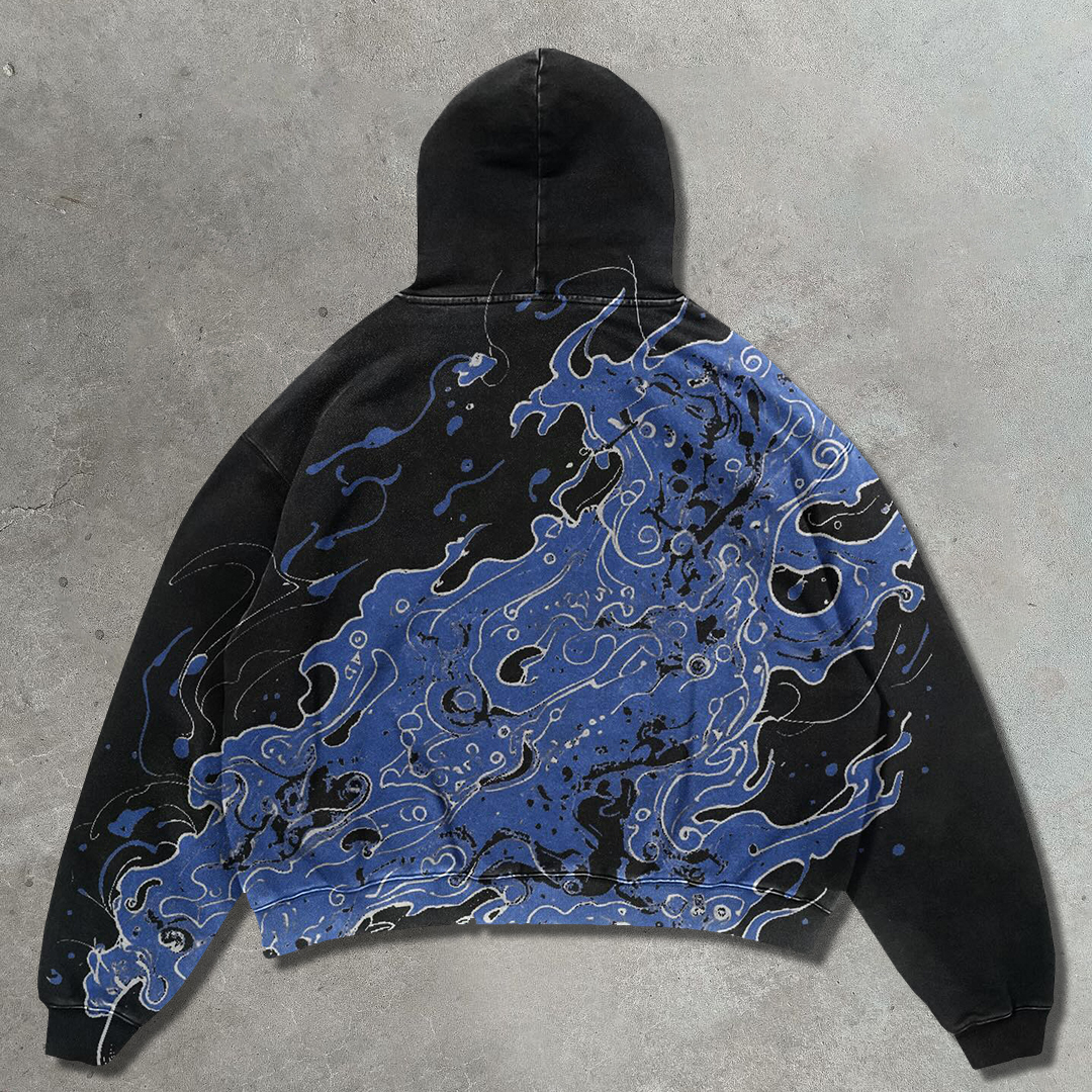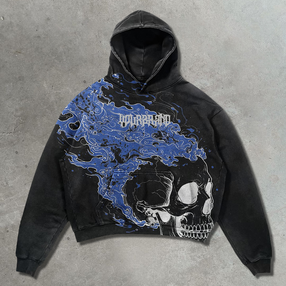 Flame Skull Casual Street Heavyweight Hoodie