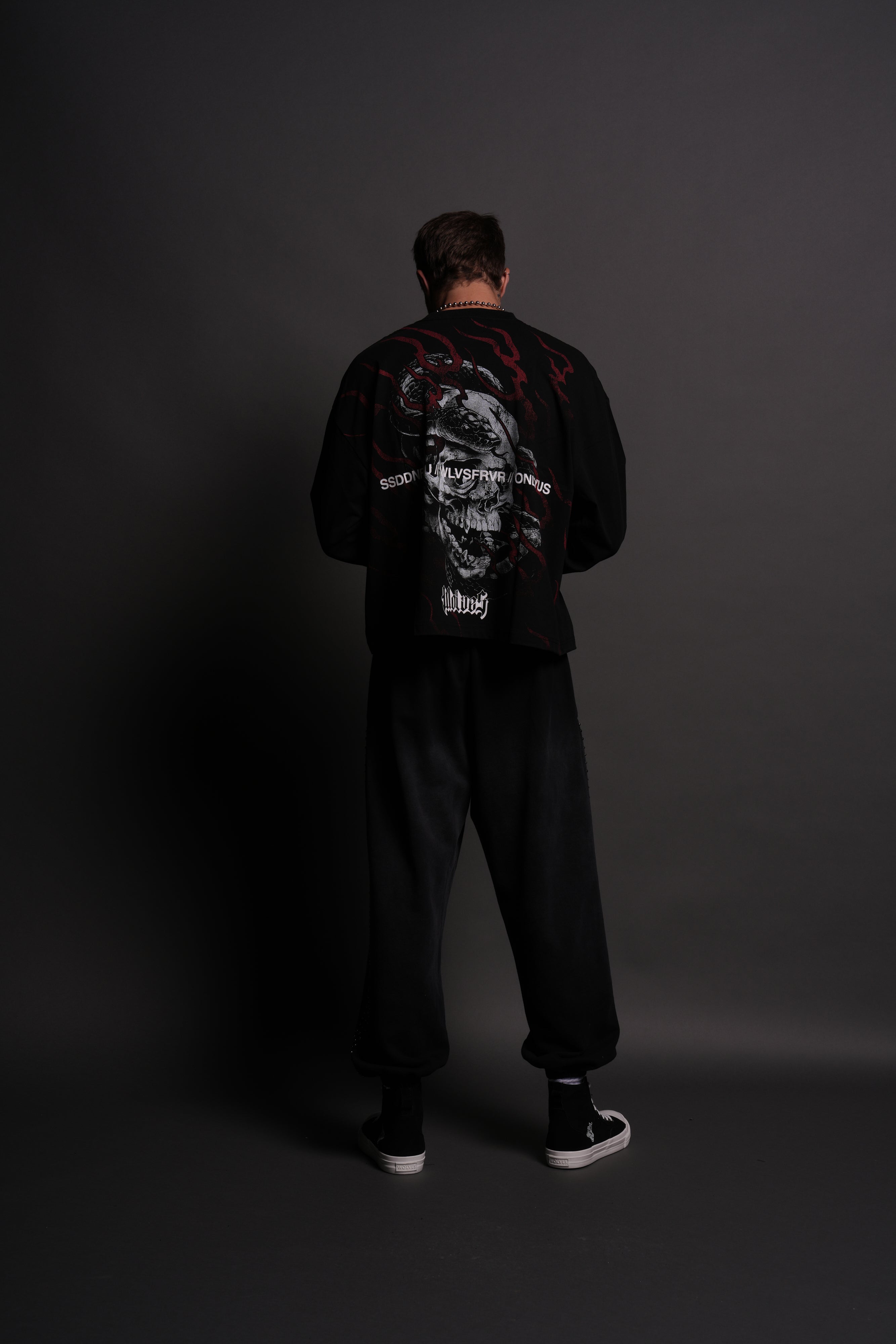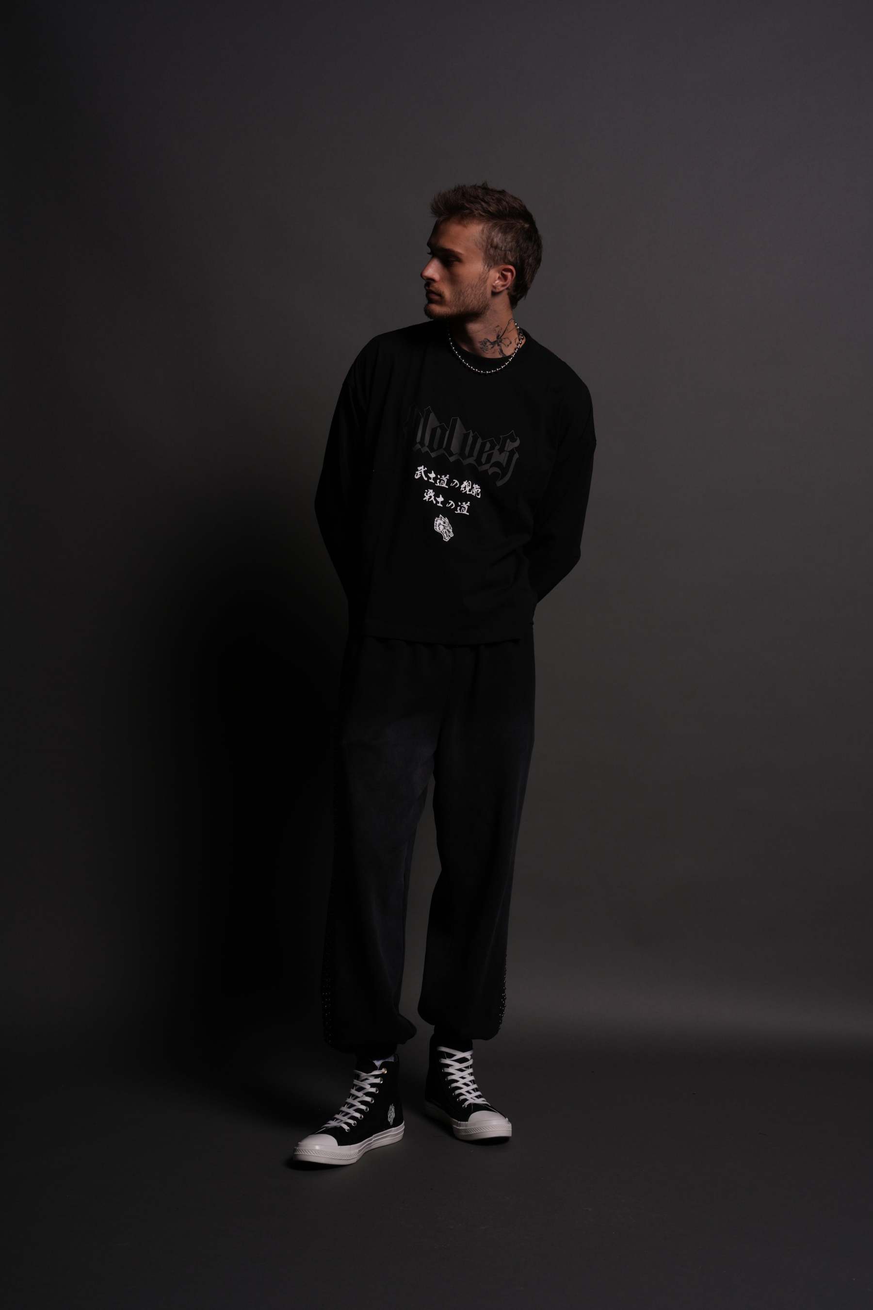Forever Reborn Grunge "Box Cut" L/S Tee in Black