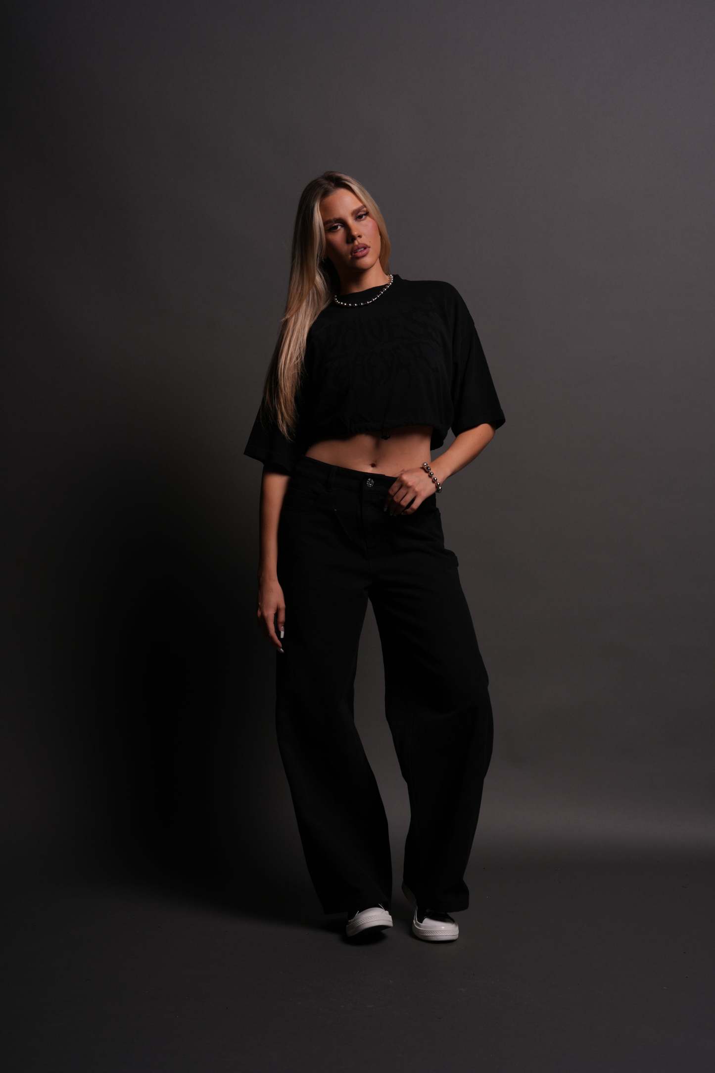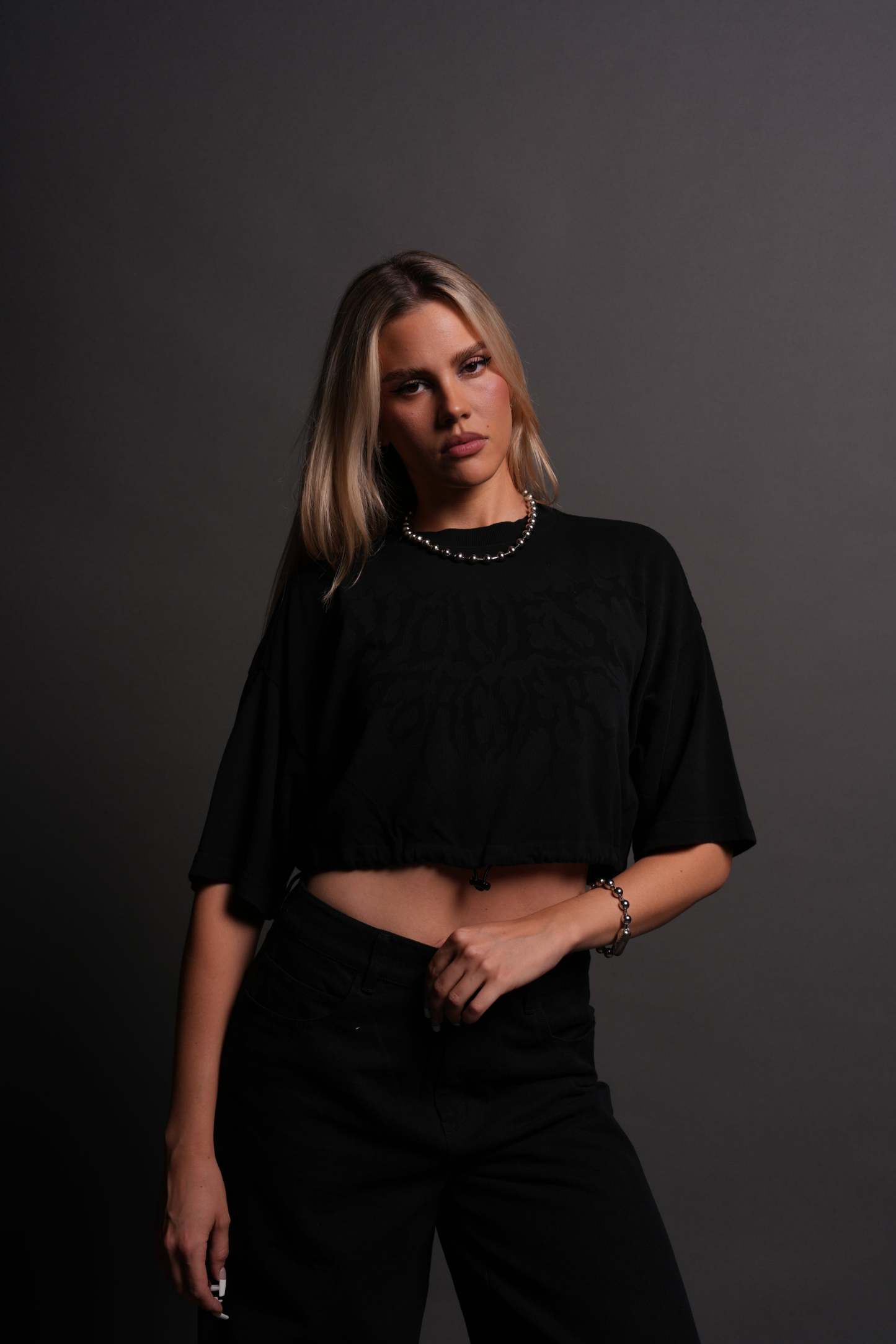 Forged From Iron Bungee Cropped Tee in Black Horizon Sun Fade