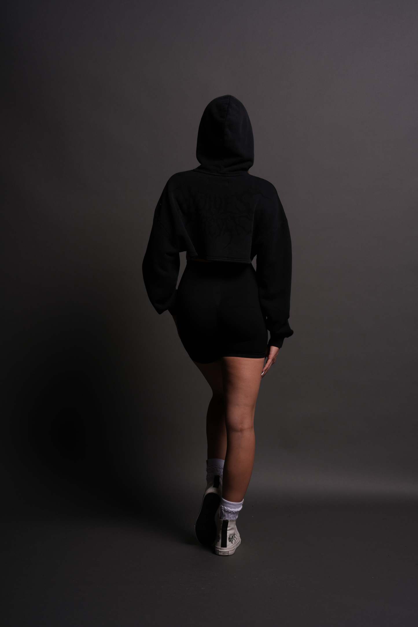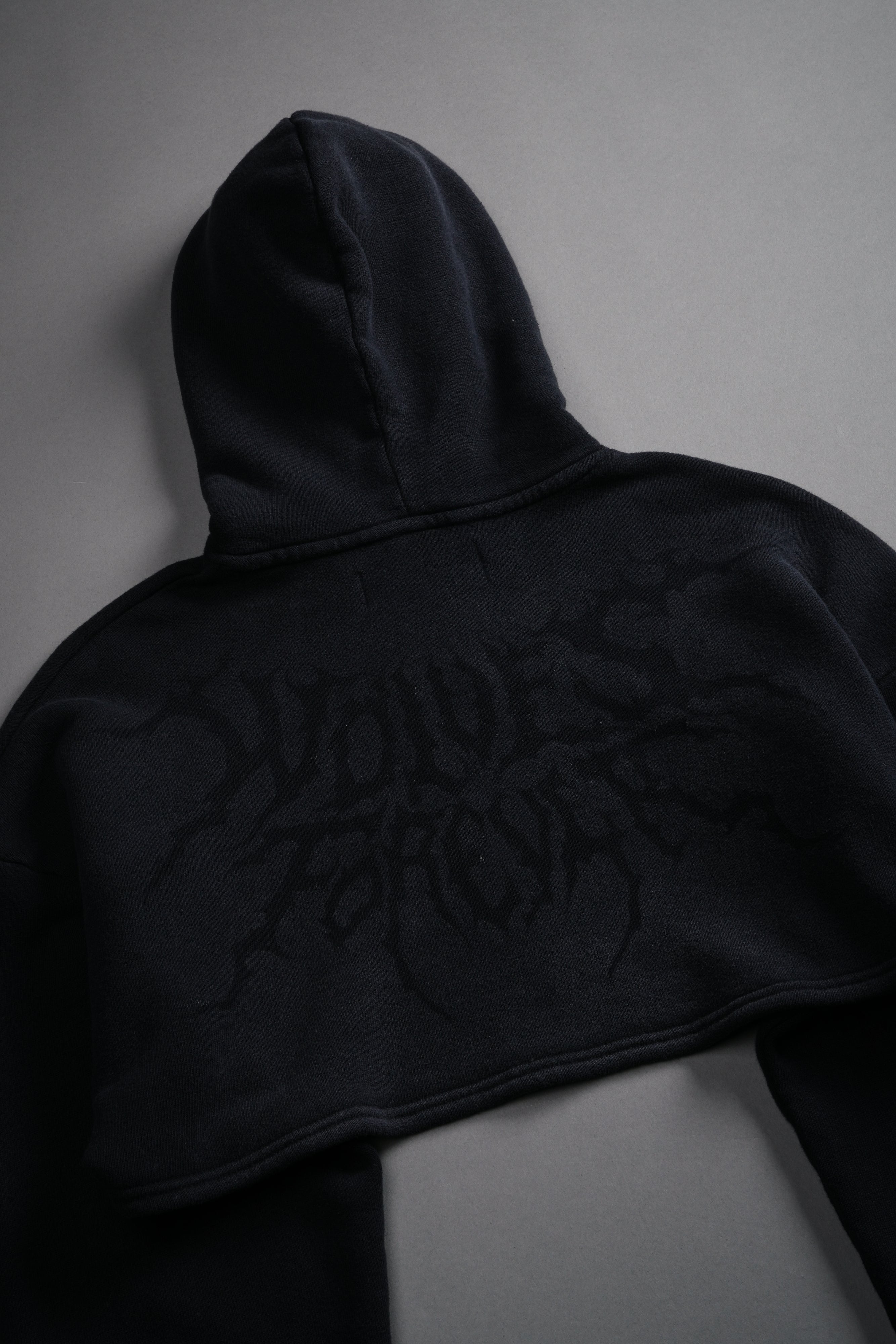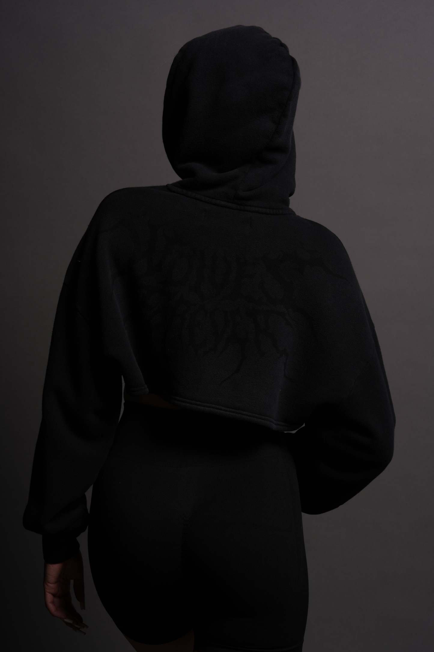 Forged From Iron "Willow" Cropped Hoodie in Black Spine Sun Fade