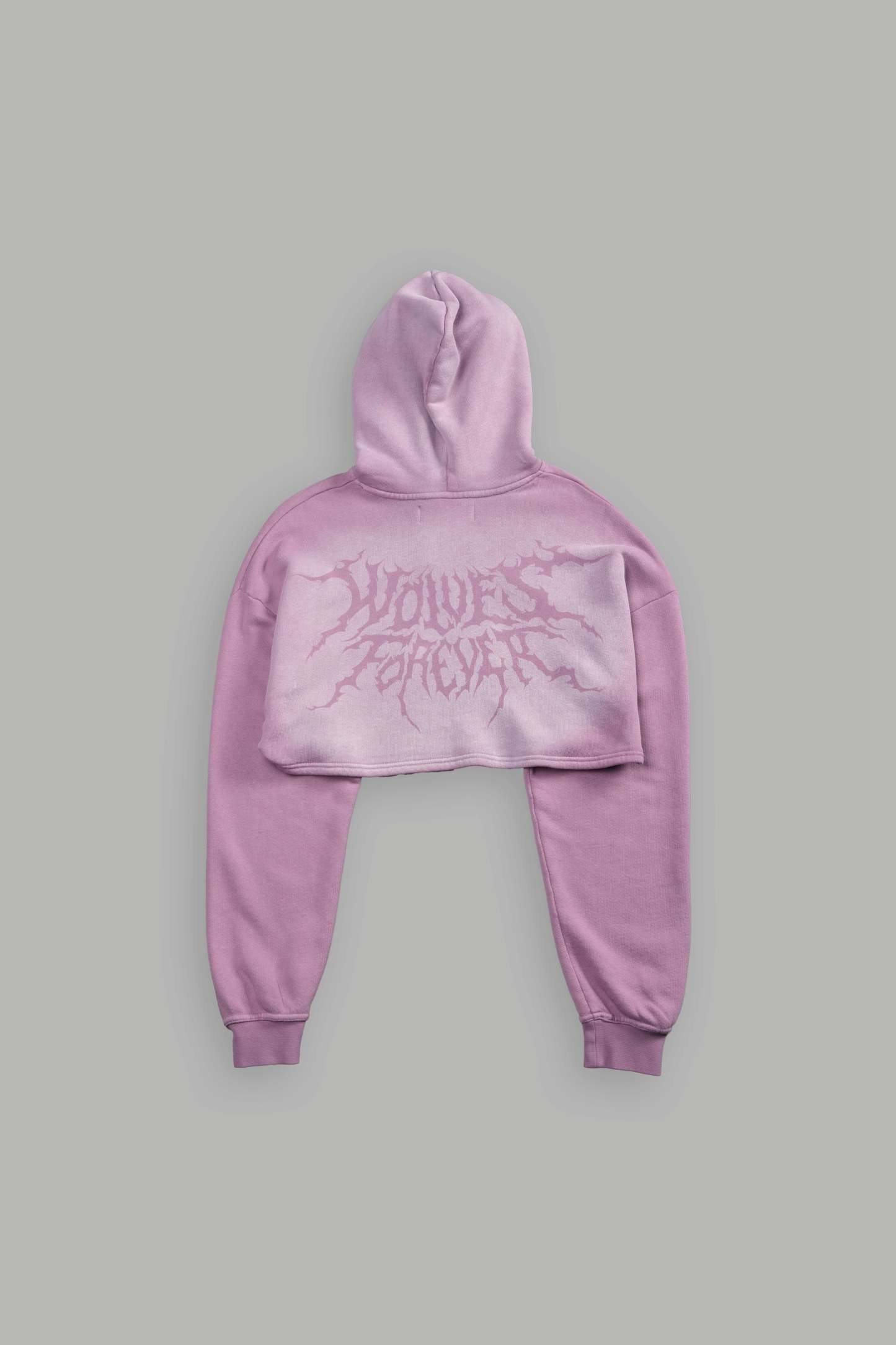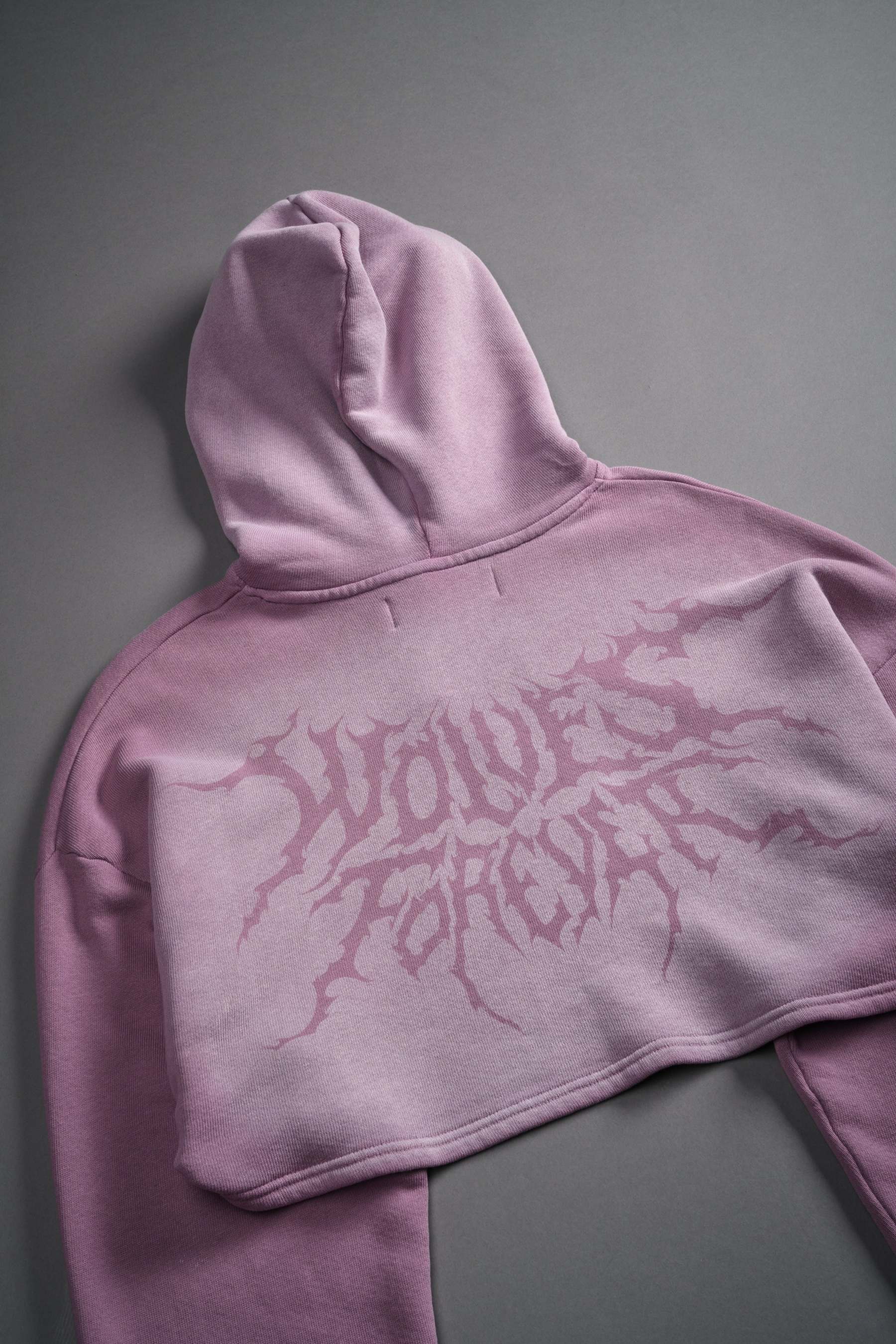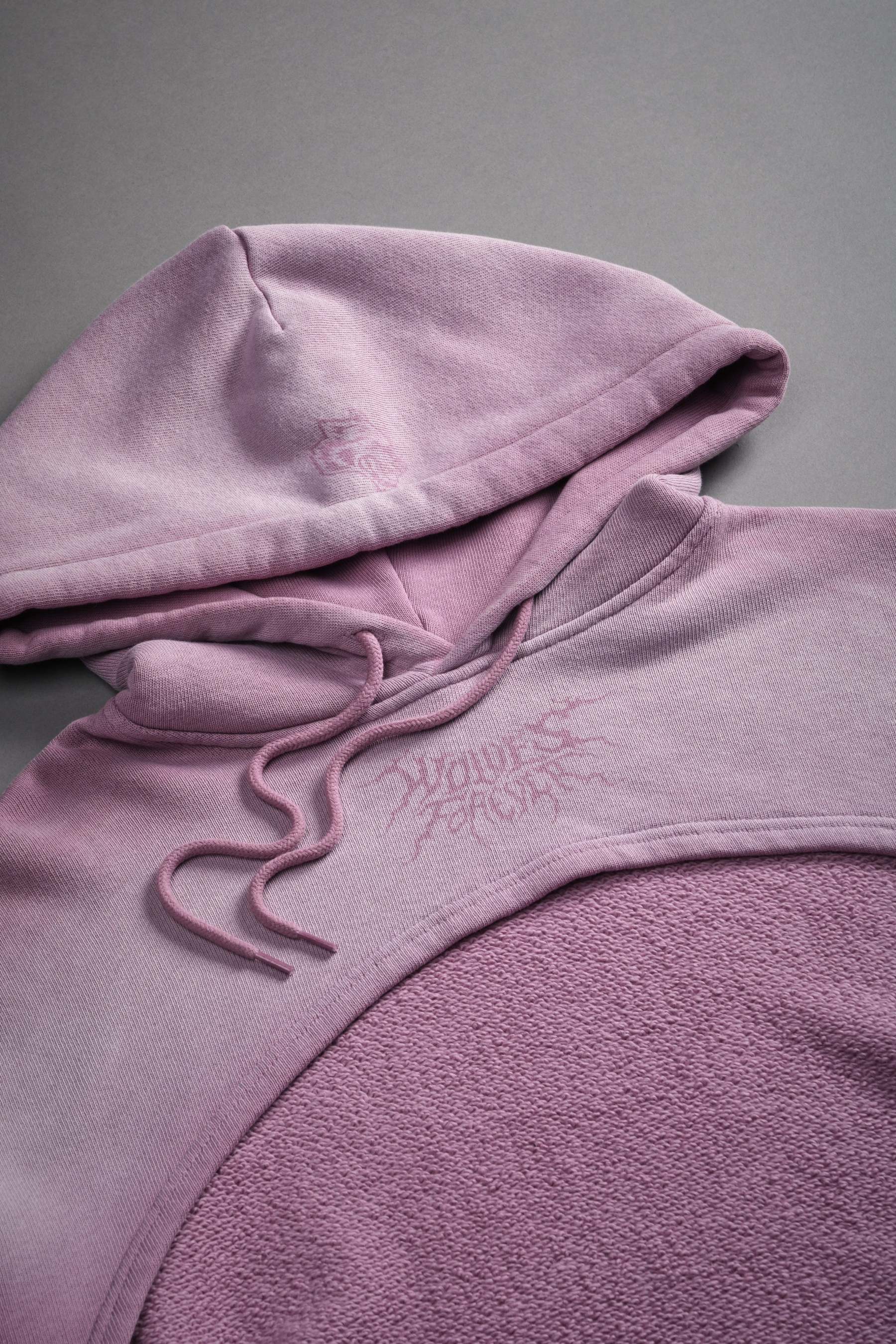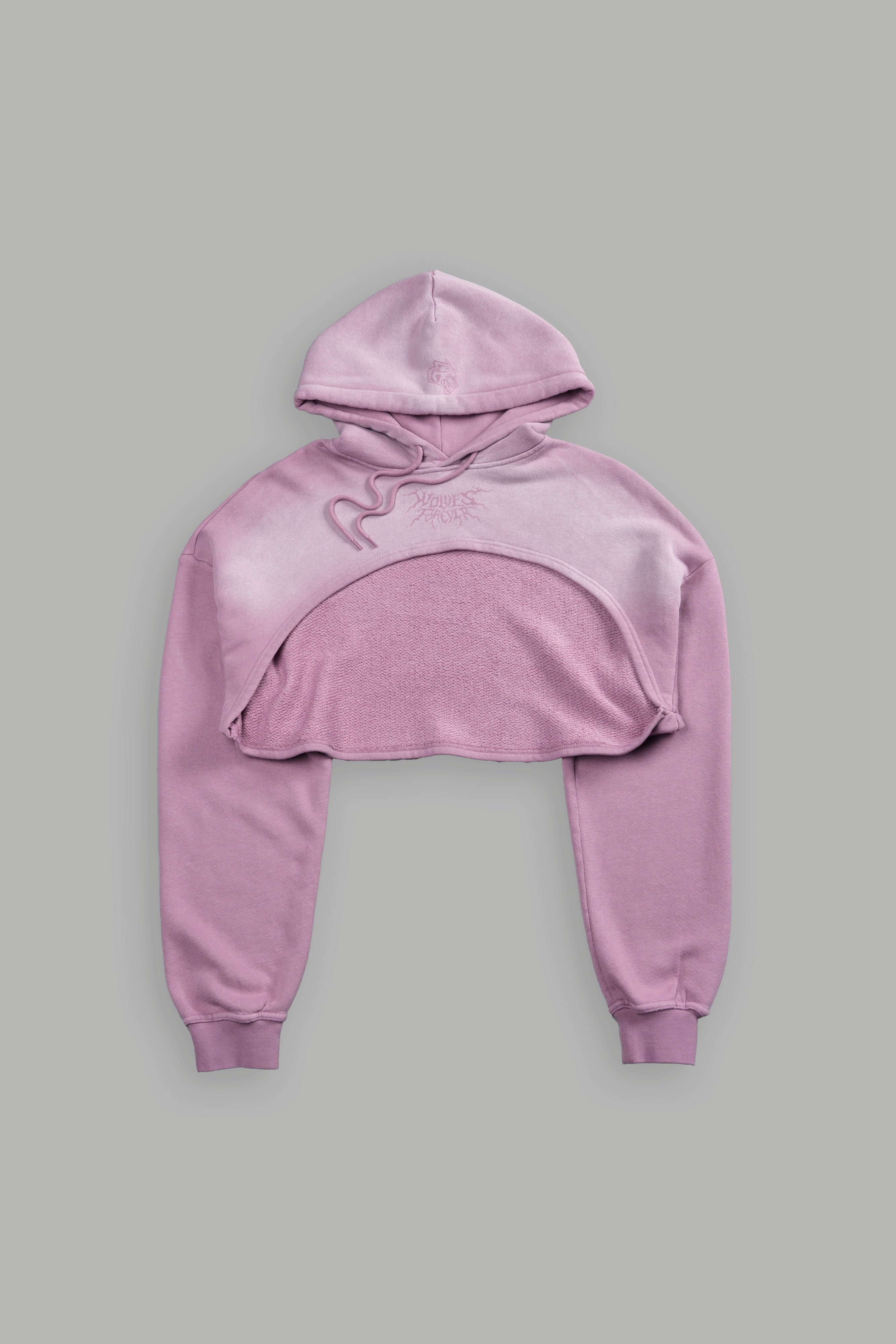 Forged From Iron "Willow" Cropped Hoodie in Pink Smoke Spine Sun Fade