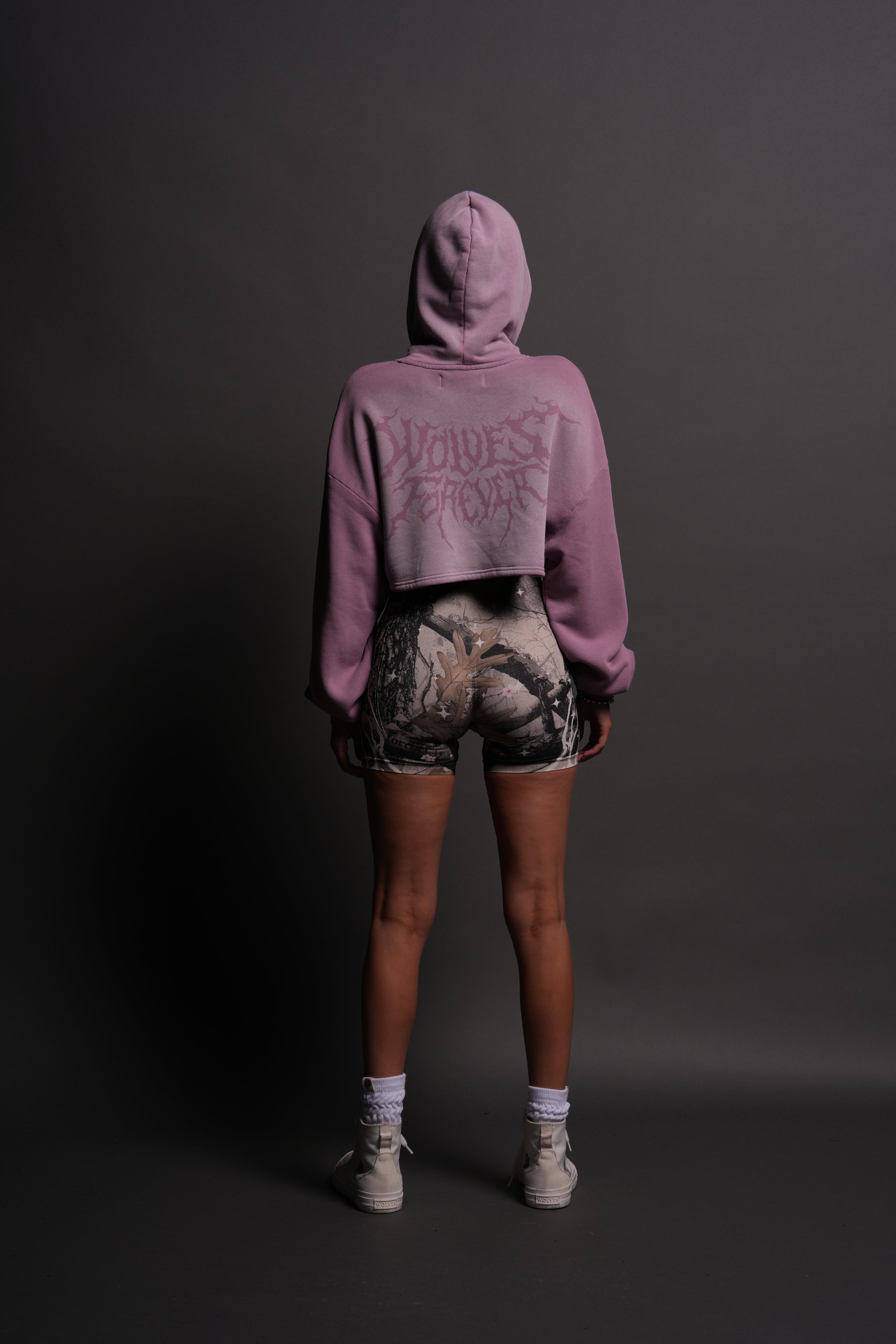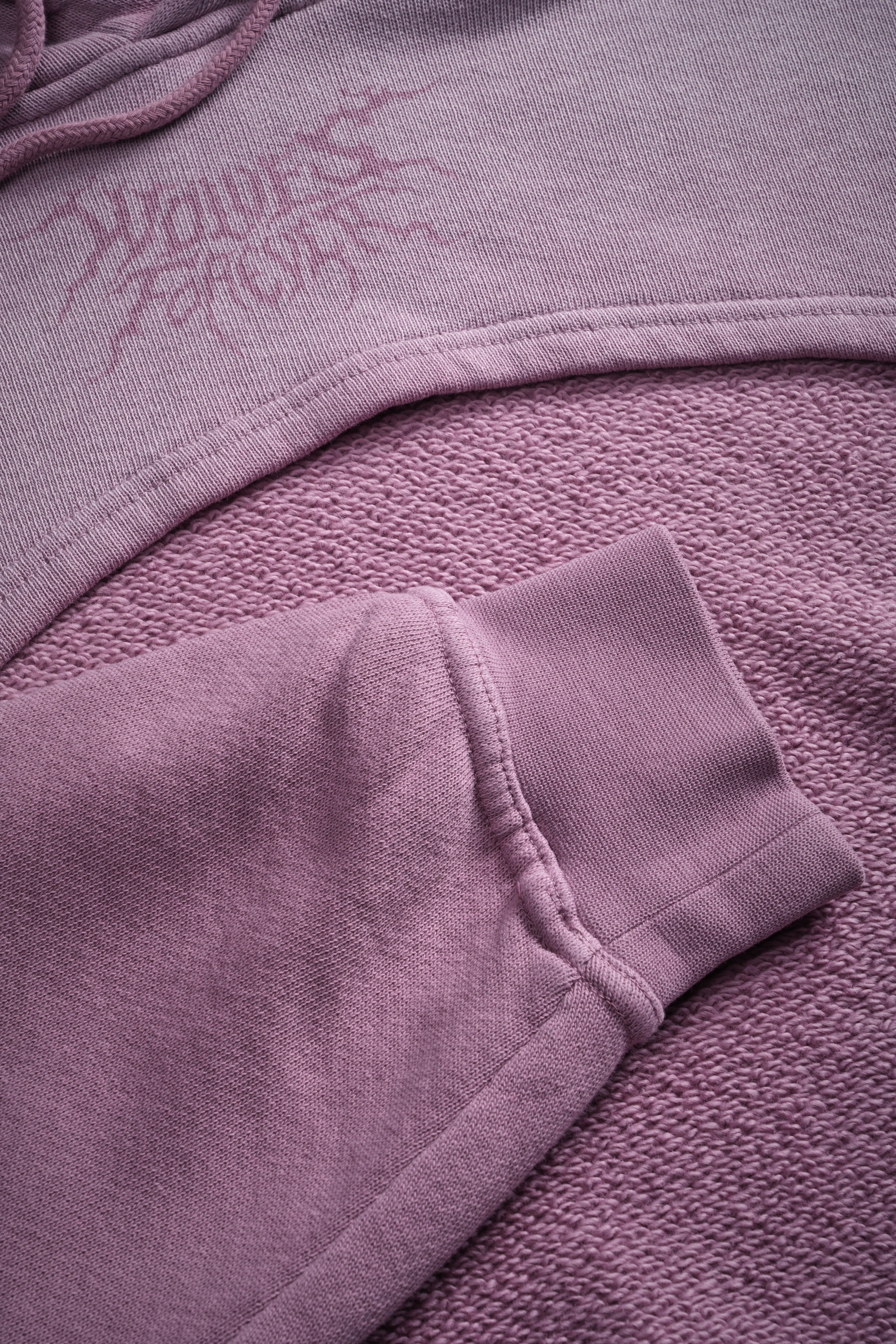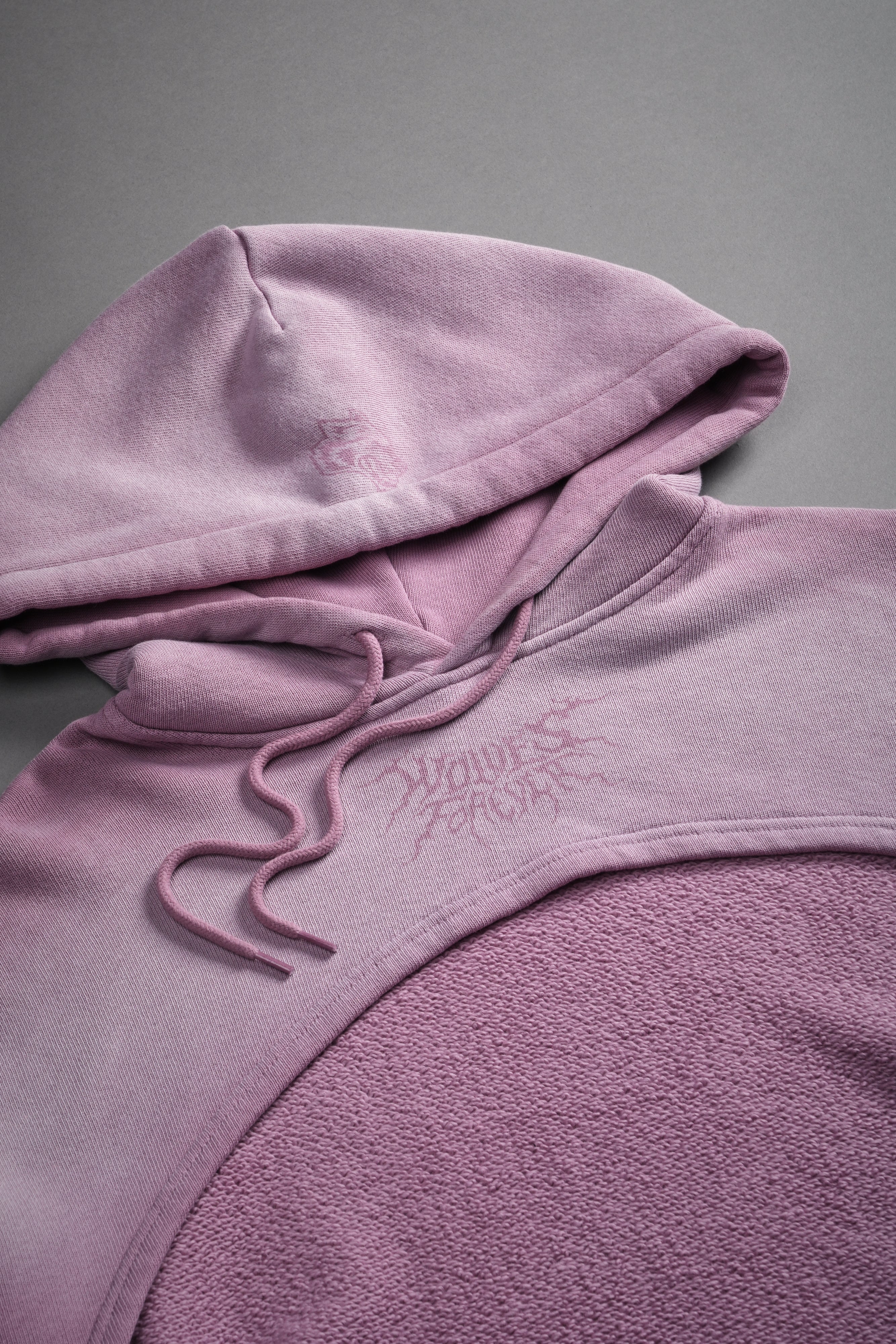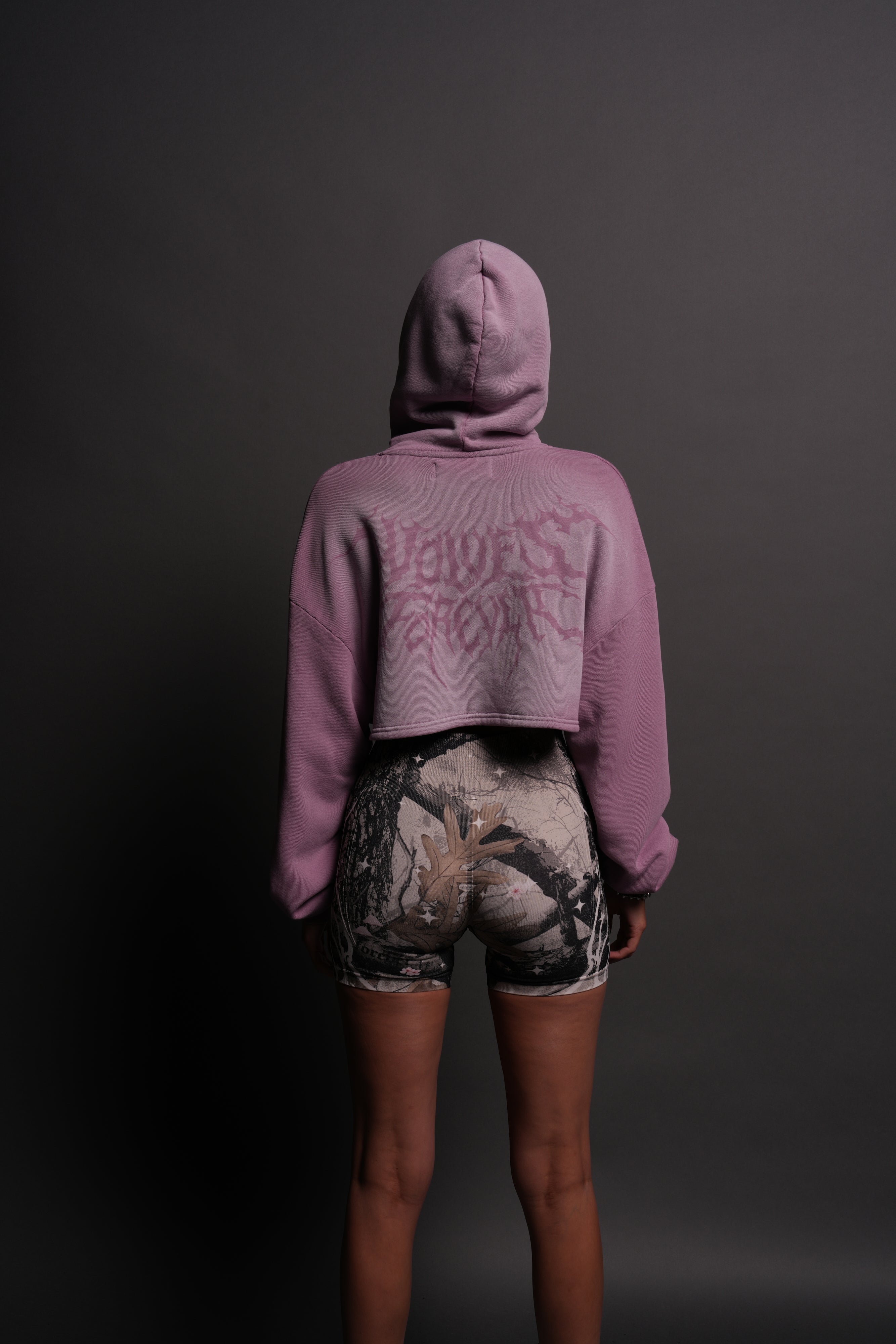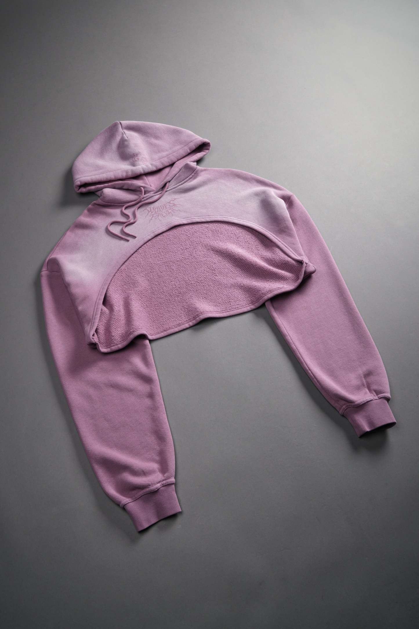 Forged From Iron "Willow" Cropped Hoodie in Pink Smoke Spine Sun Fade