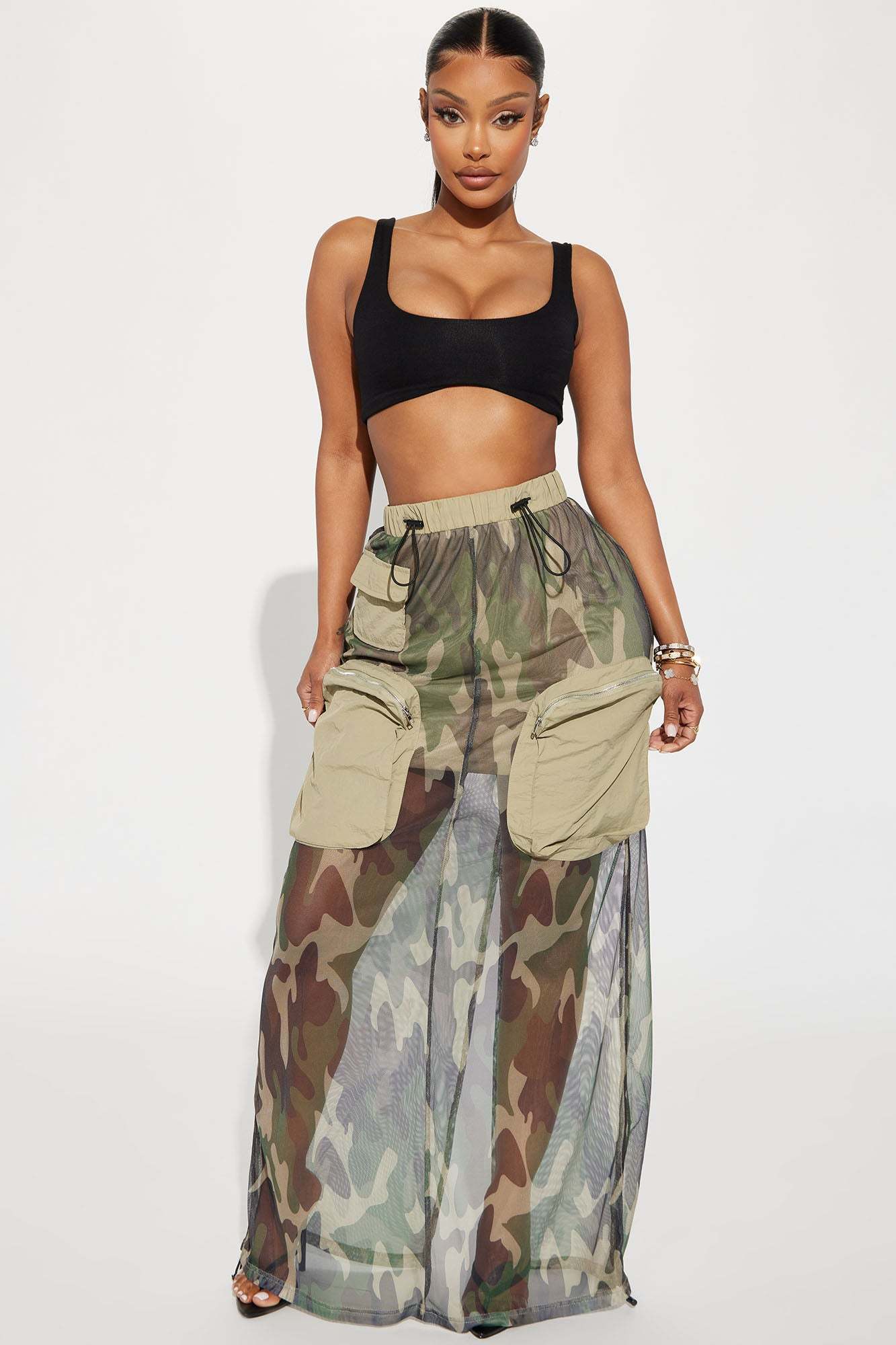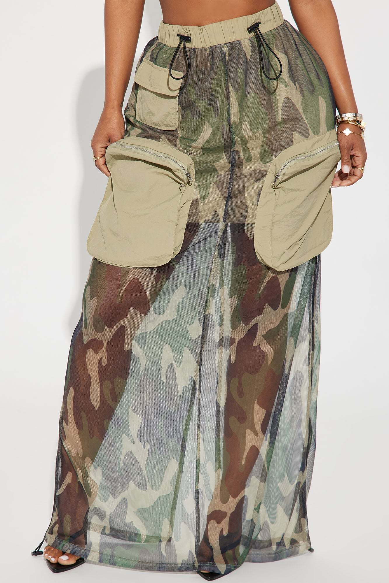 Georgia Camo Mesh Cargo Skirt - Olive/combo