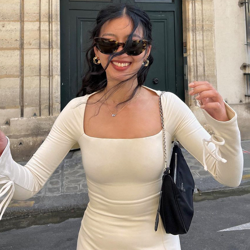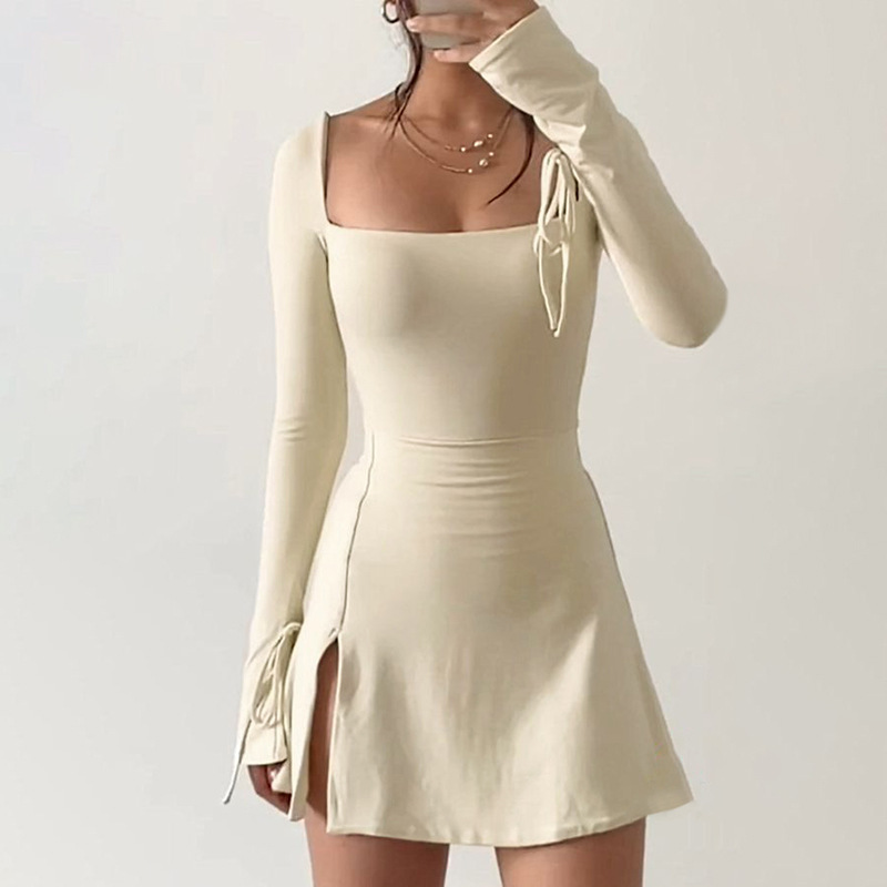 Simple style long-sleeved dress