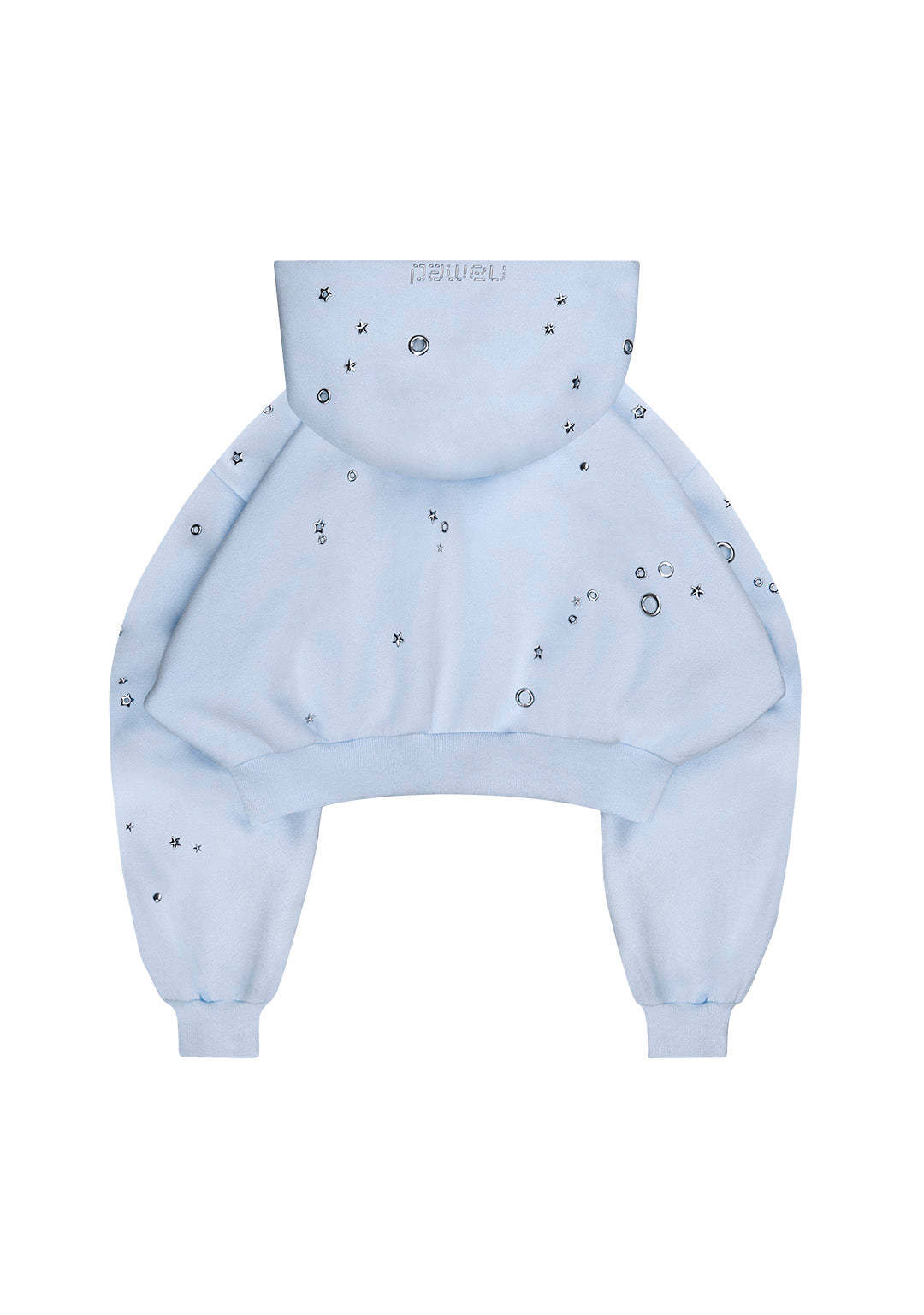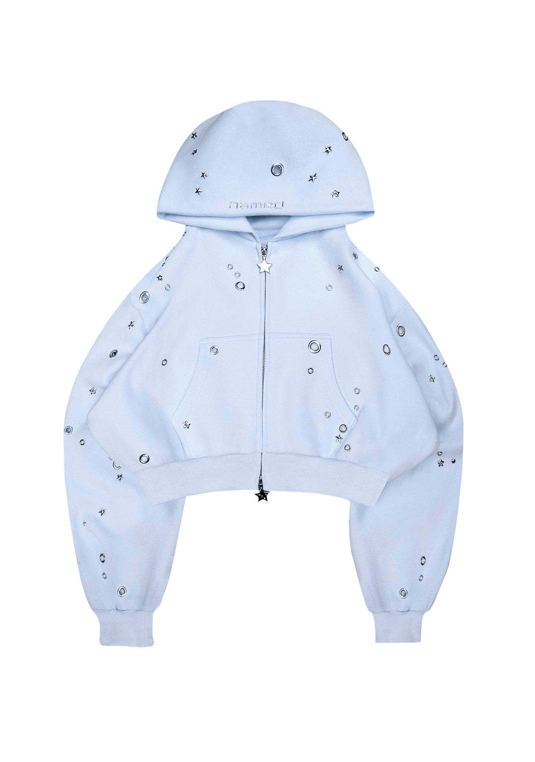GLITCH EYELET CROP ZIP HOODIE BABY BLUE