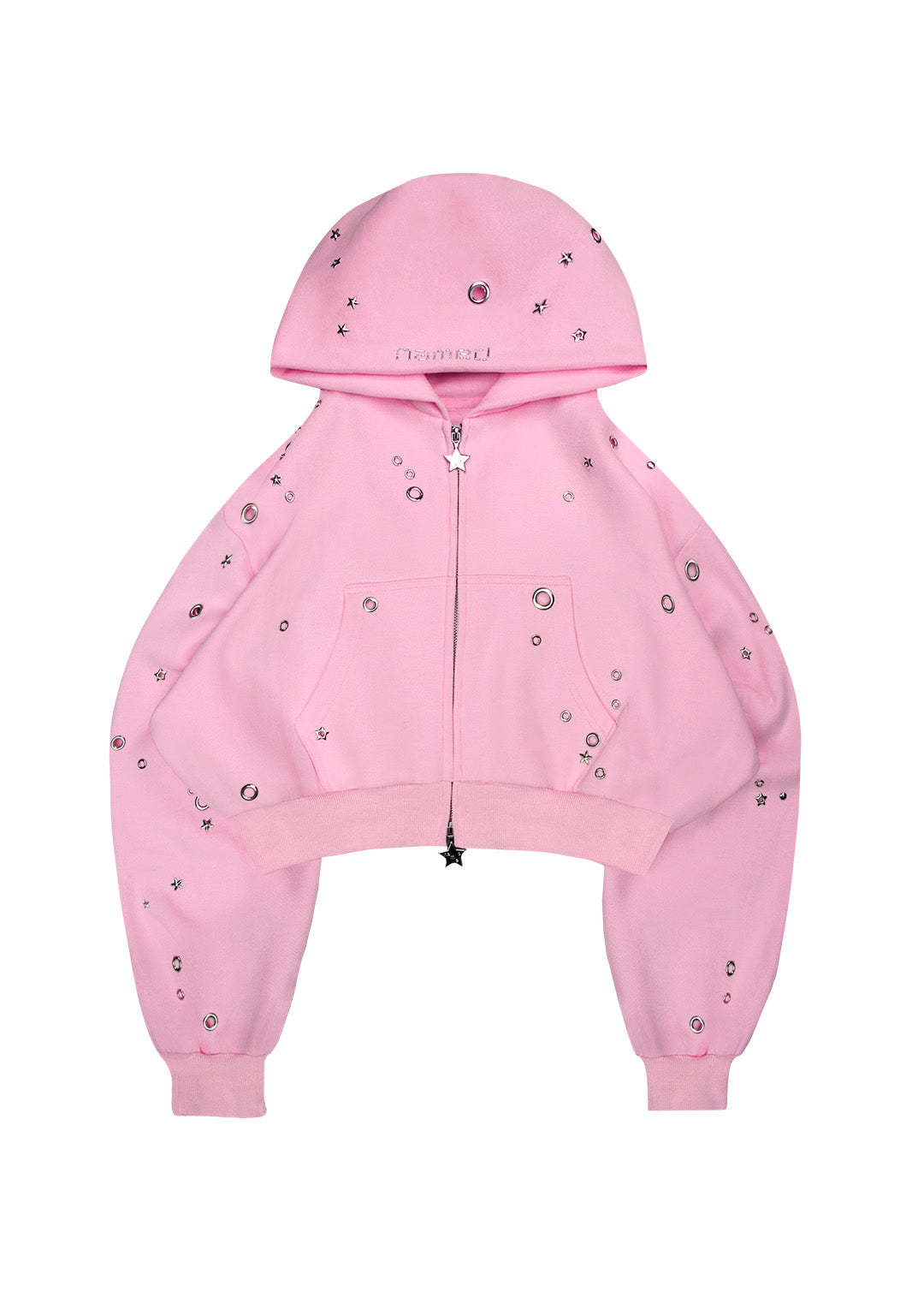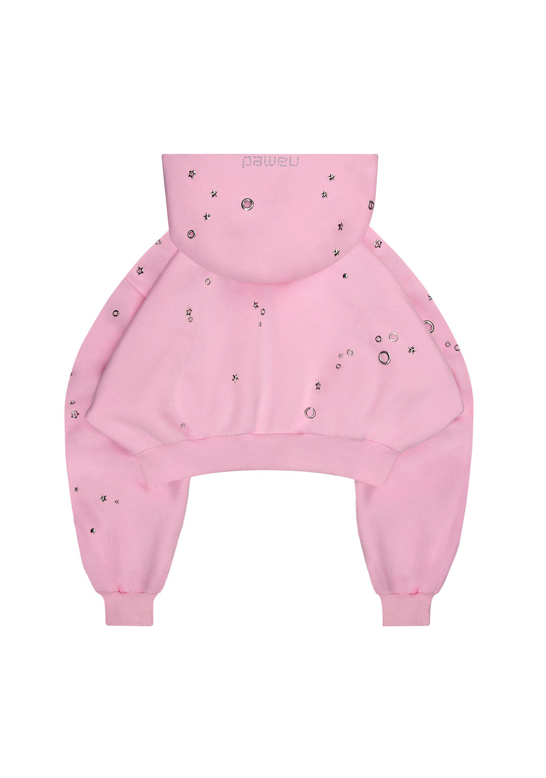 GLITCH EYELET CROP ZIP HOODIE BABY PINK