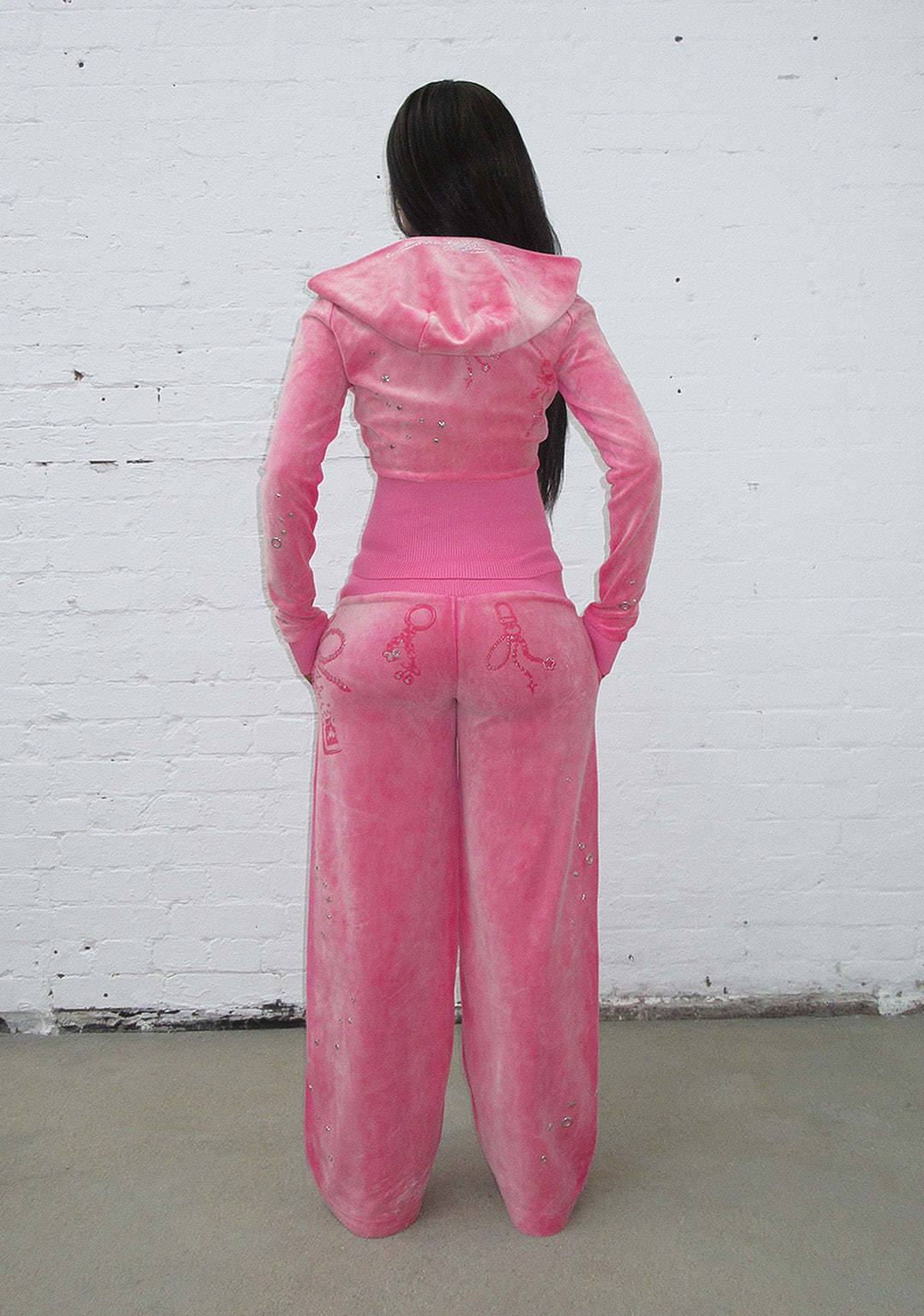 GLITCH EYELET VELOUR SWEATPANTS WASHED HOT PINK