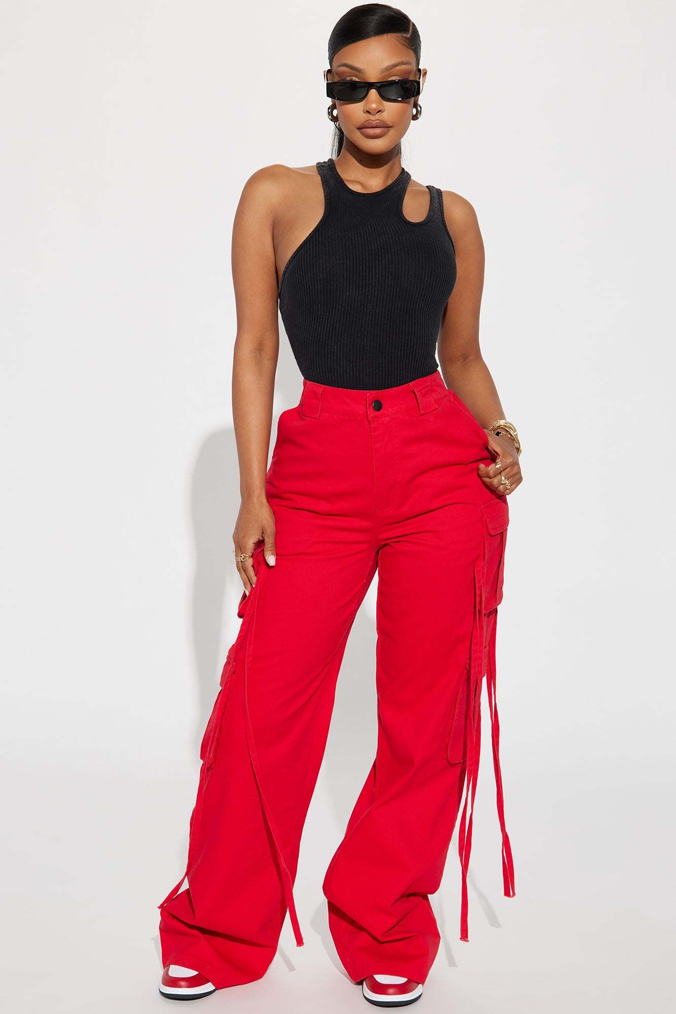 Golden Hour Wide Leg Cargo Pant - Red