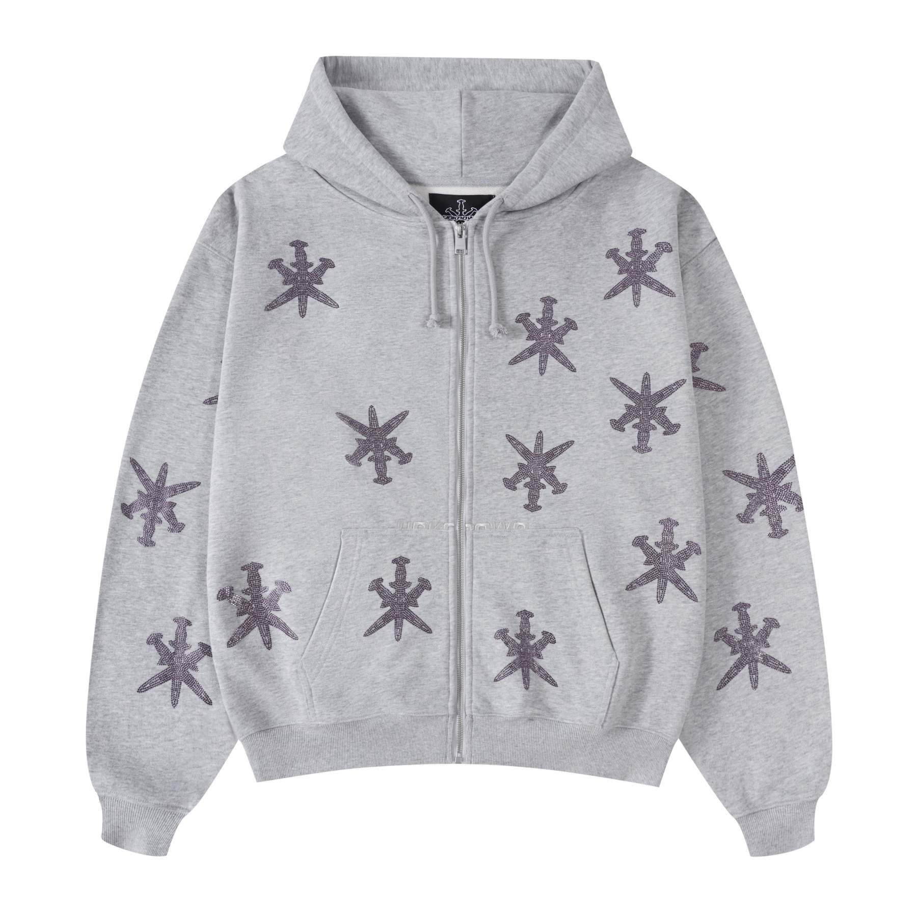 GREY PURPLE RHINESTONE HOODIE