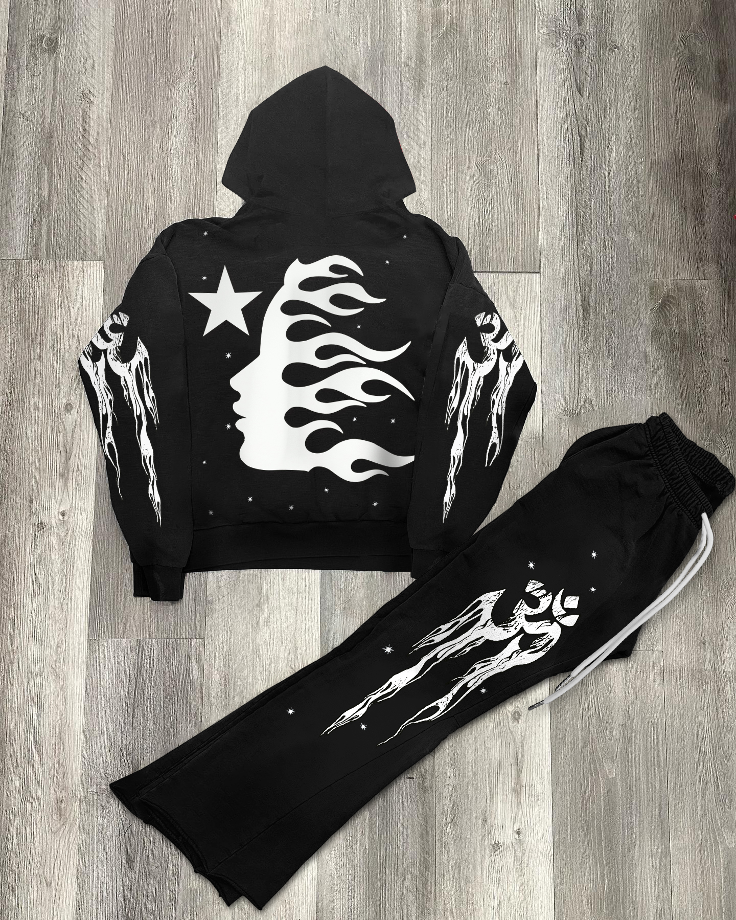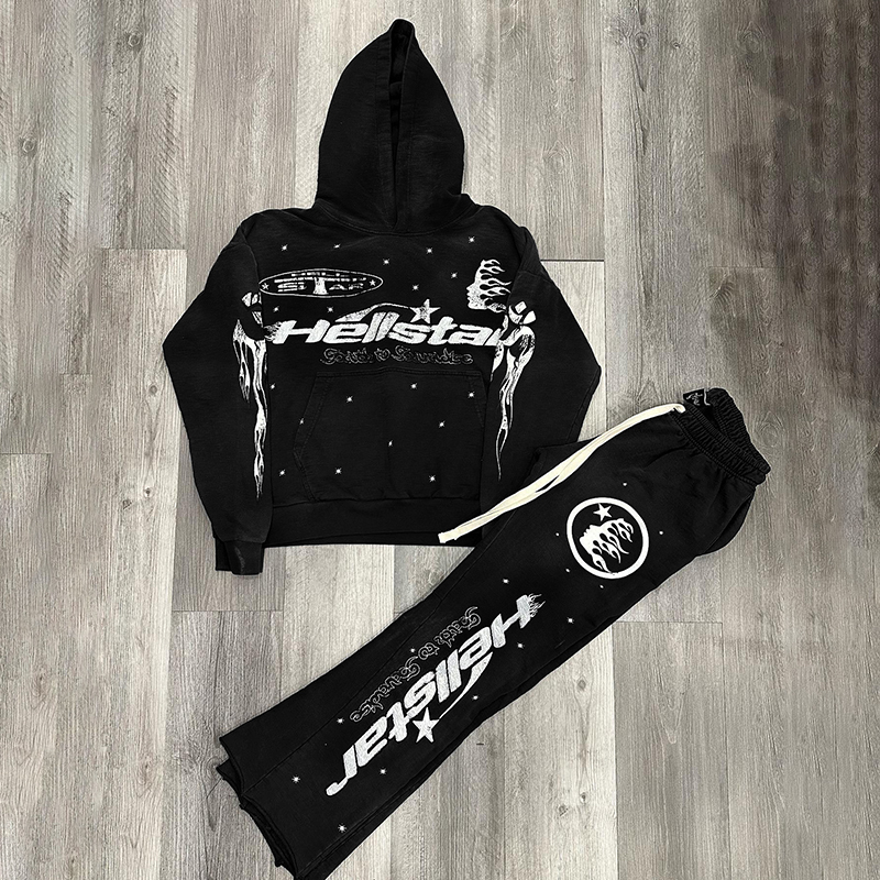 Hellstar Graphic Black Pullover Hoodie Tracksuit & Flared Sweatpants