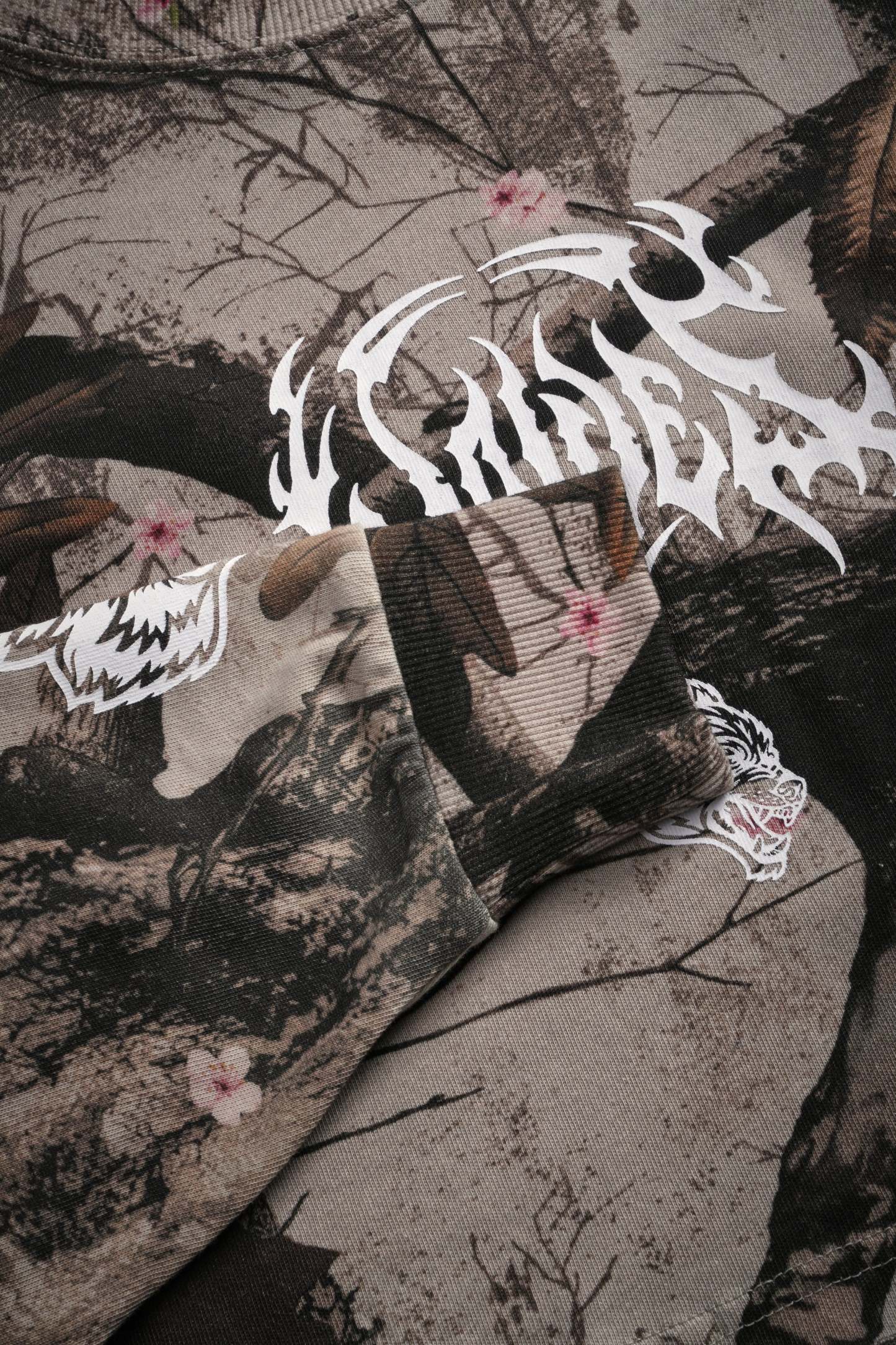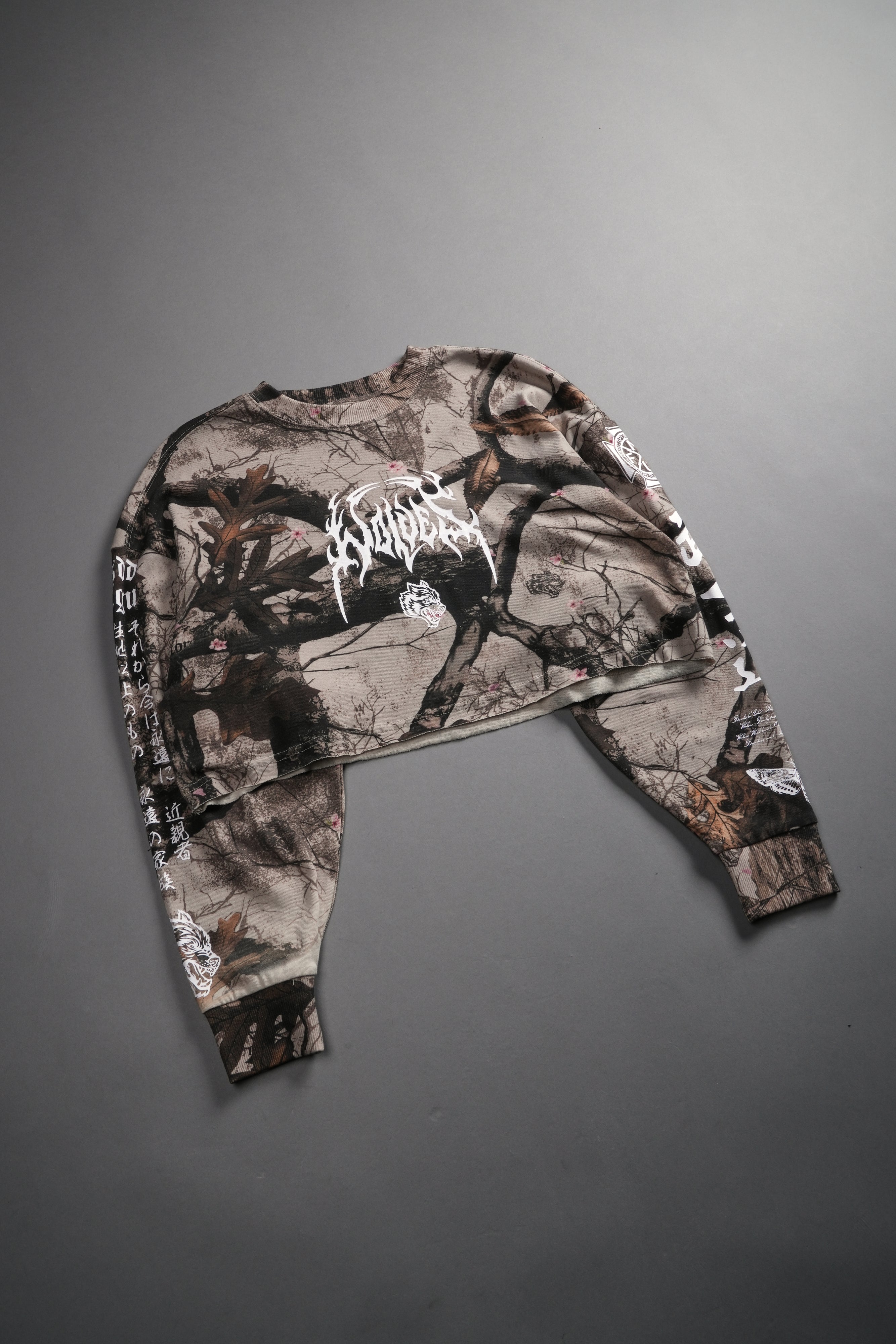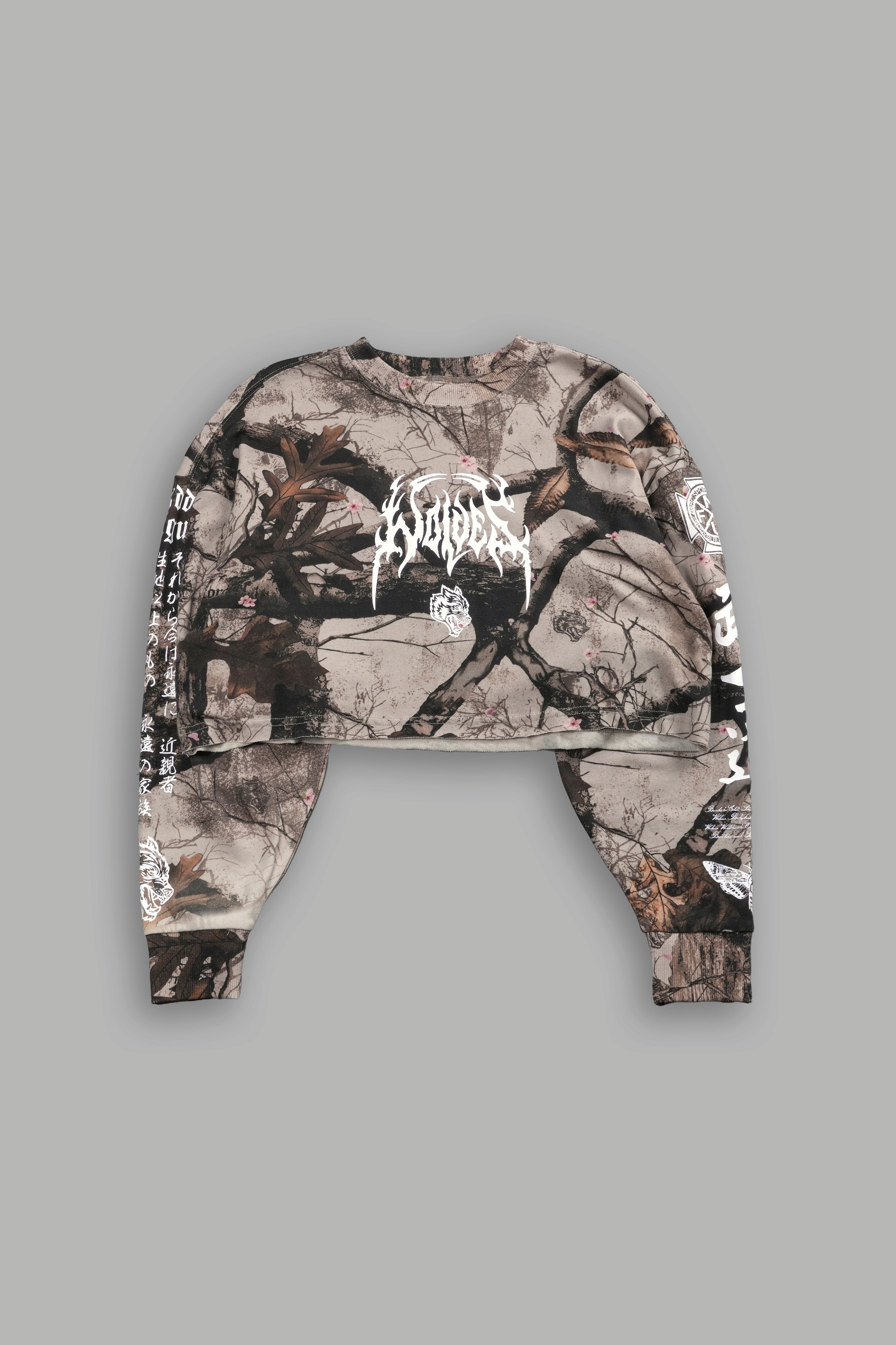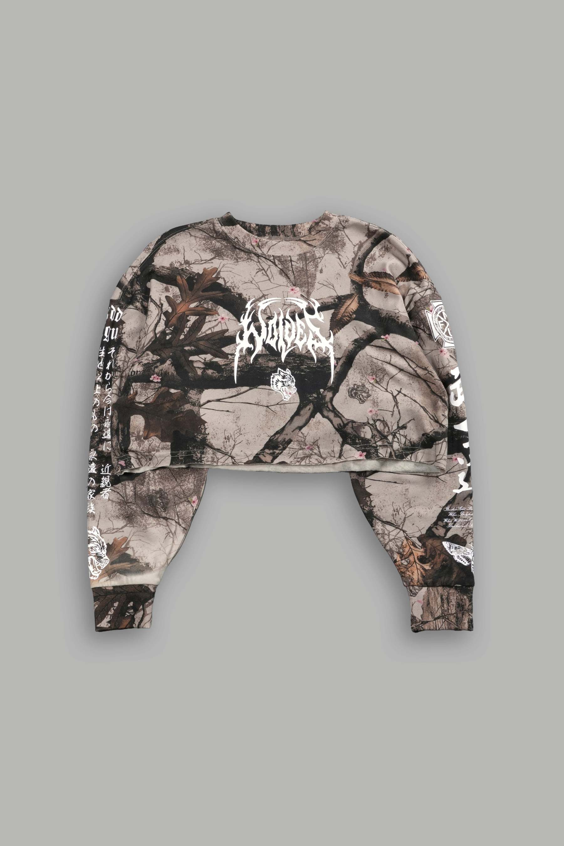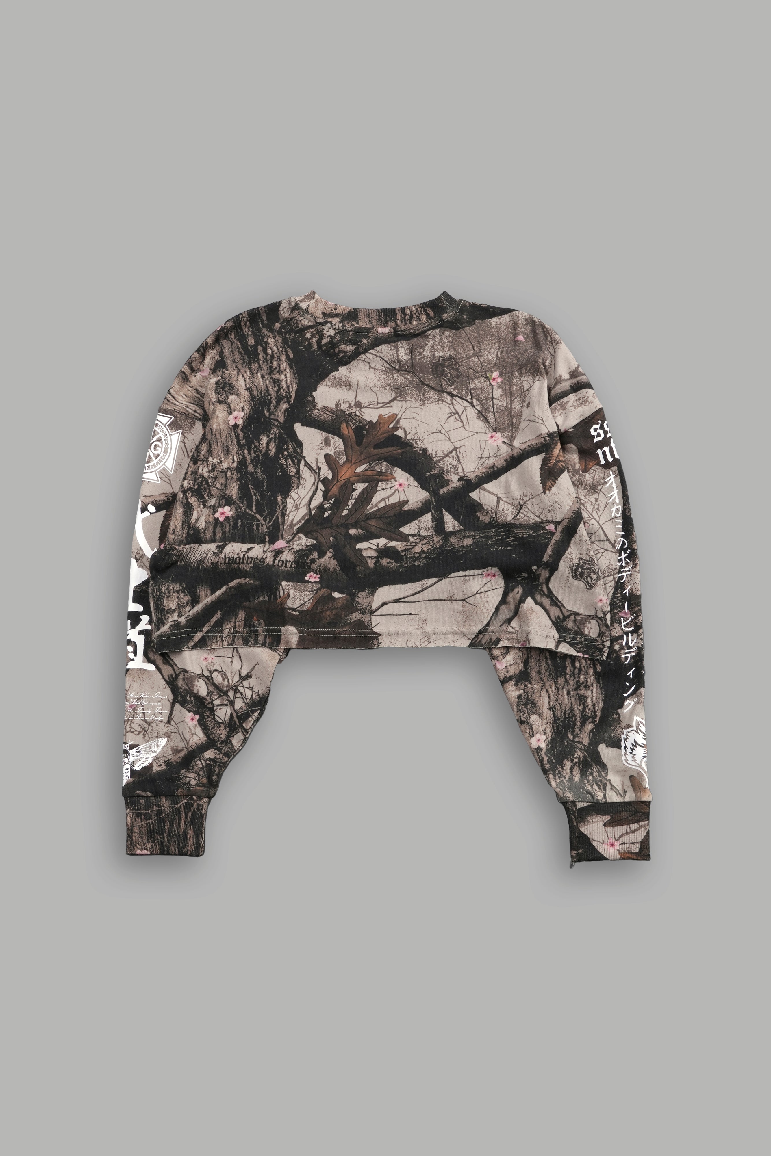 Hesh Kanji "Premium" Oversized Cropped L/S Tee in Cherry Blossom Woodland Camo