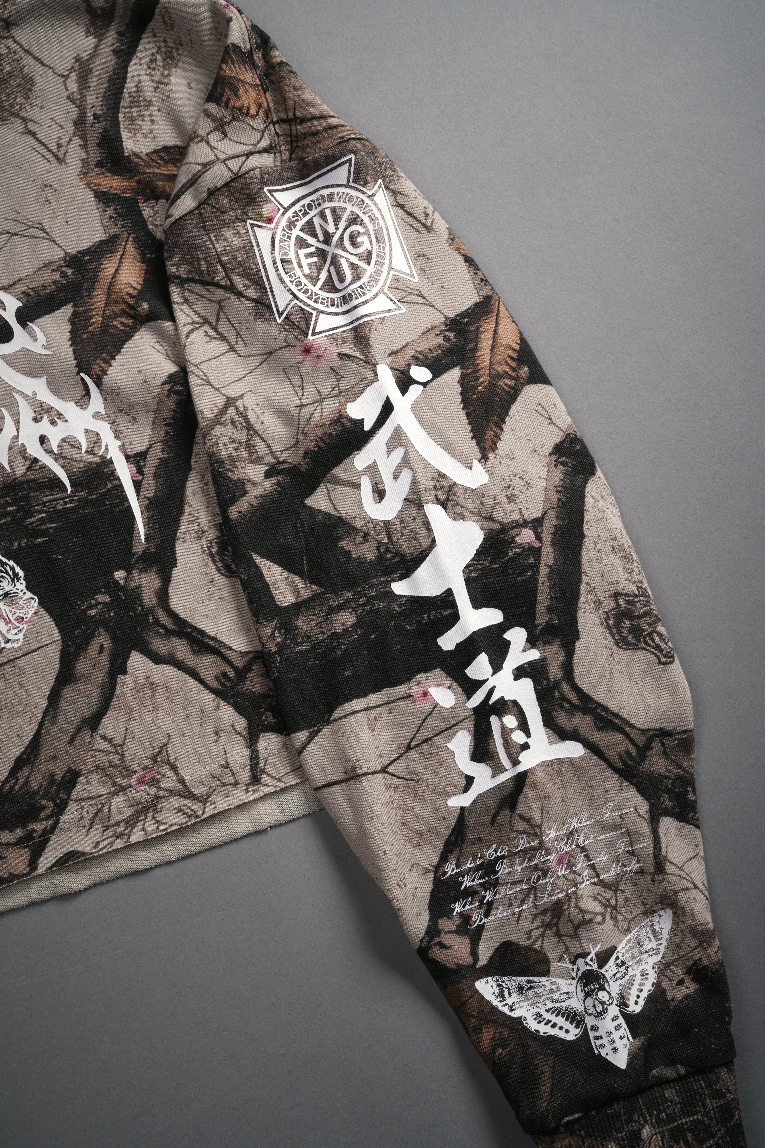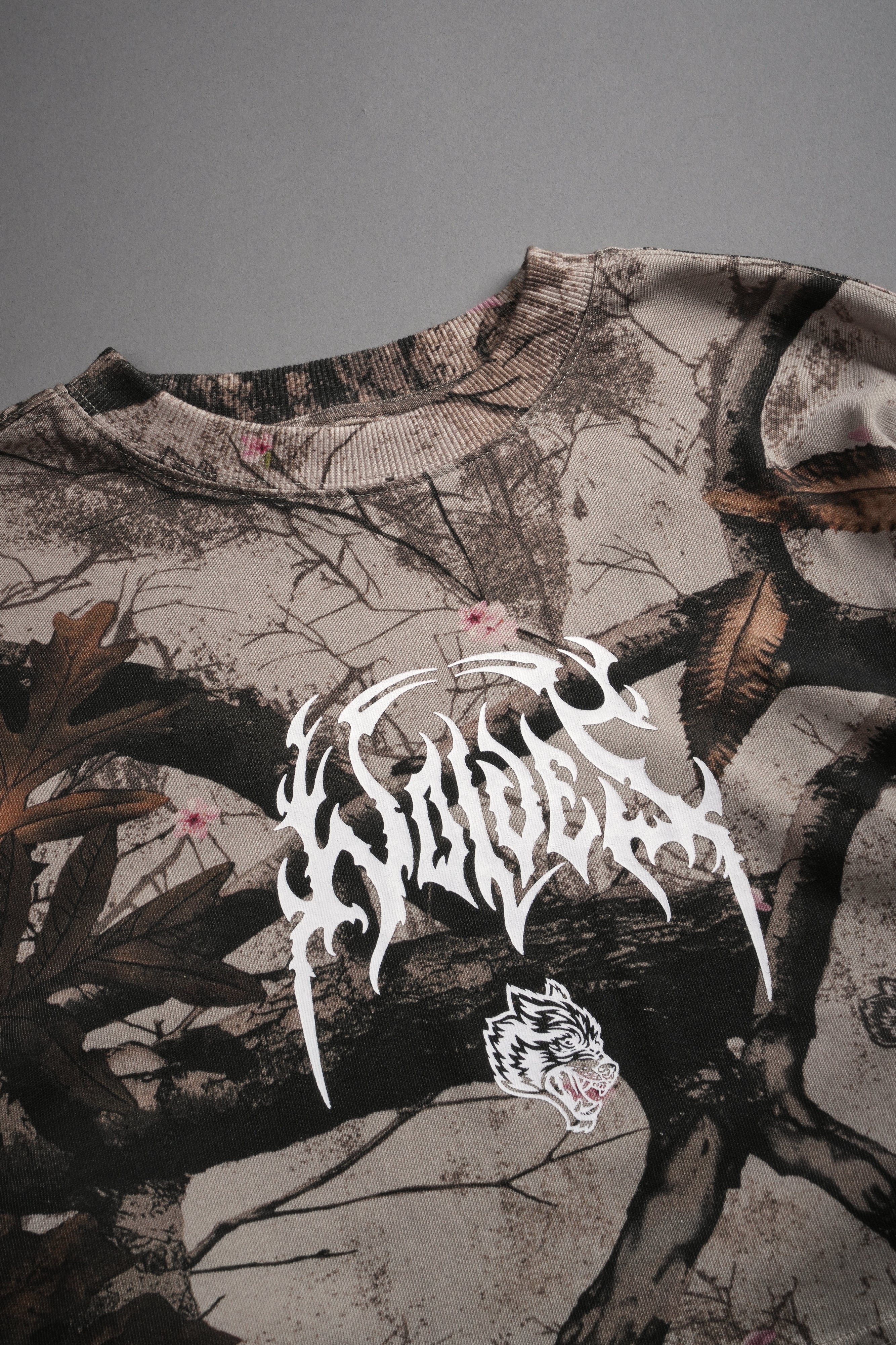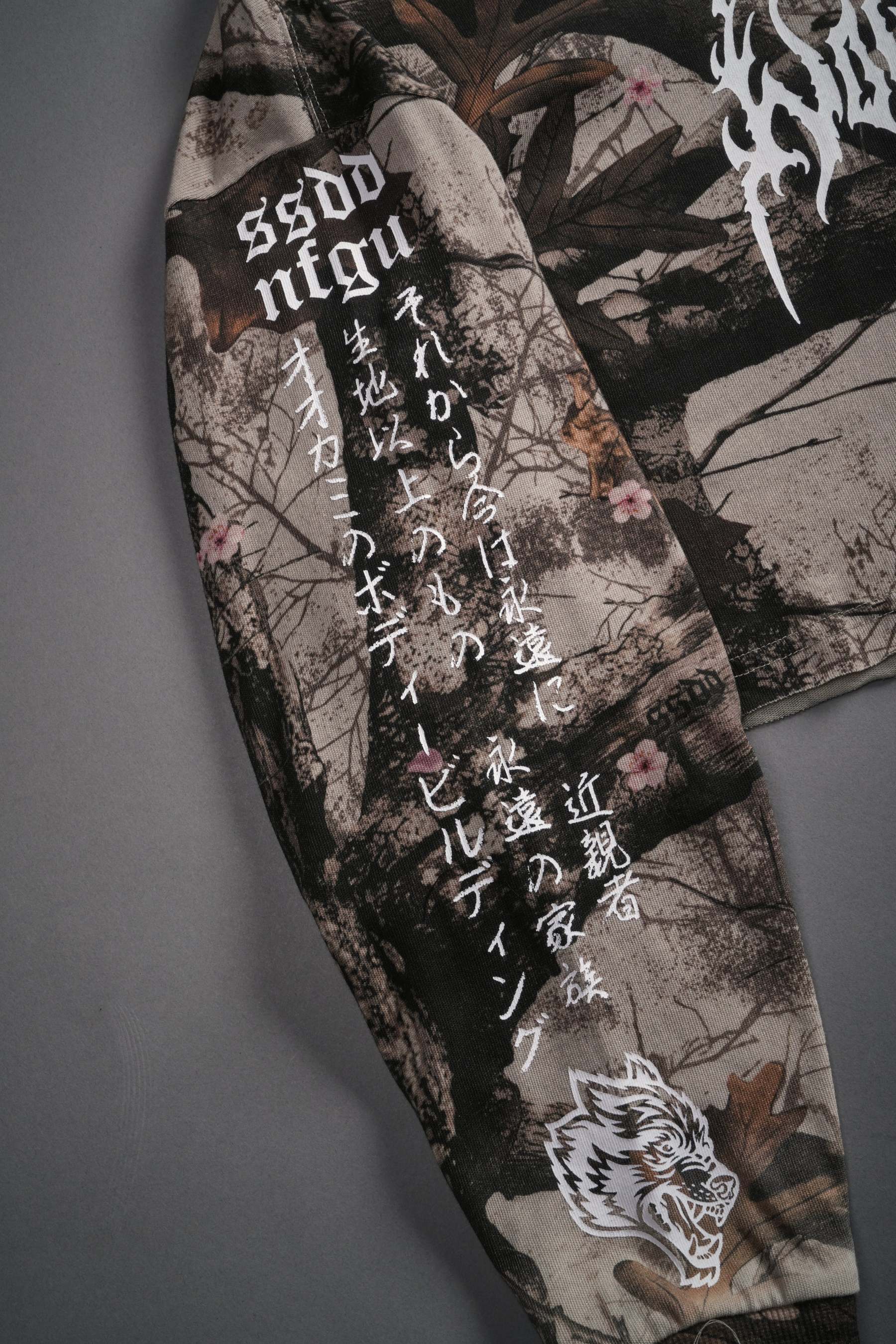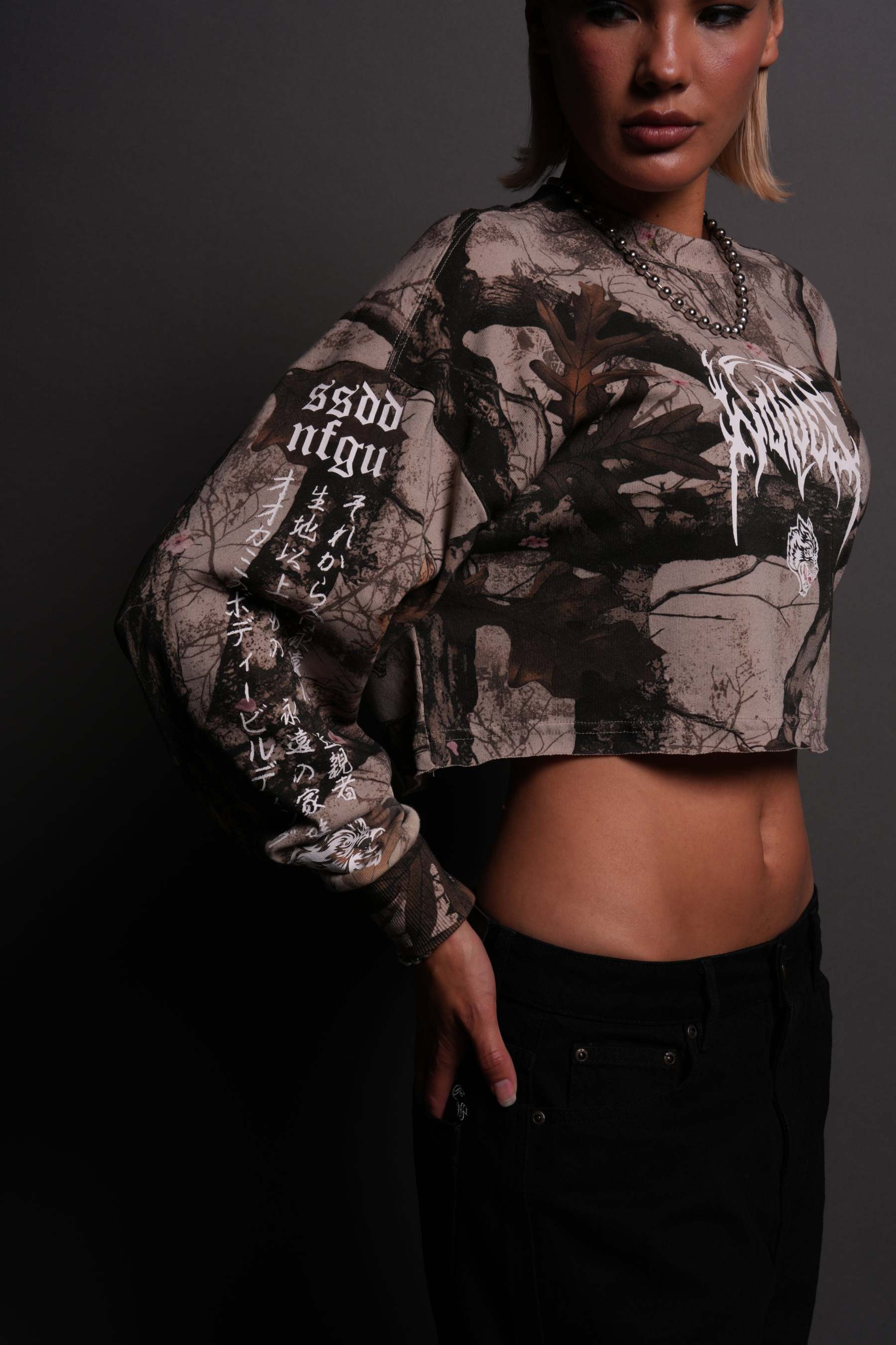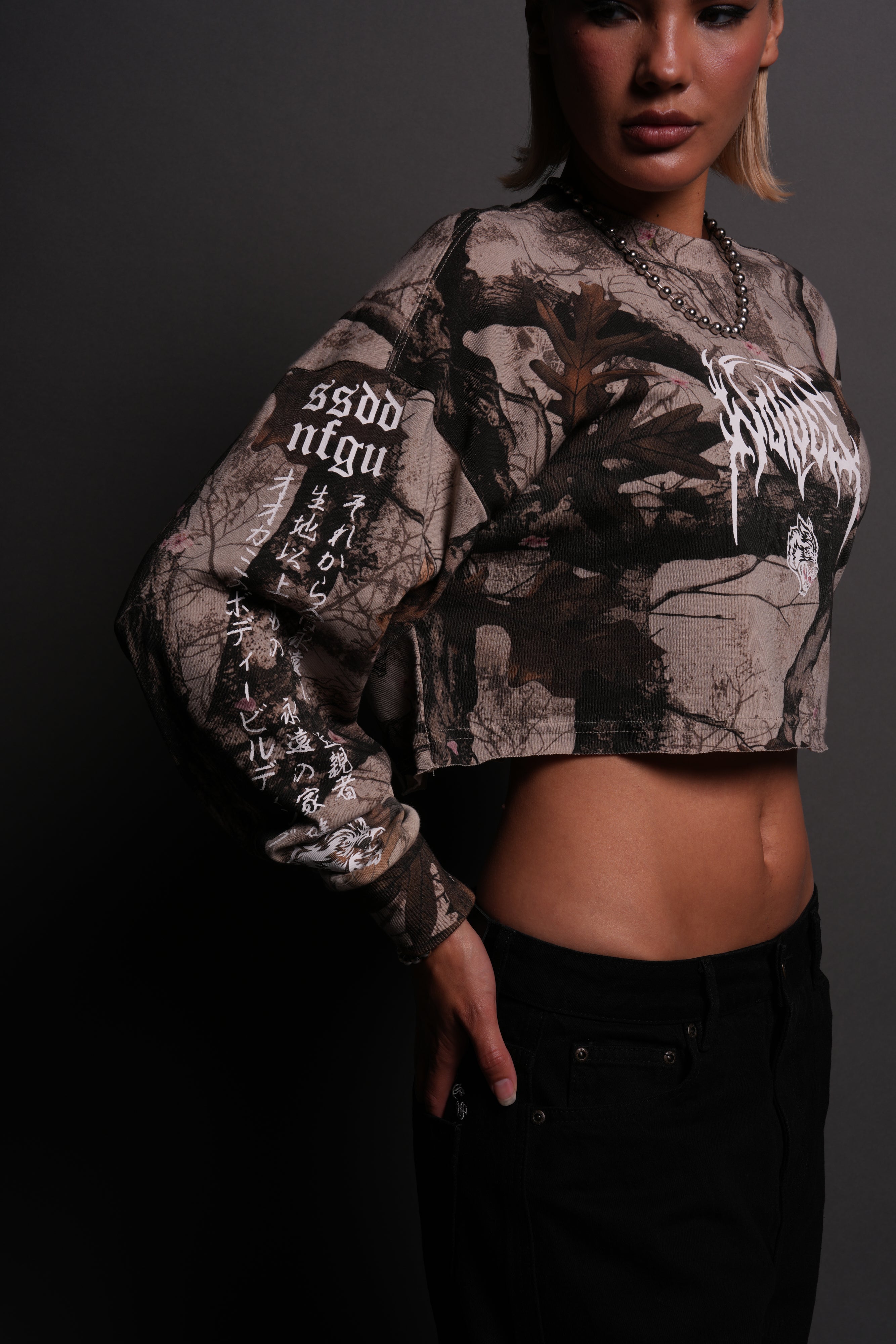 Hesh Kanji "Premium" Oversized Cropped L/S Tee in Cherry Blossom Woodland Camo