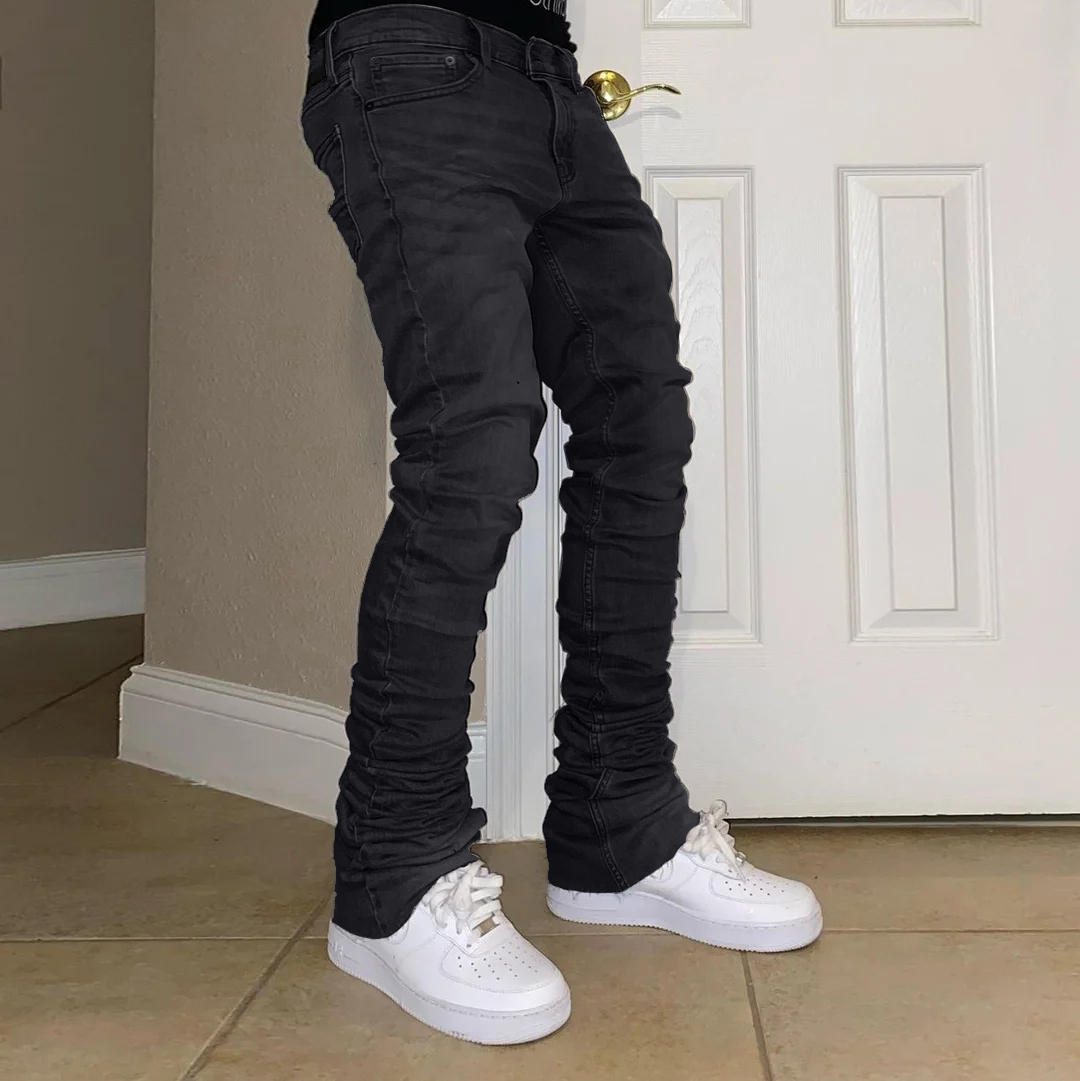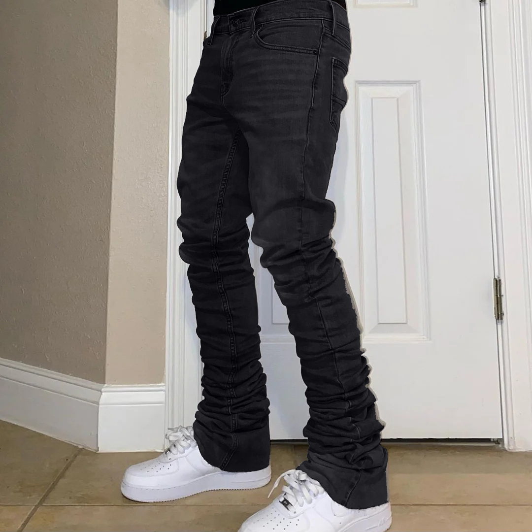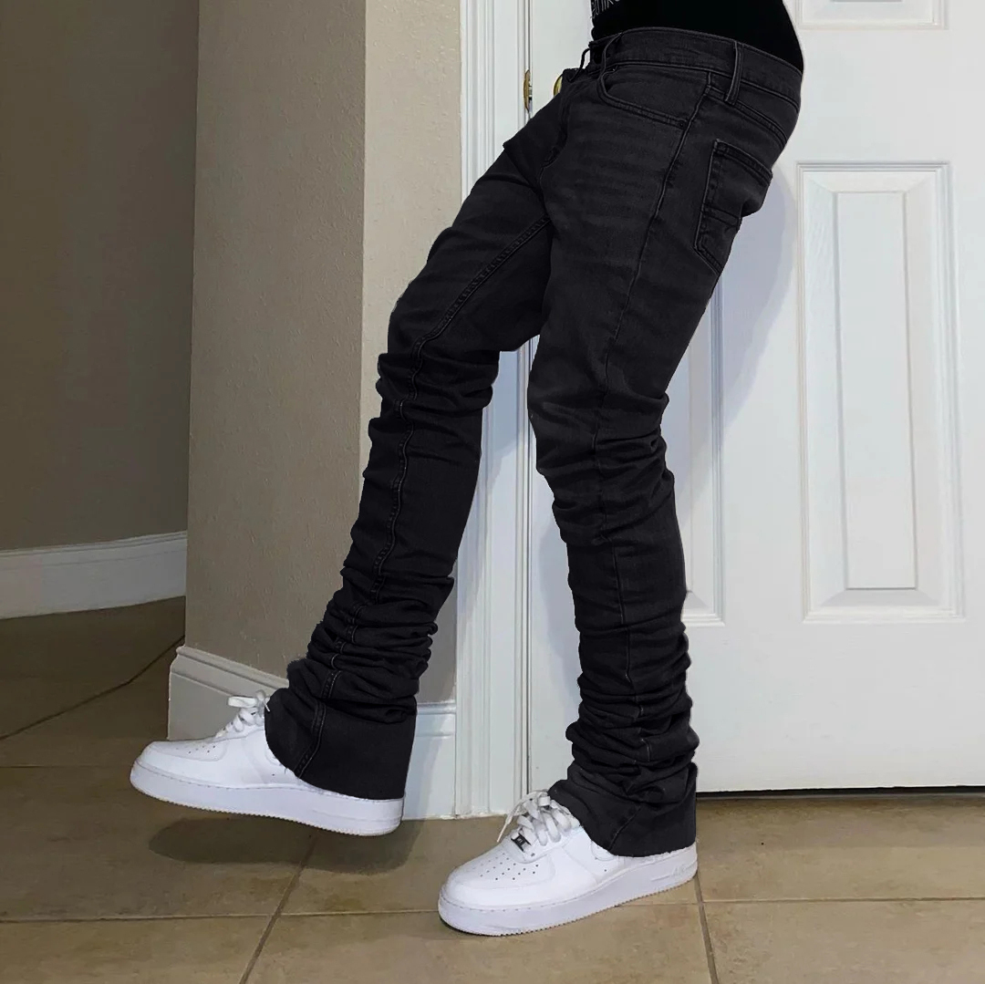 Hip Hop Retro Stretch Slim Wide Leg Raw Trim Flared Jeans