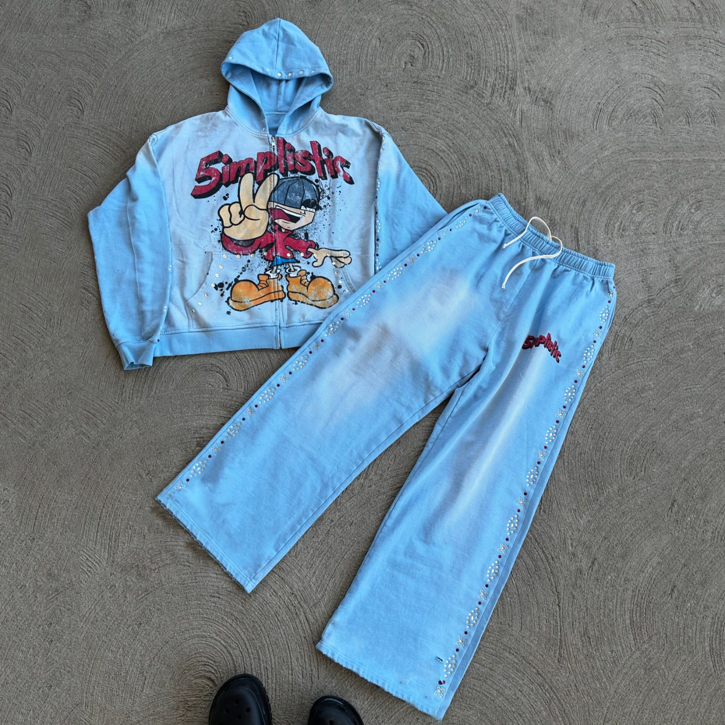 Hip Hop Street Zipper Hoodie Pants Two-Piece Set