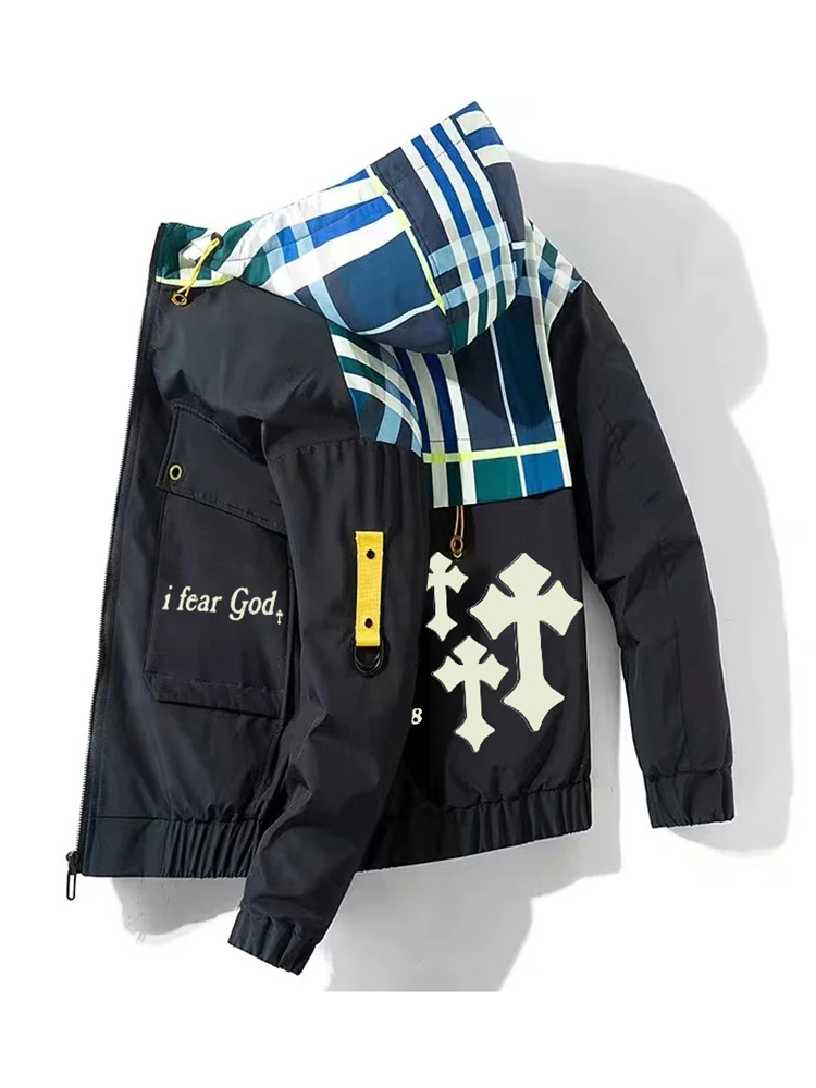 I Fear God Cross Print Plaid Punk Jacket