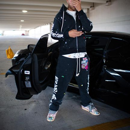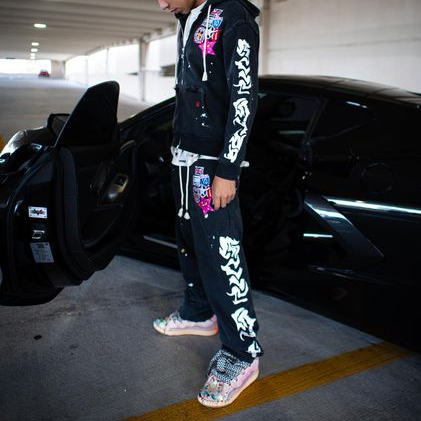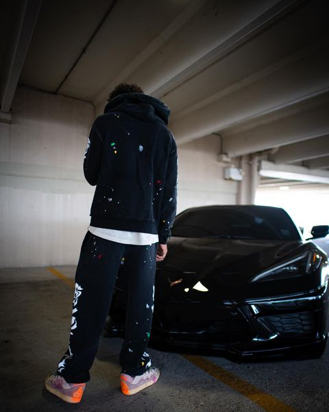 Ink-splashed print hoodie and casual pants set