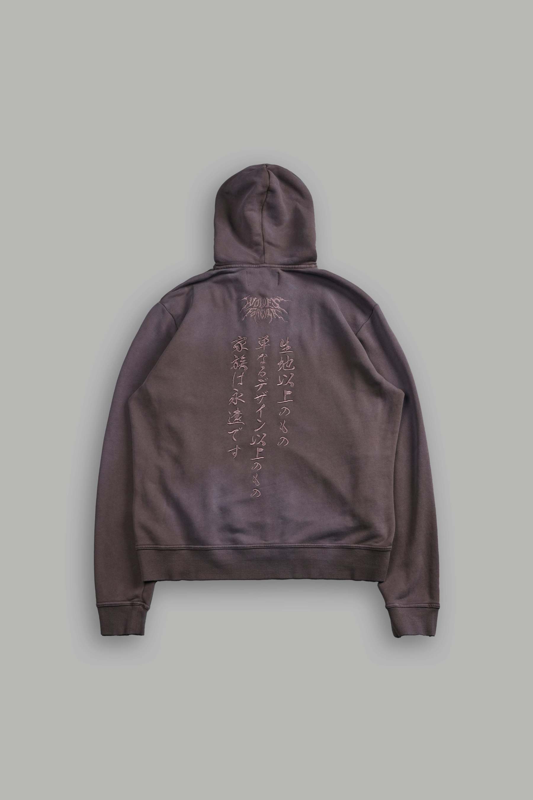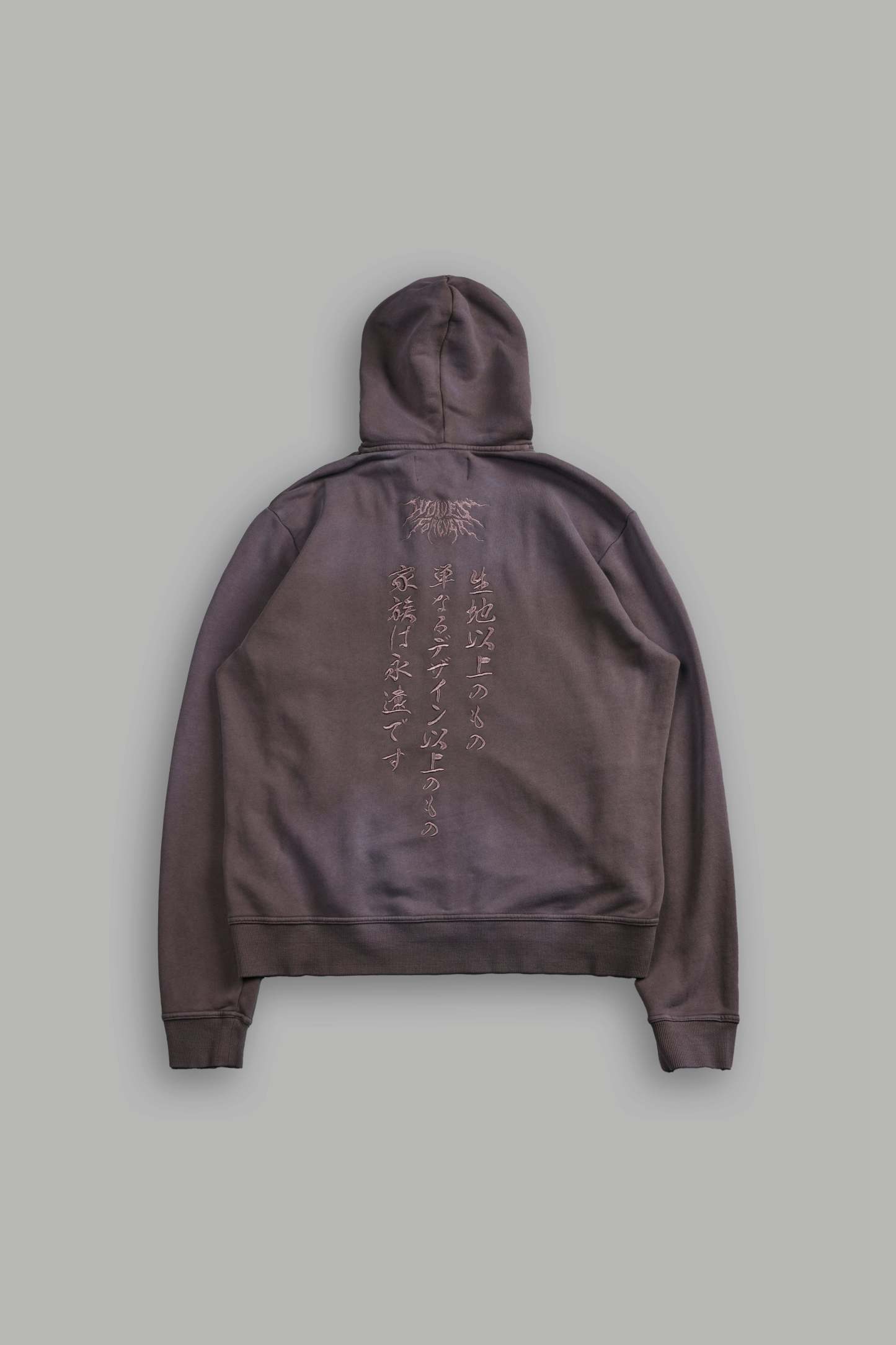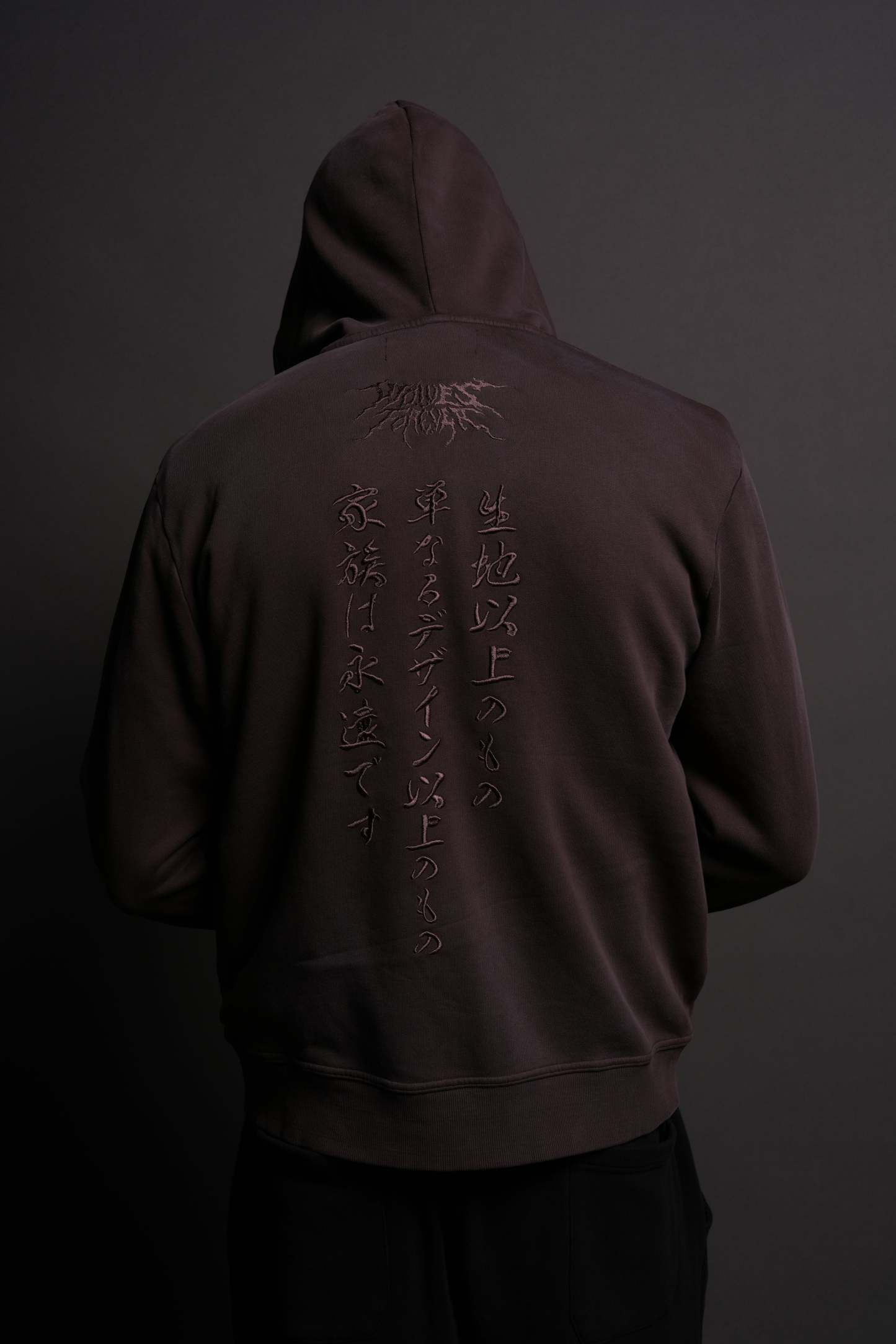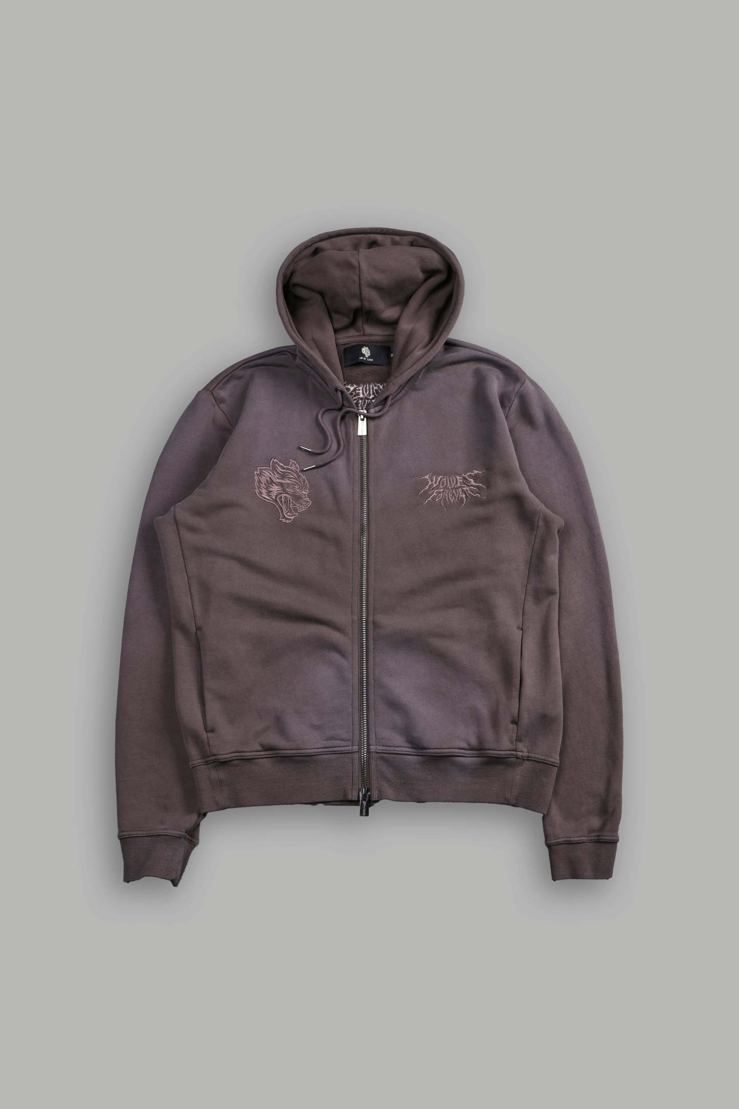 Iron Kanji Donnie "Zip Up" Hoodie in Darc Brown Driftwash