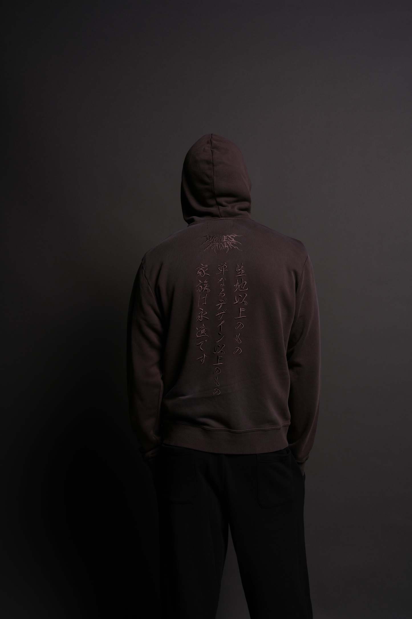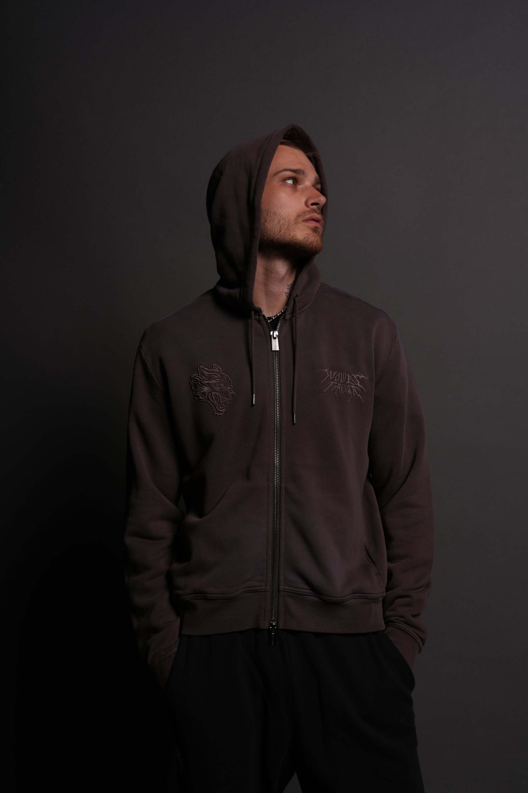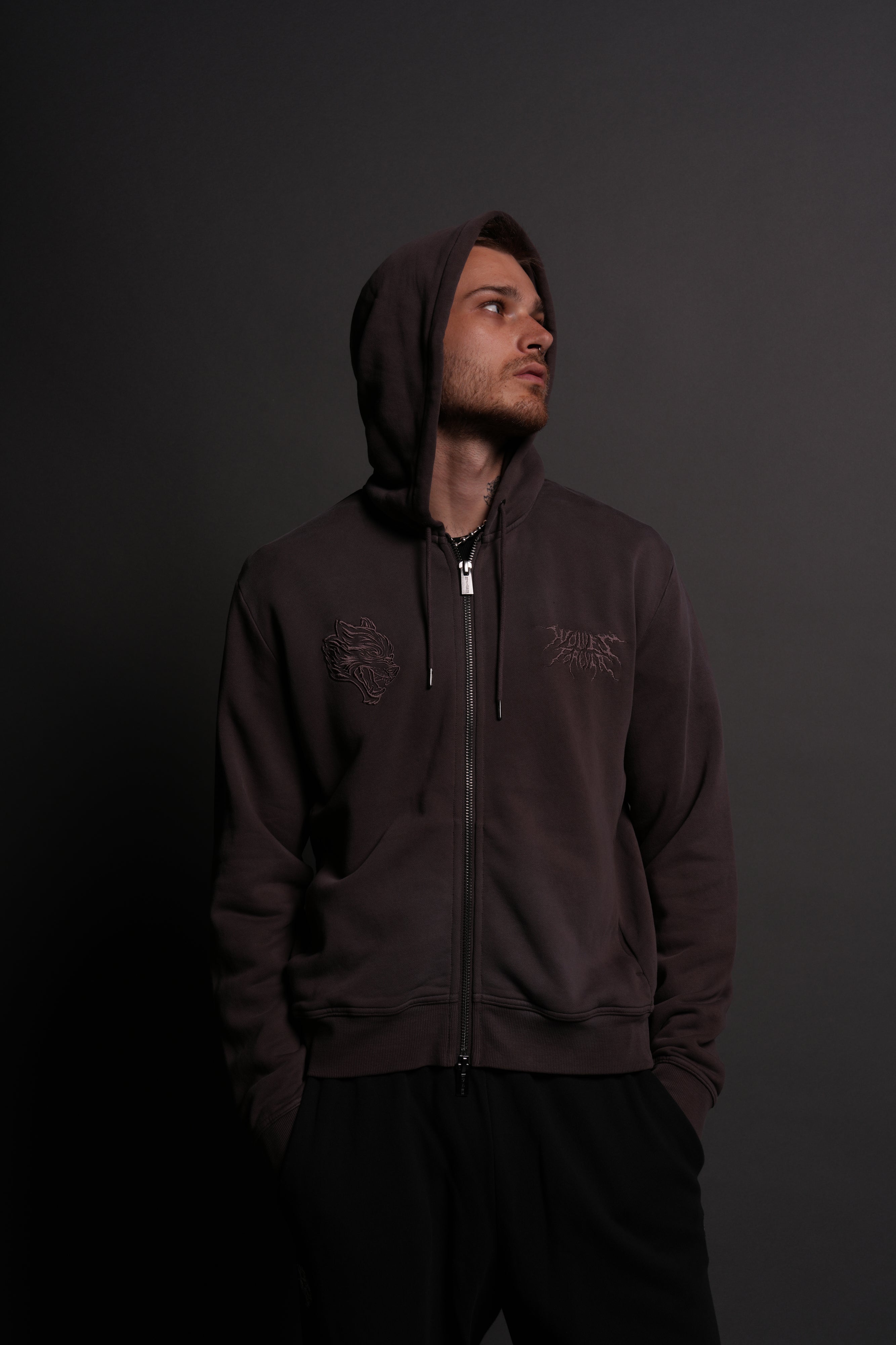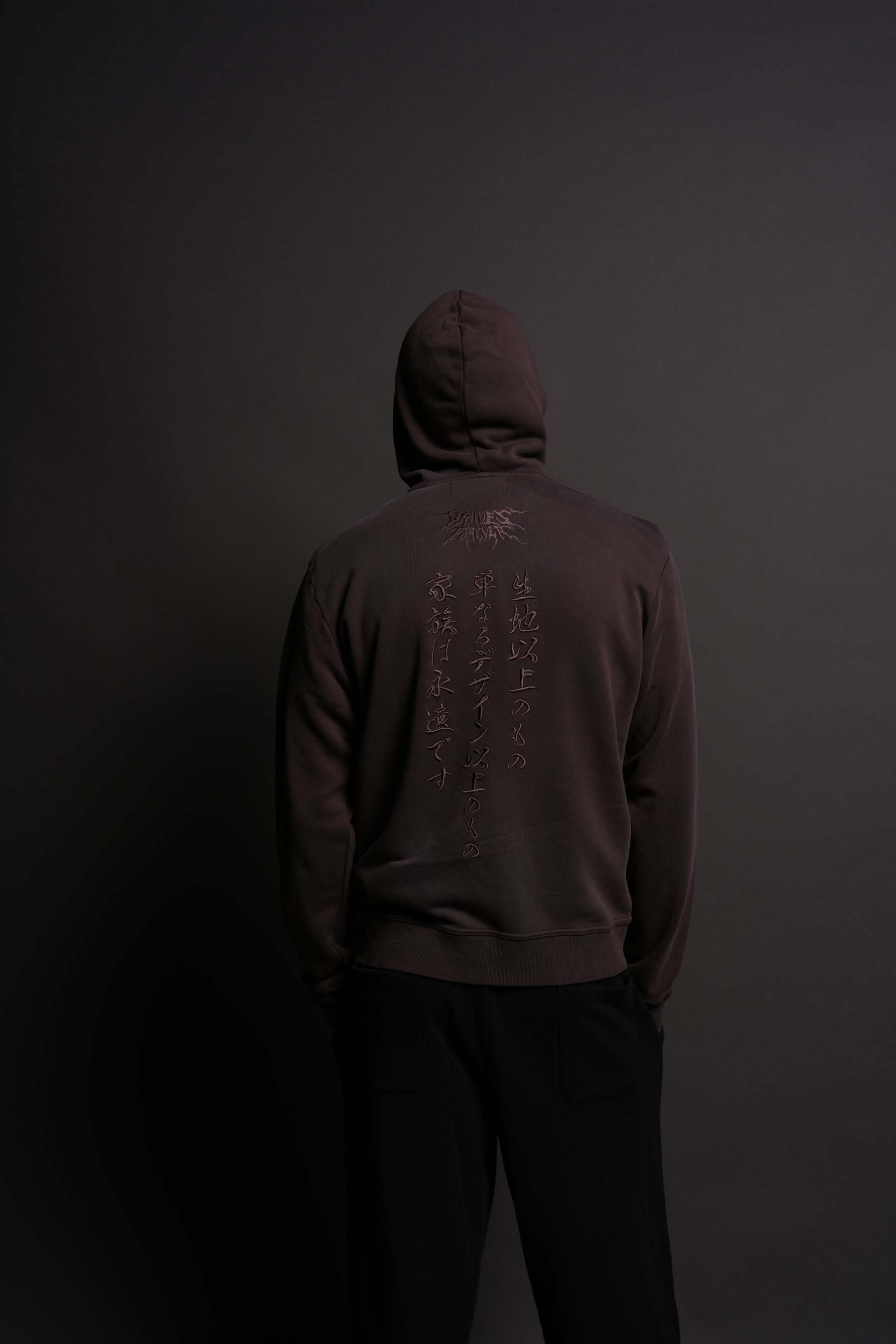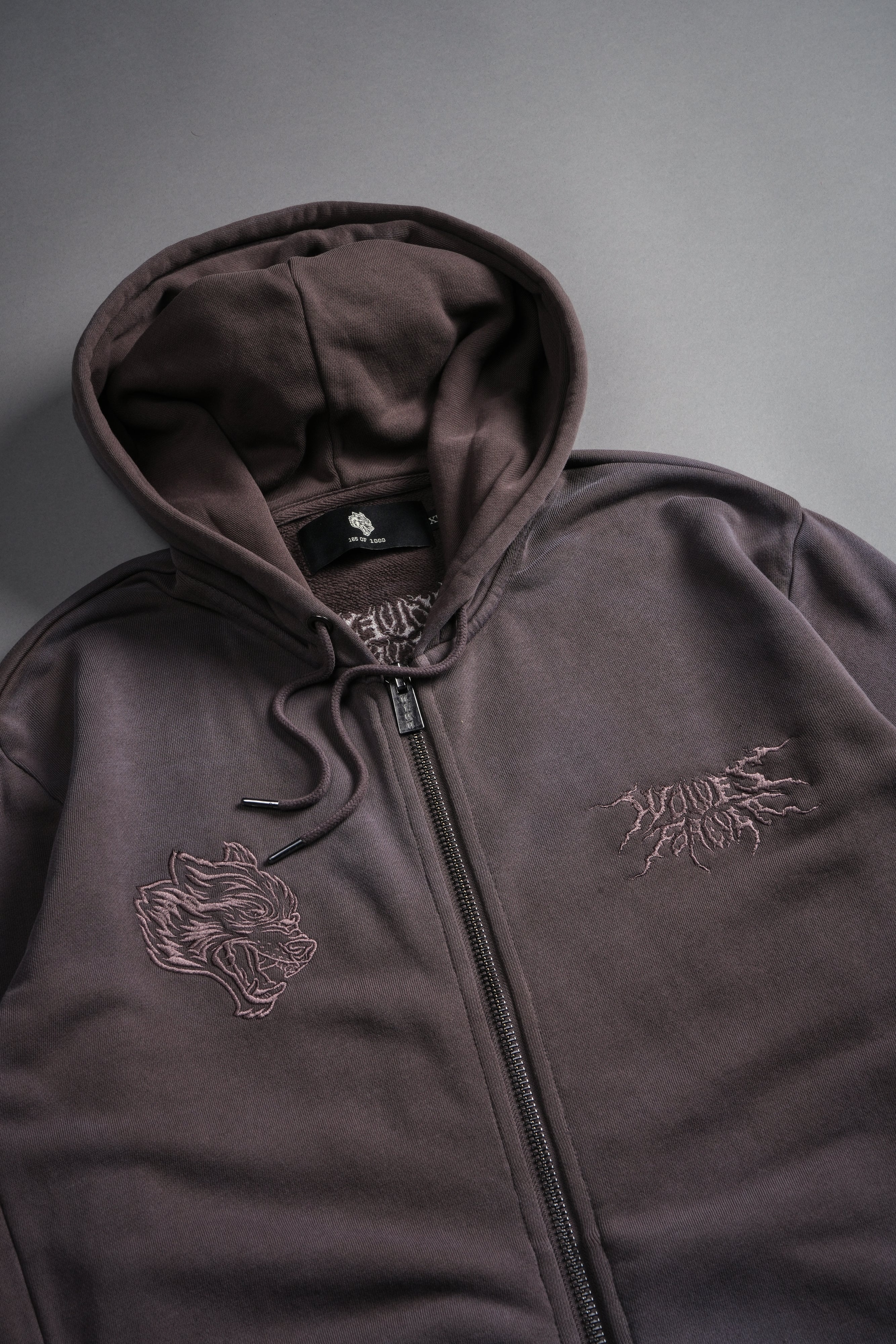 Iron Kanji Donnie "Zip Up" Hoodie in Darc Brown Driftwash