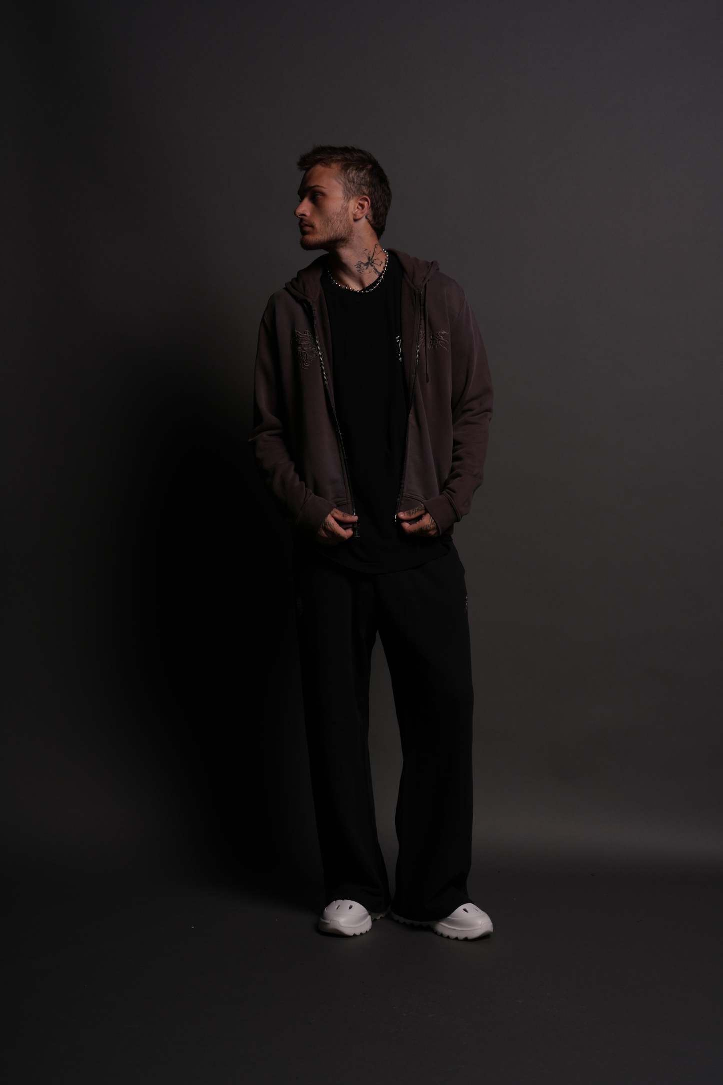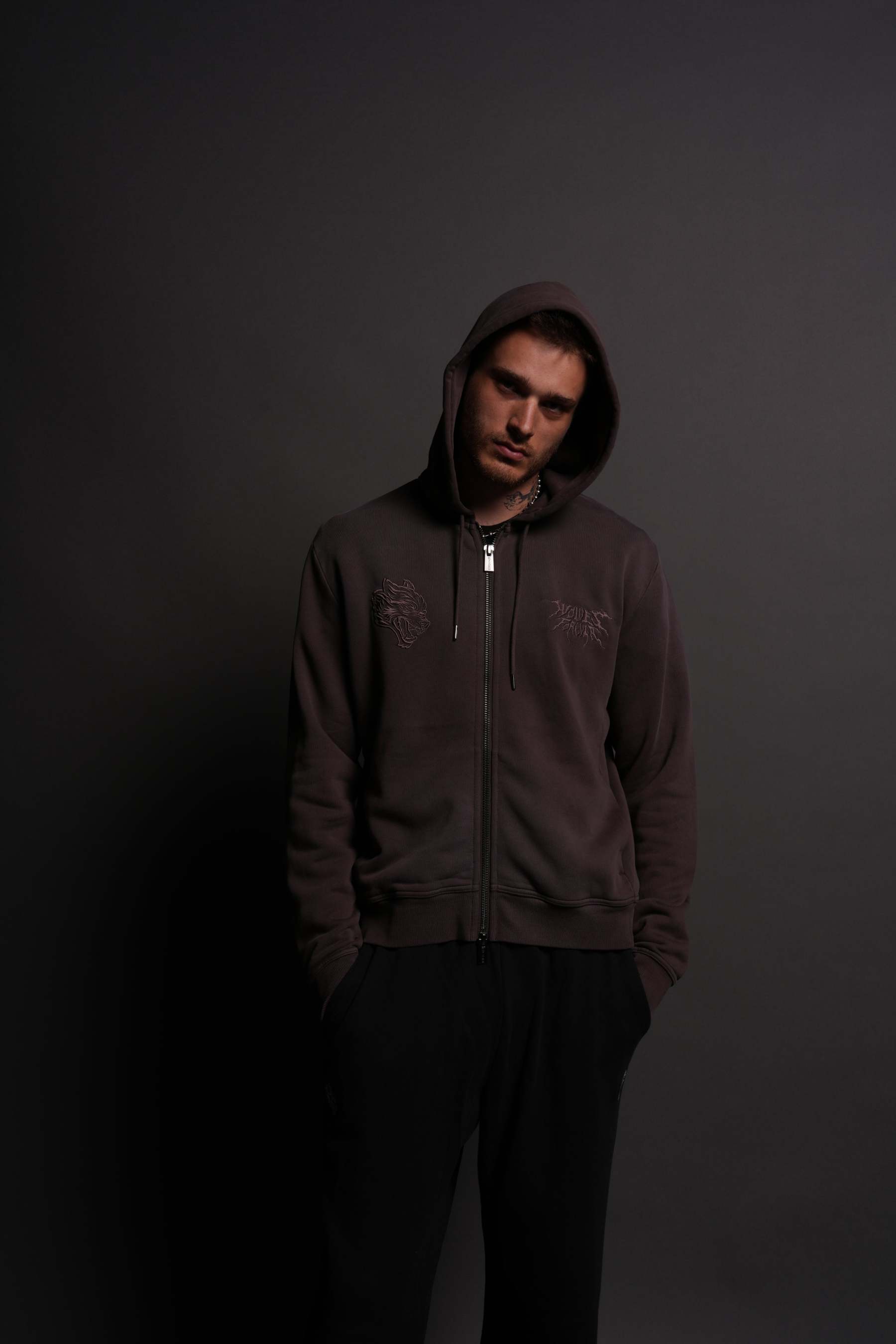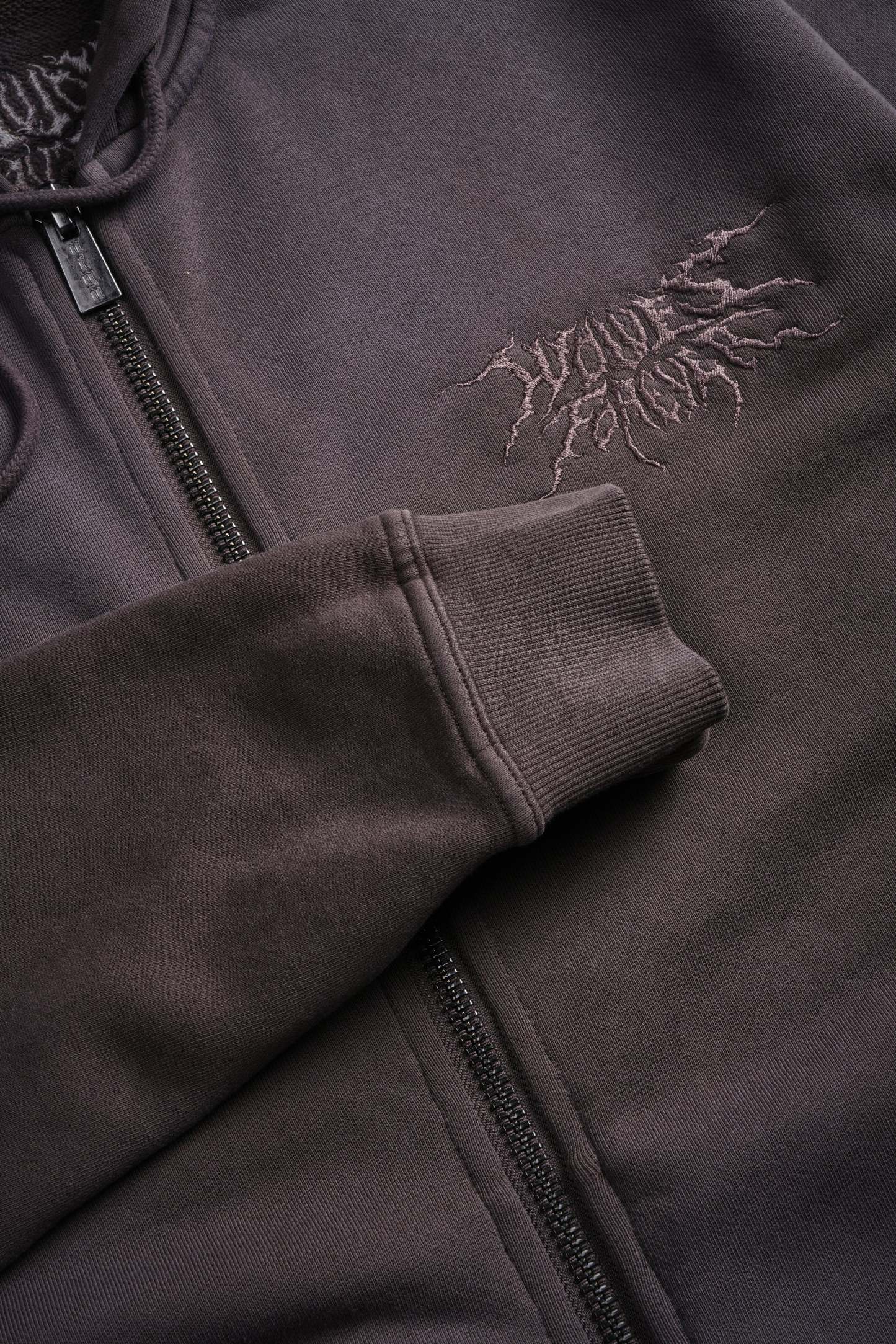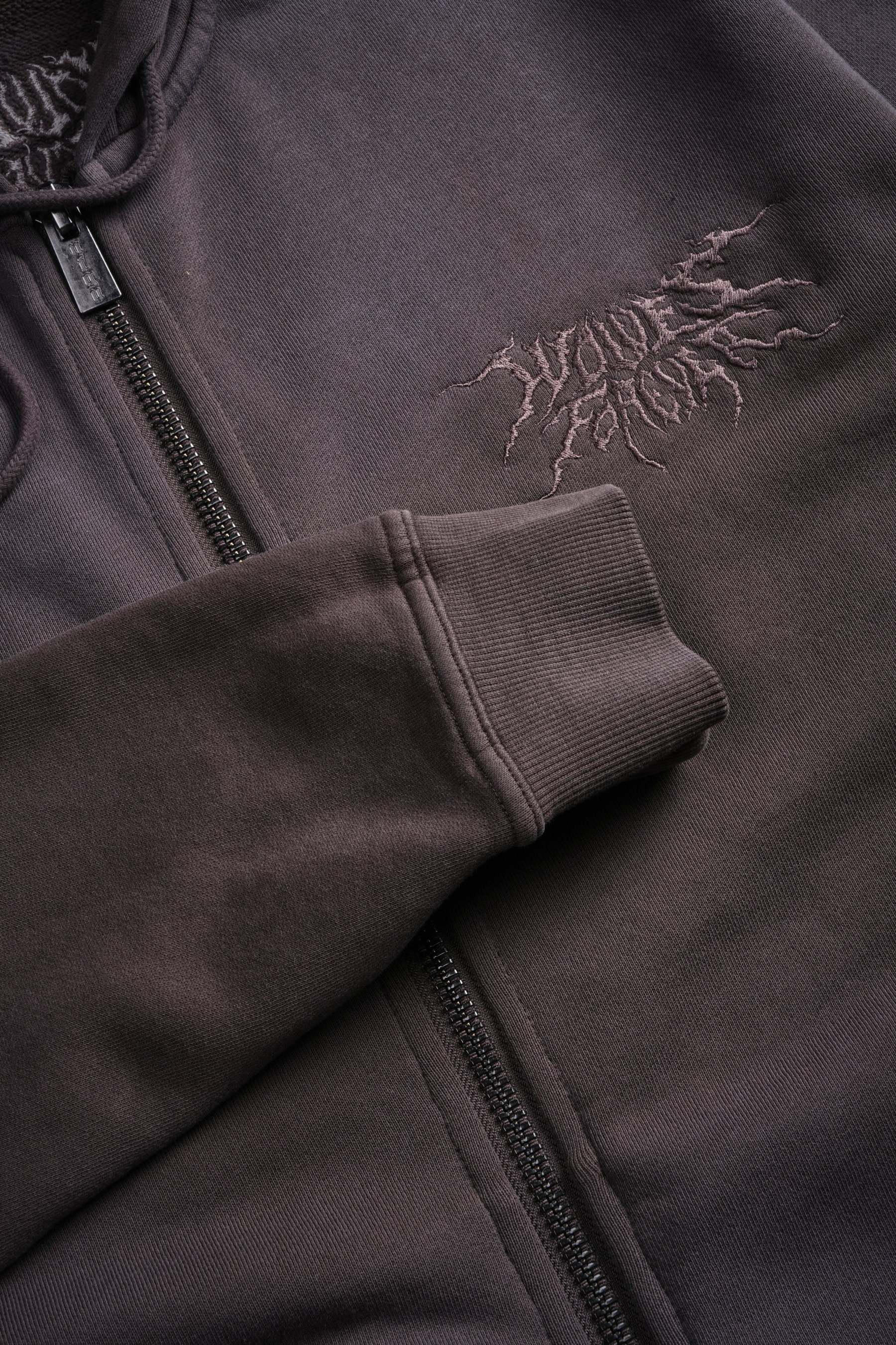 Iron Kanji Donnie "Zip Up" Hoodie in Darc Brown Driftwash