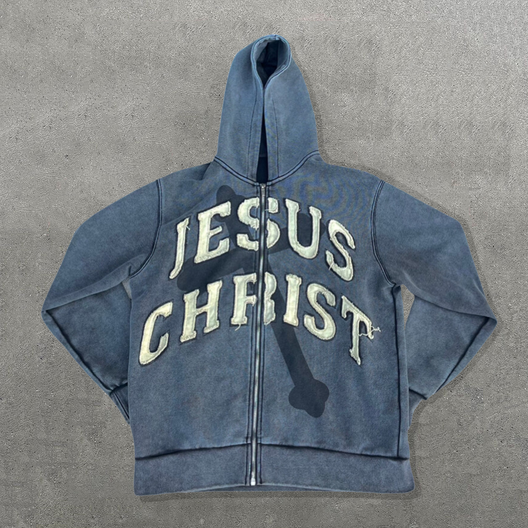 Jesus Christ Print Long Sleeve Applique Embroidered Zipper Hoodies