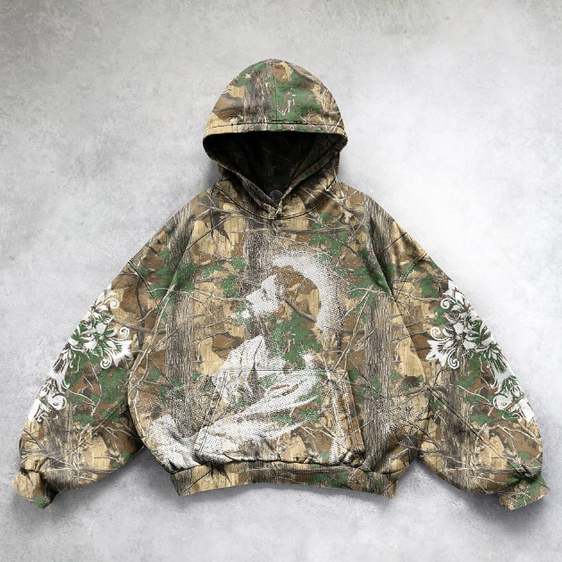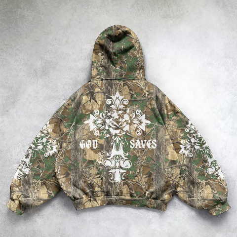 Jesus God Saves Camouflage Print Long Sleeve Hoodies