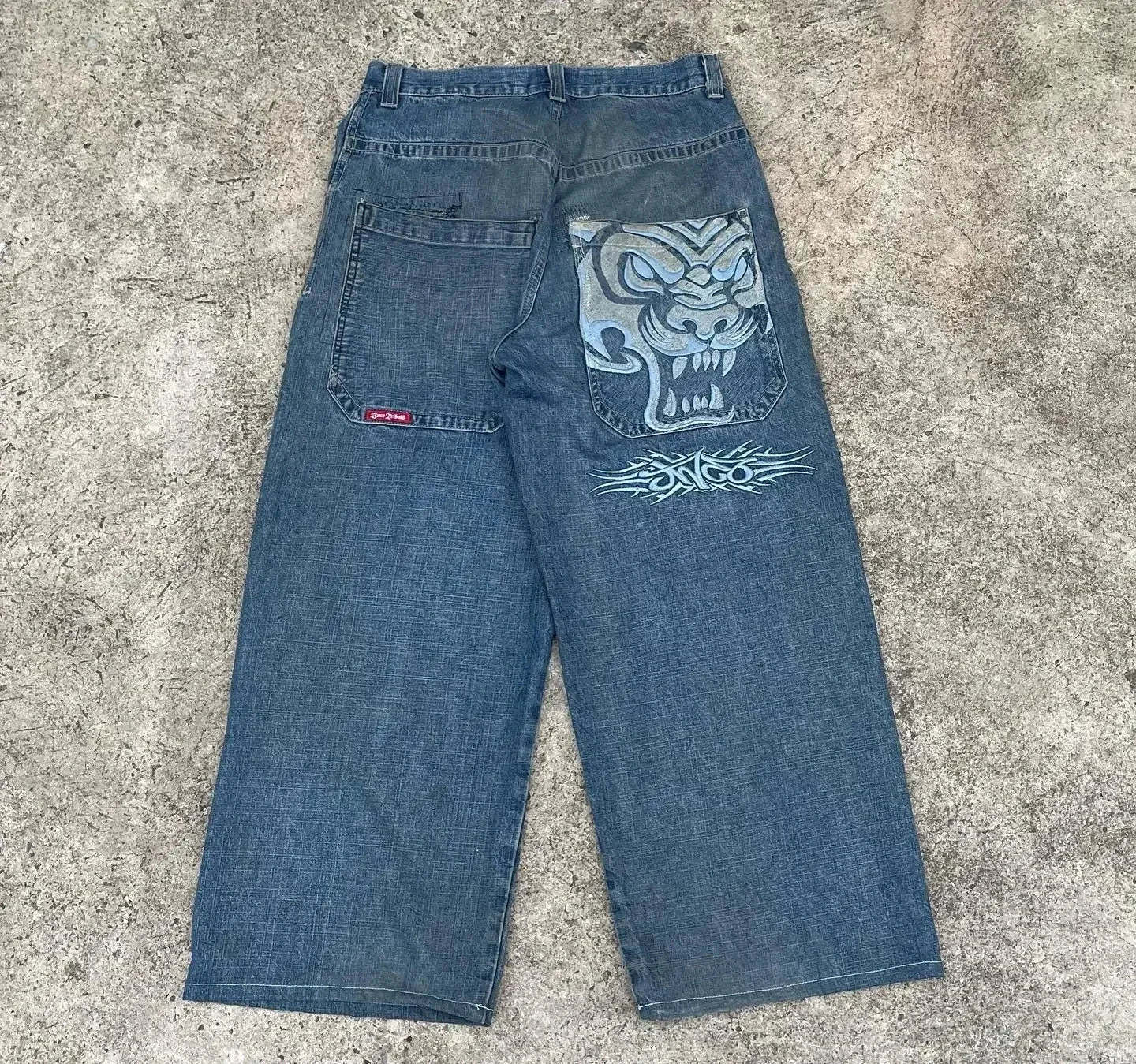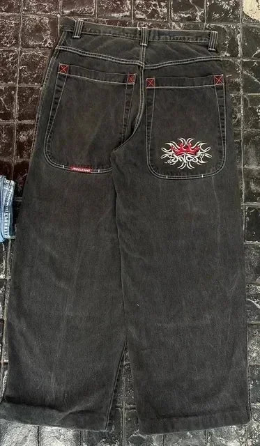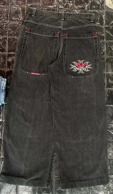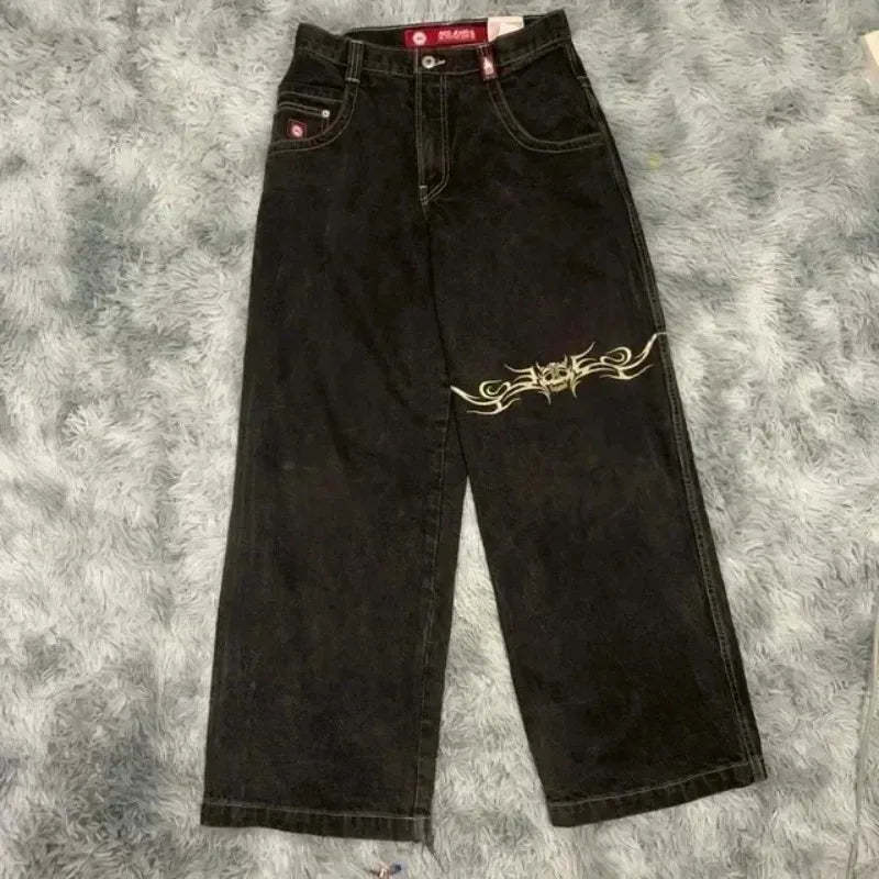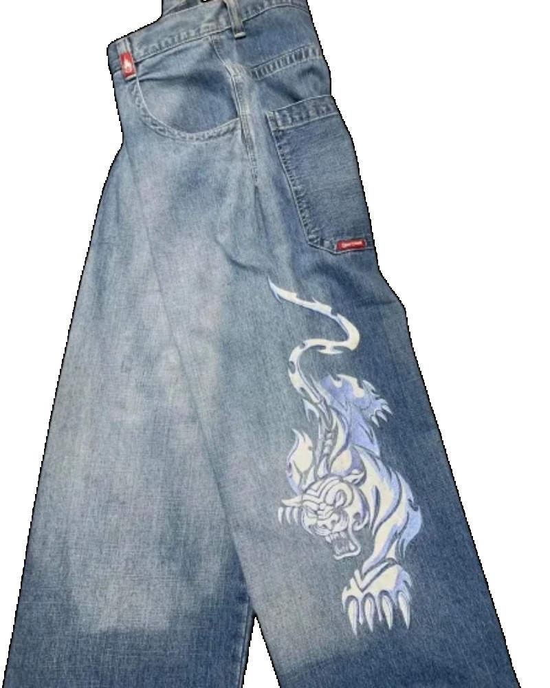 90s Streetwear Jeans Streetwear Y2K Mens Hip Hop Graphic Print Retro Blue Baggy Jeans Denim Pants New Gothic High Waisted Wide Trousers