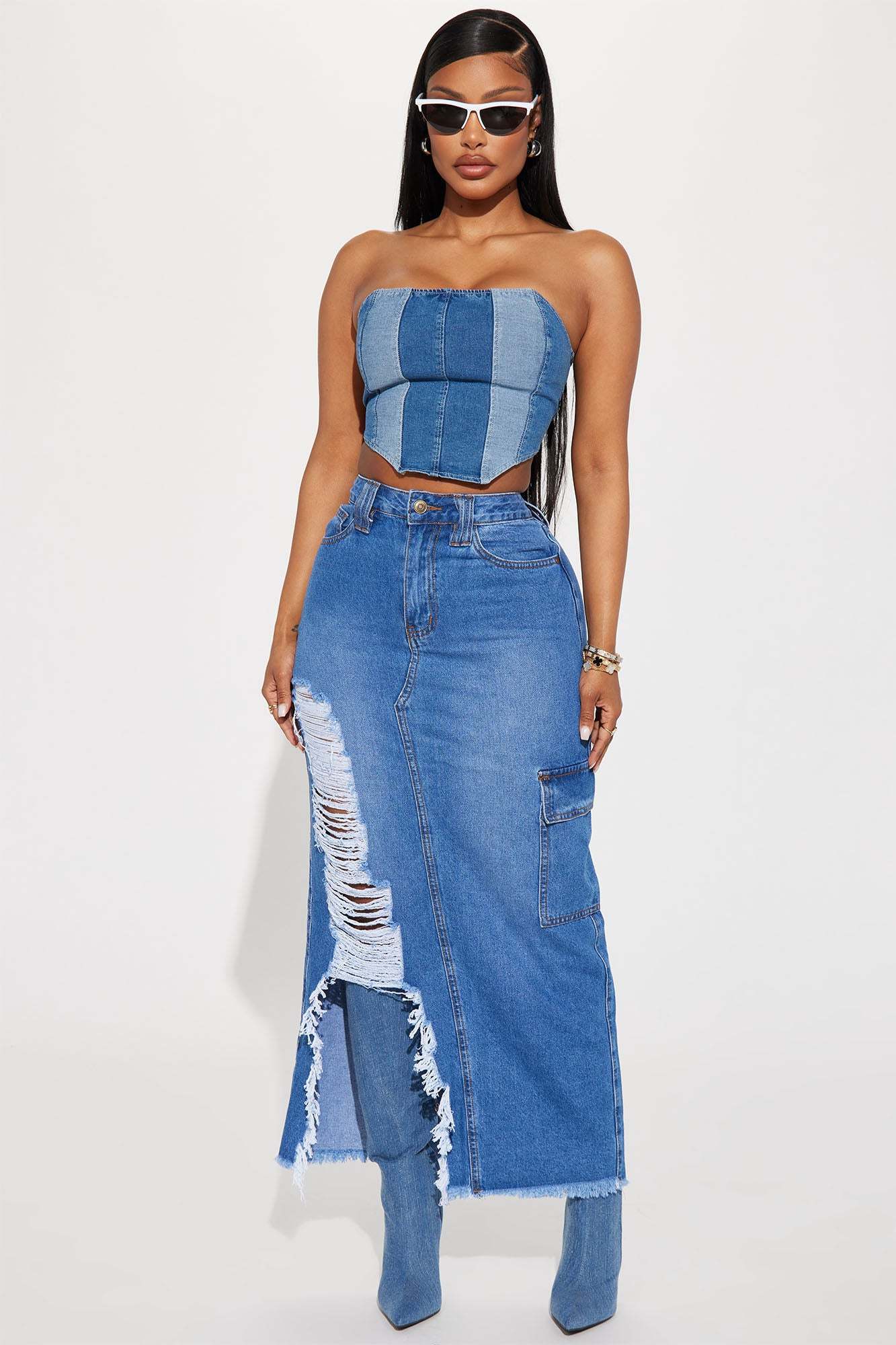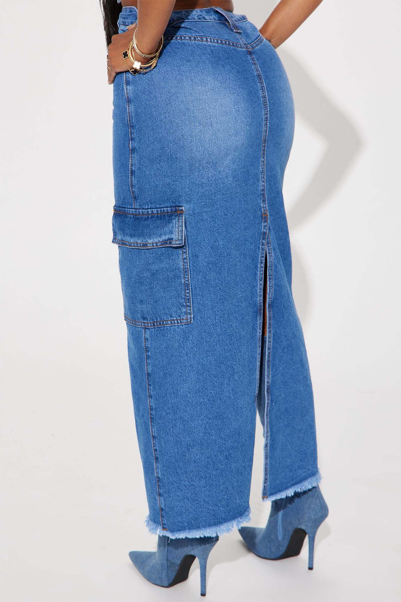 Kara Distressed Cargo Maxi Skirt - Medium Wash