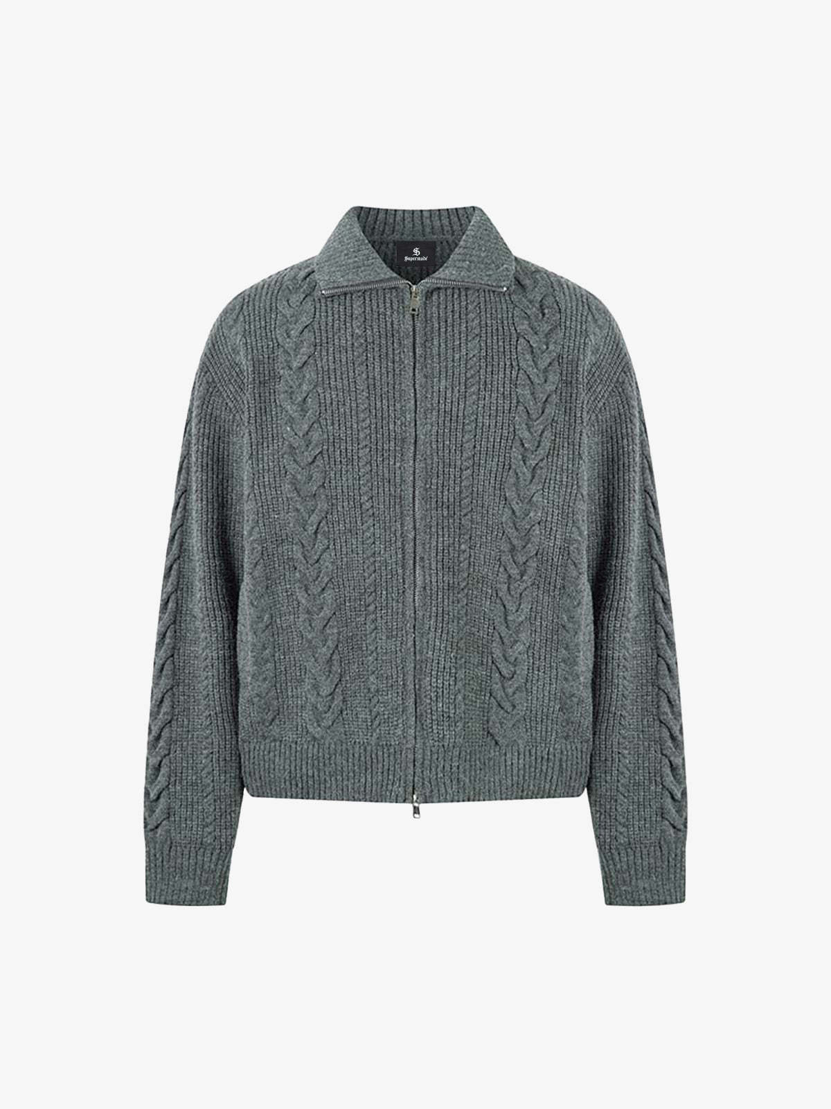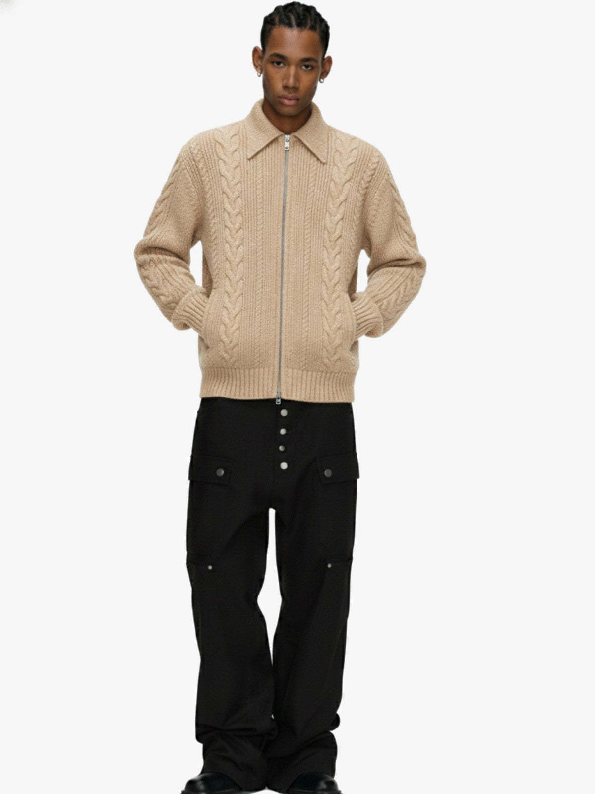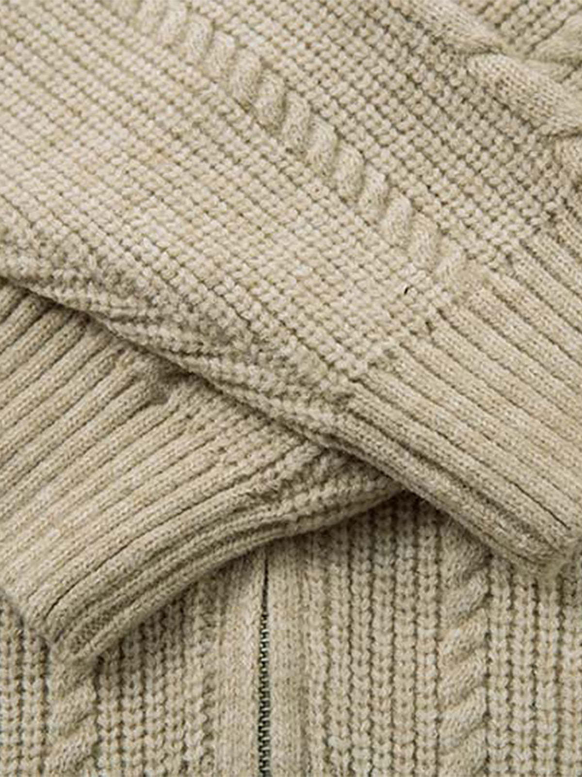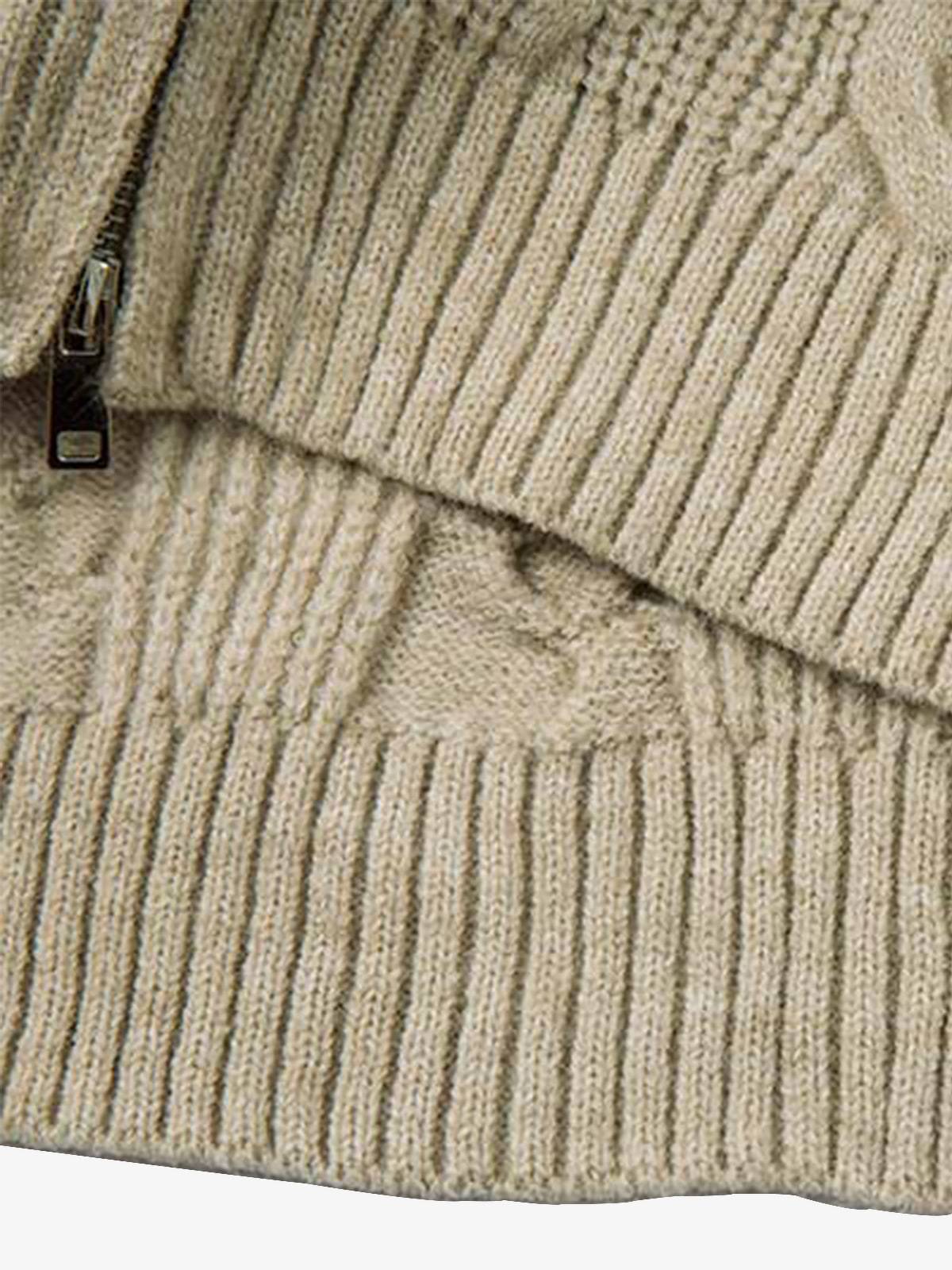 Knitted Vintage Floral Wheat Ear Pattern Double Zip Sweater
