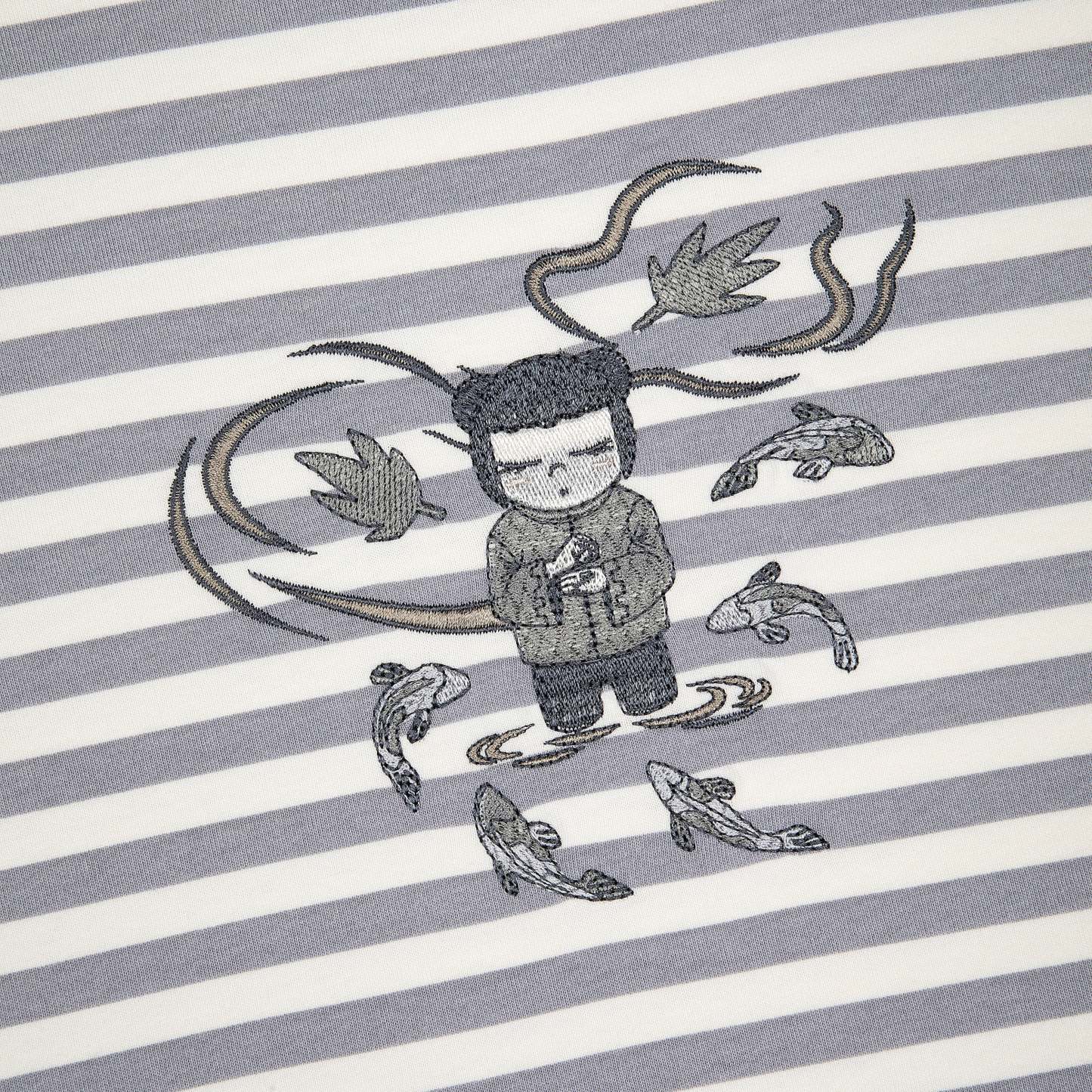 "koi" T Shirt grey striped