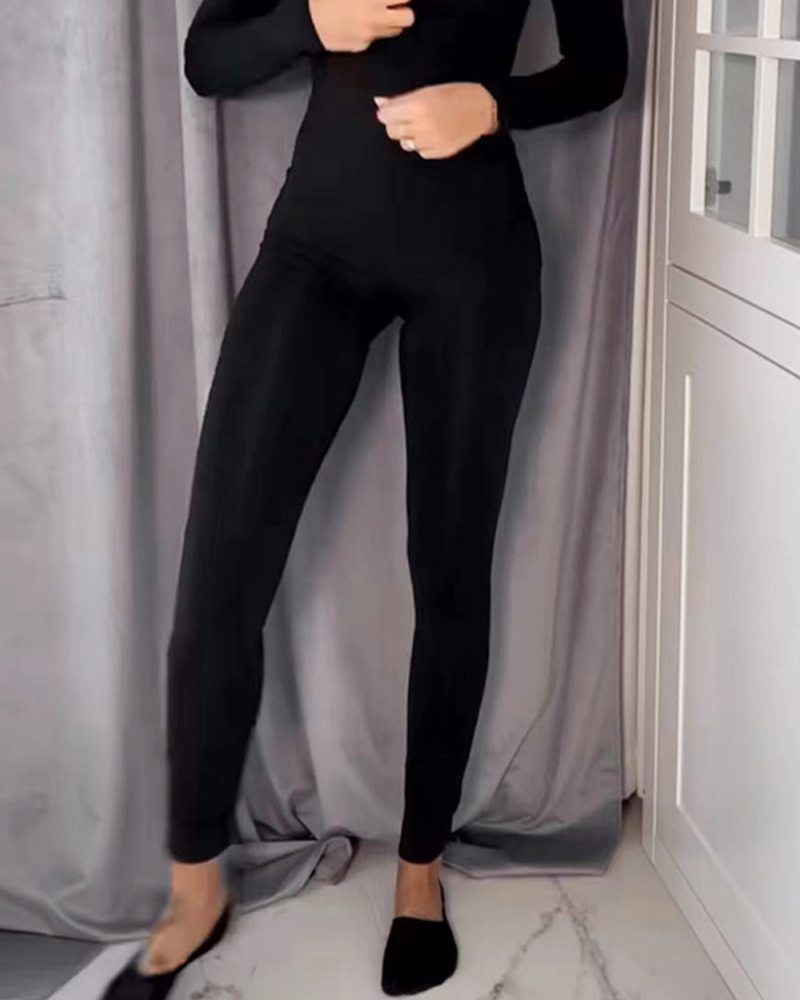 Casual long sleeve solid color slim fit jumpsuit