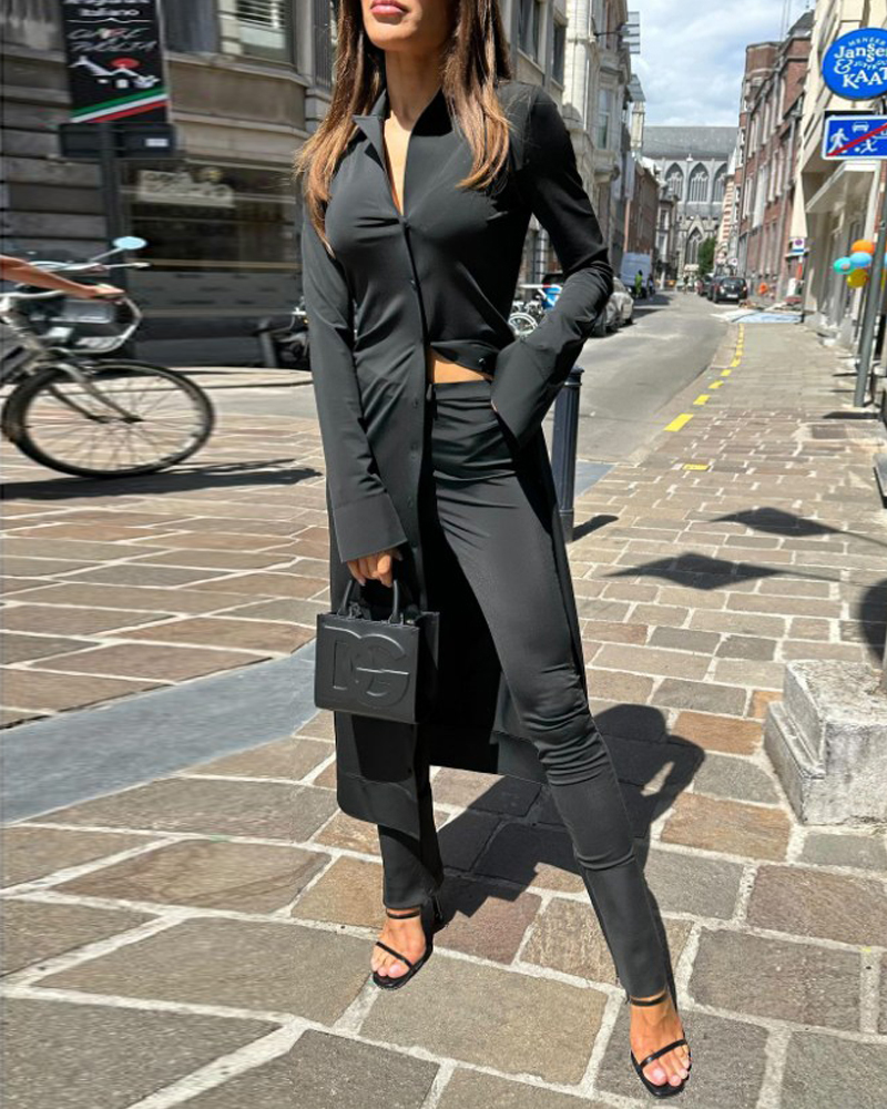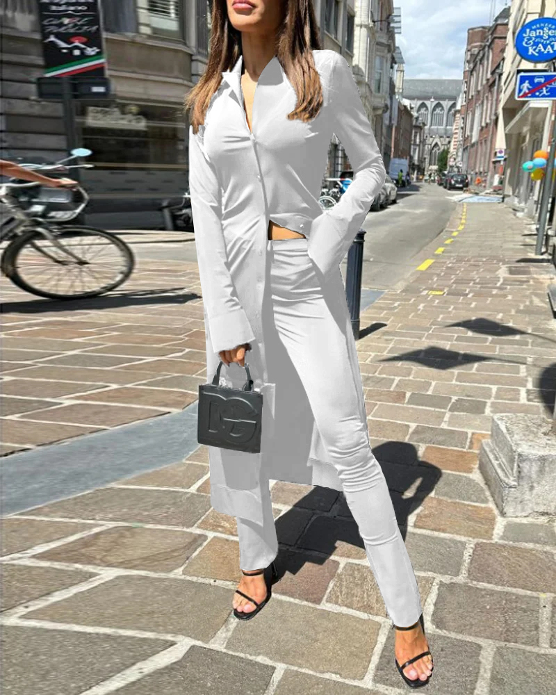 lapel solid color long two piece suit