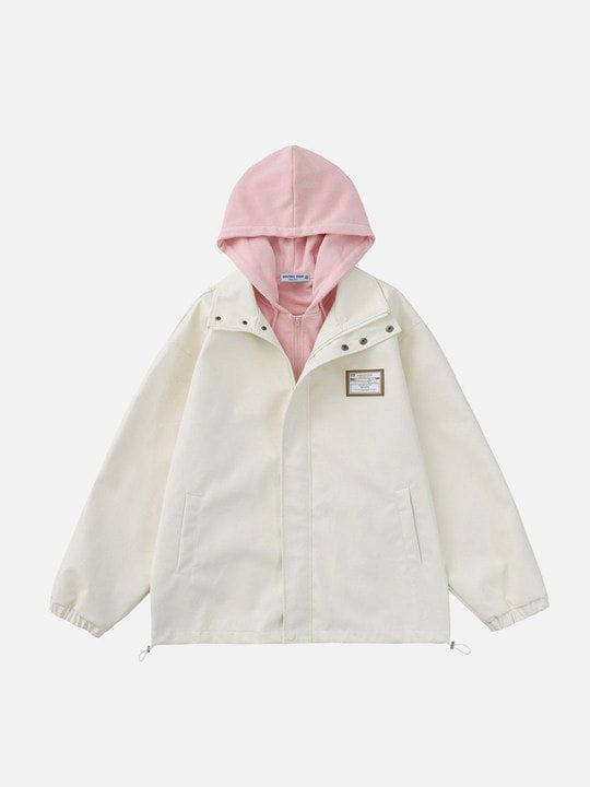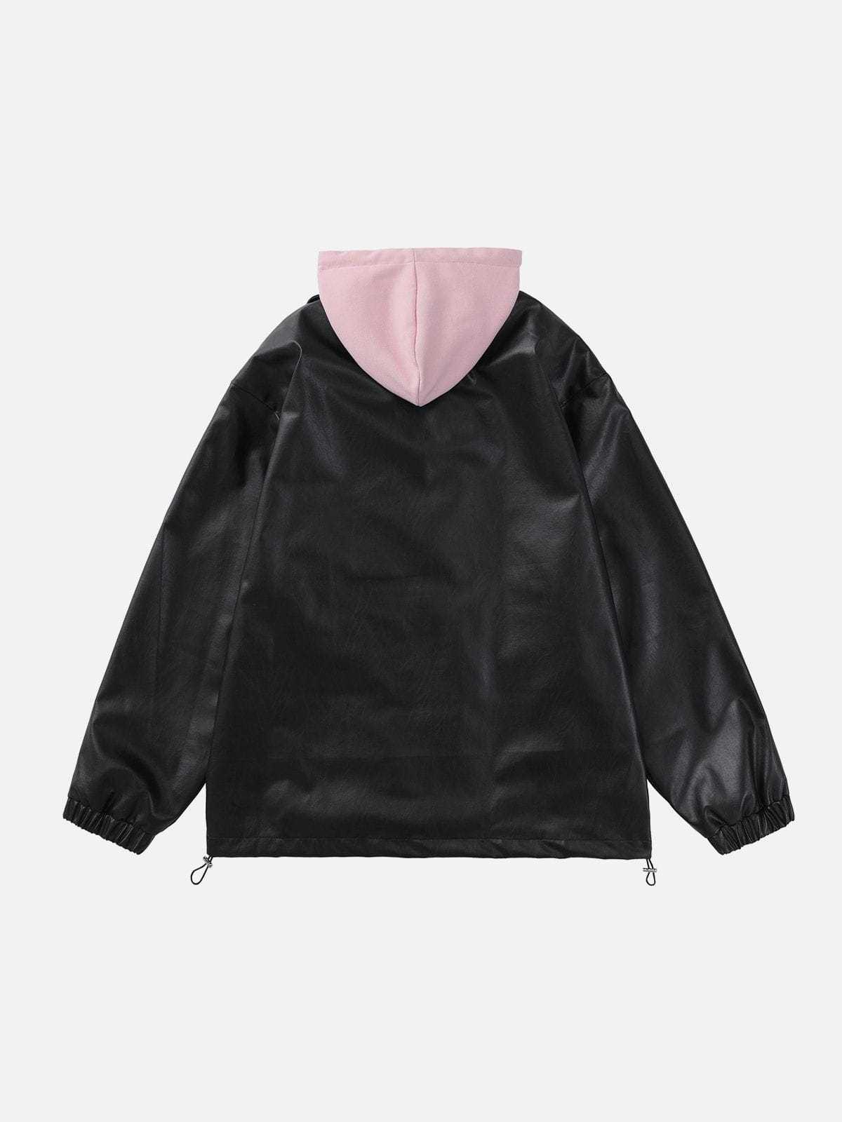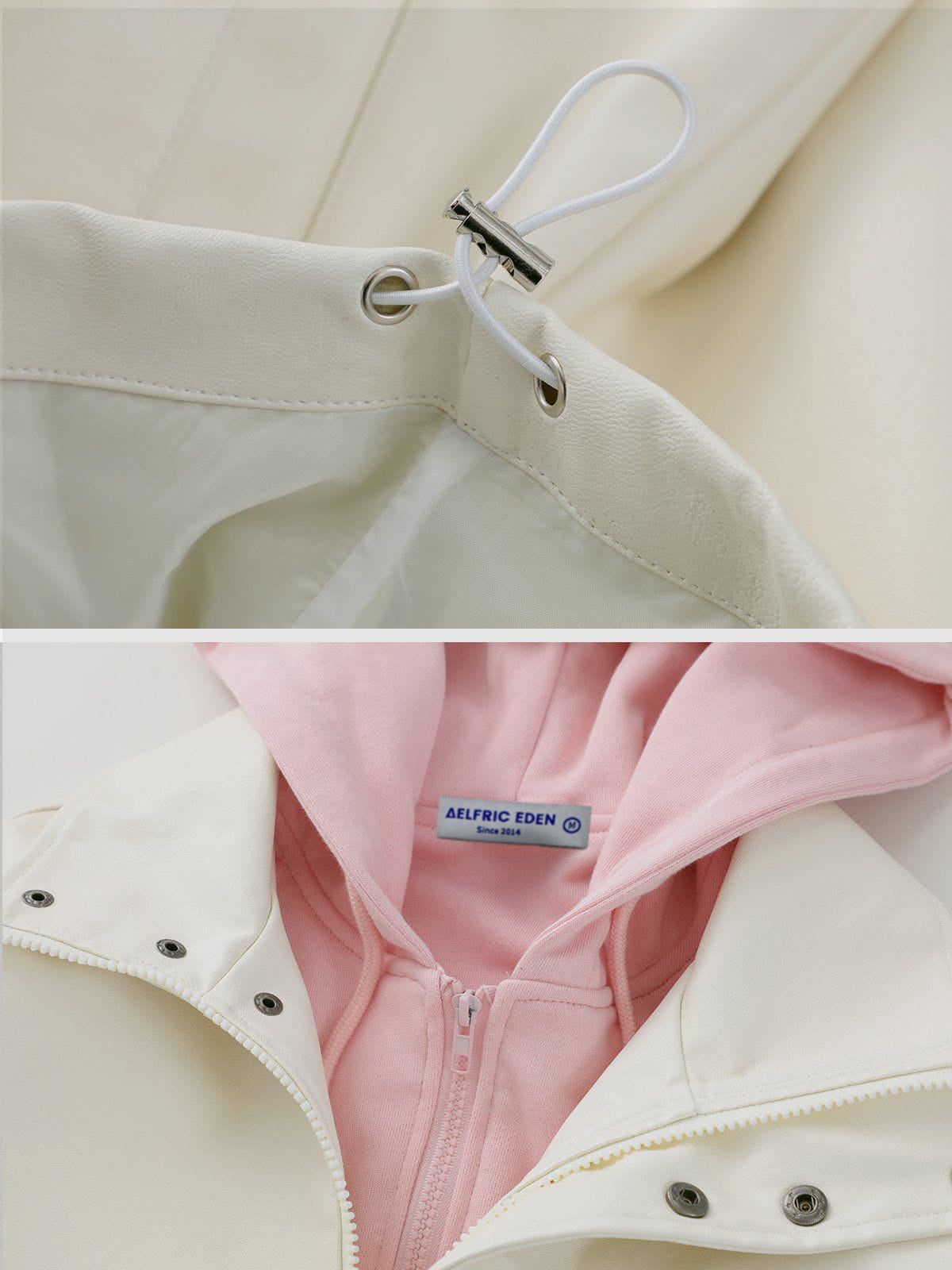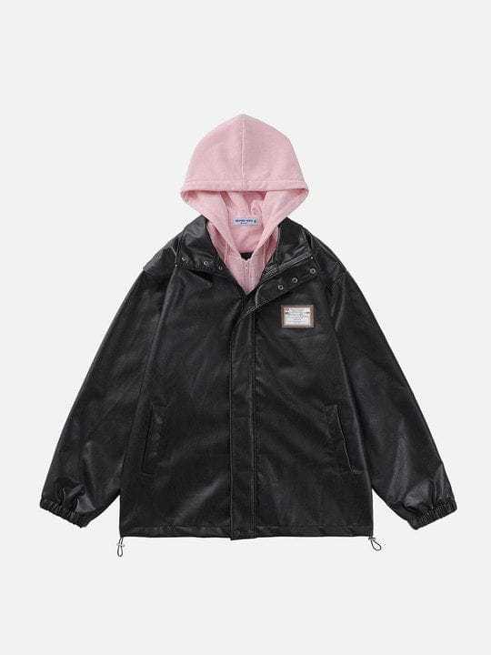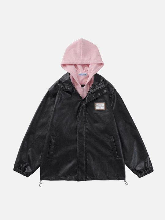 Leather Faux Two Piece Patchwork Hoodie